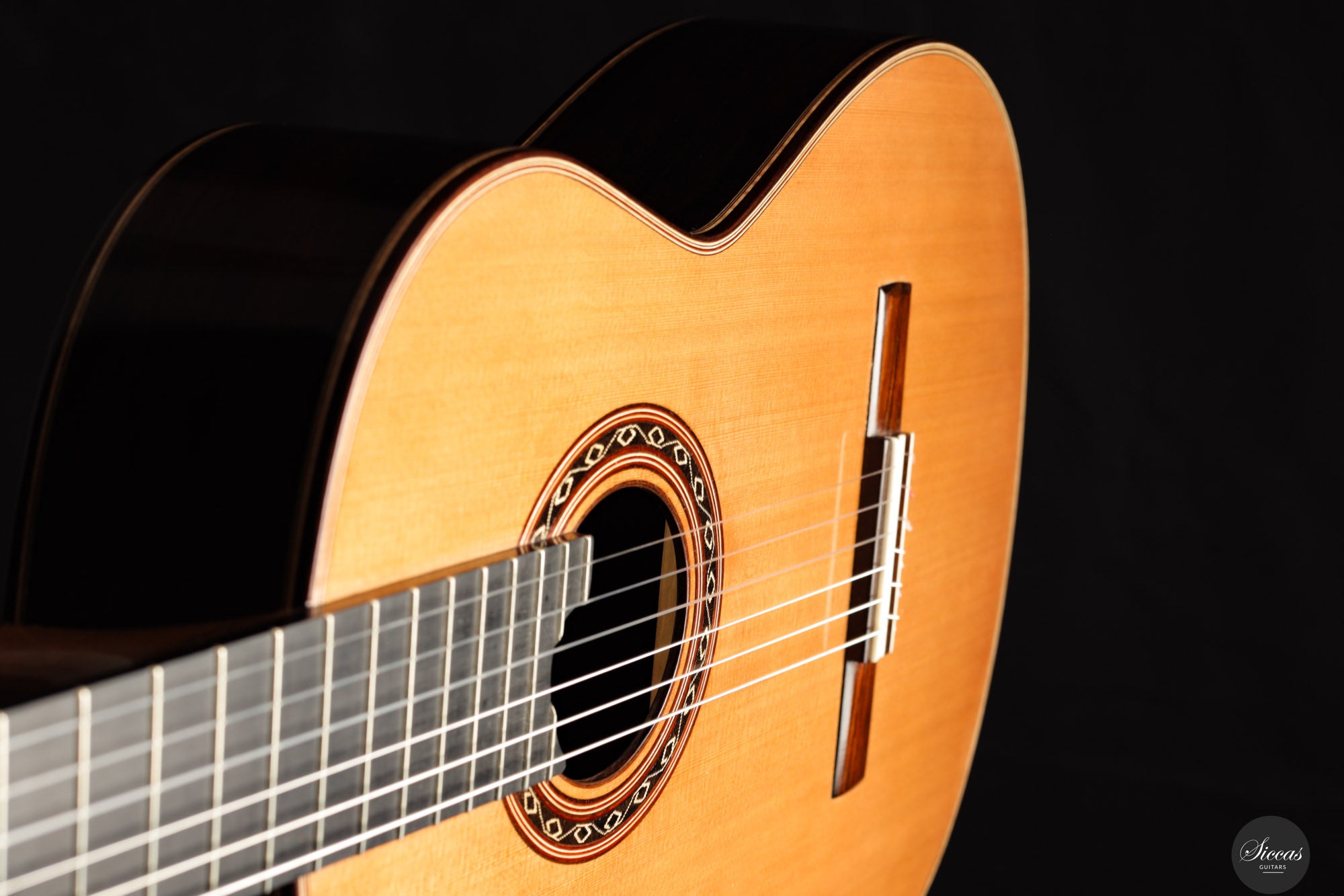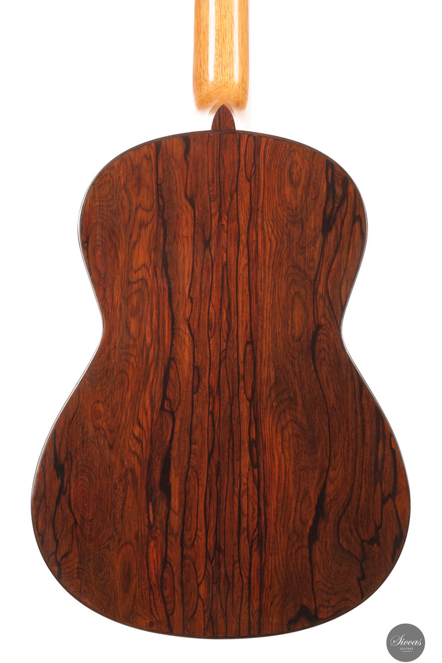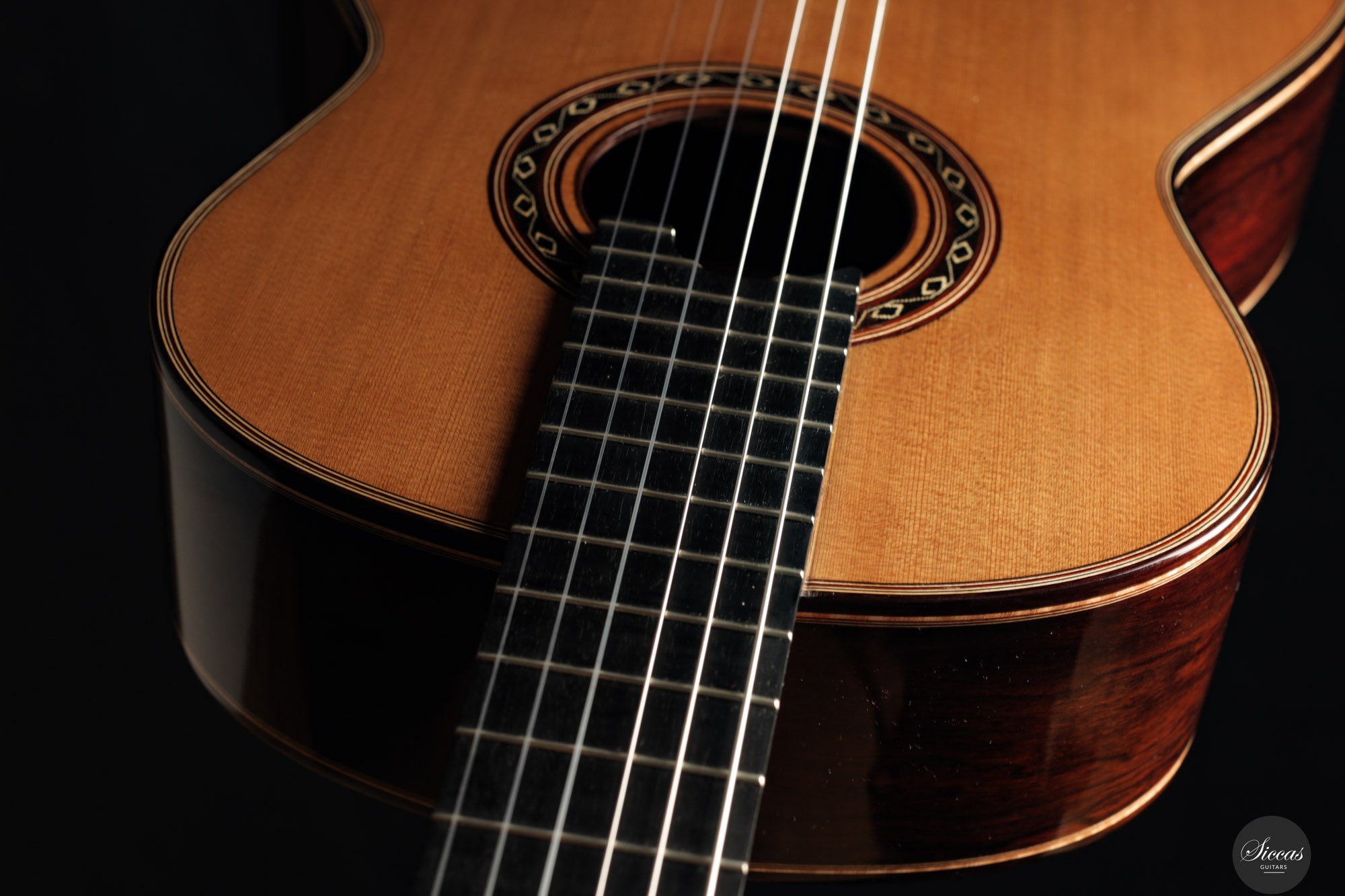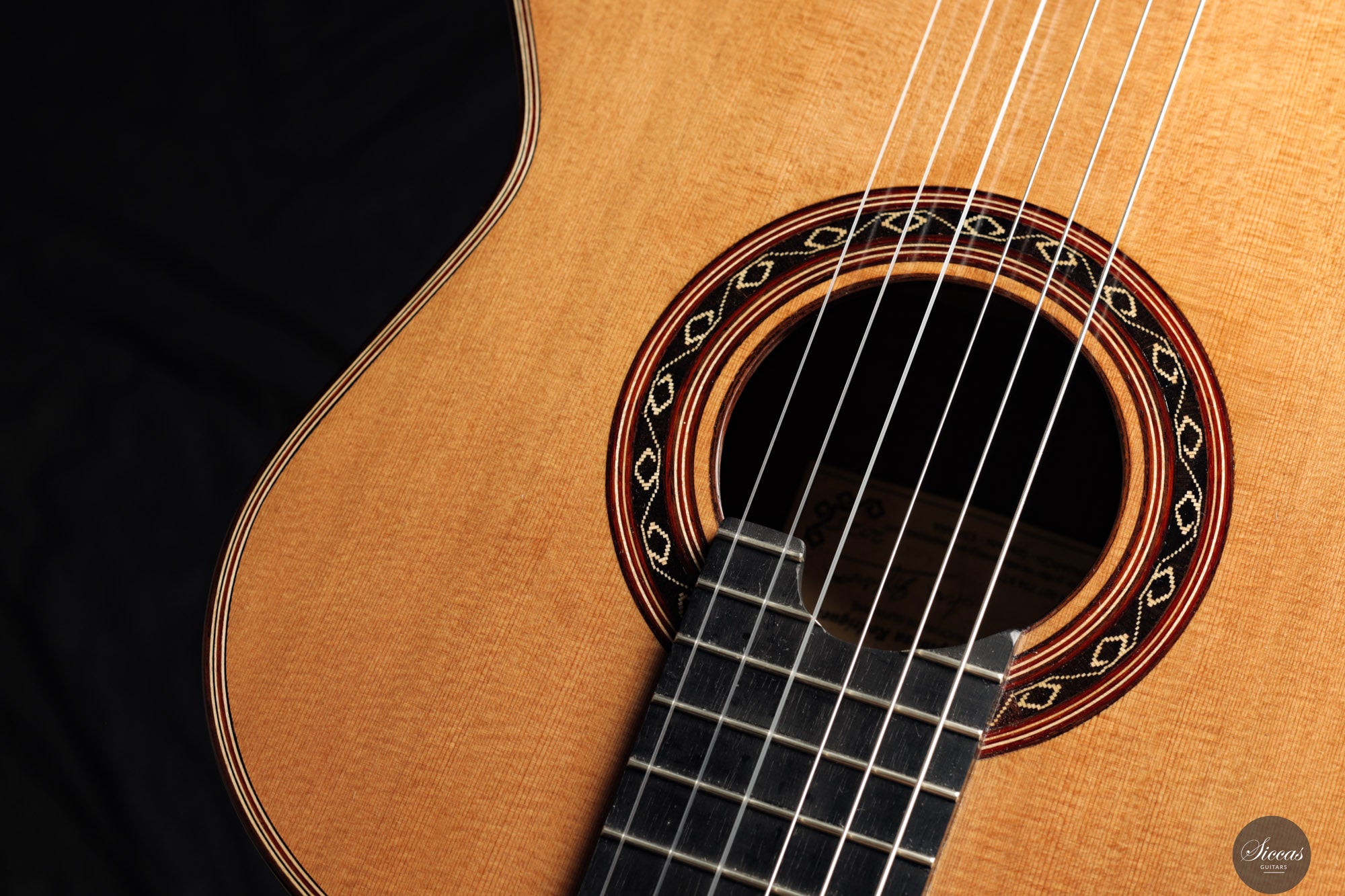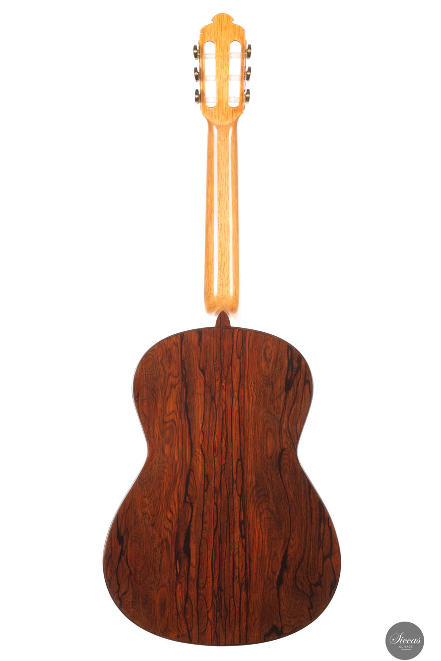 Ana Maria Espinosa Rodríguez began her guitarmaking career in 1996 under the mentorship of René Baarslag. Her initial focus on the Antonio de Torres model led her to conduct extensive physical and acoustic analyses, forming the foundation for a personal model that reflects both her research and Baarslag’s deep expertise. Espinosa Rodríguez’s guitars are known for their expressive tonal qualities and graceful aesthetics, consistently featuring high power and strong projection. These attributes contribute to a responsive instrument that supports effortless and nuanced performances. Each guitar is marked by her distinctive headstock and rosette design, built from carefully selected woods and finished to the highest standard.About the guitar