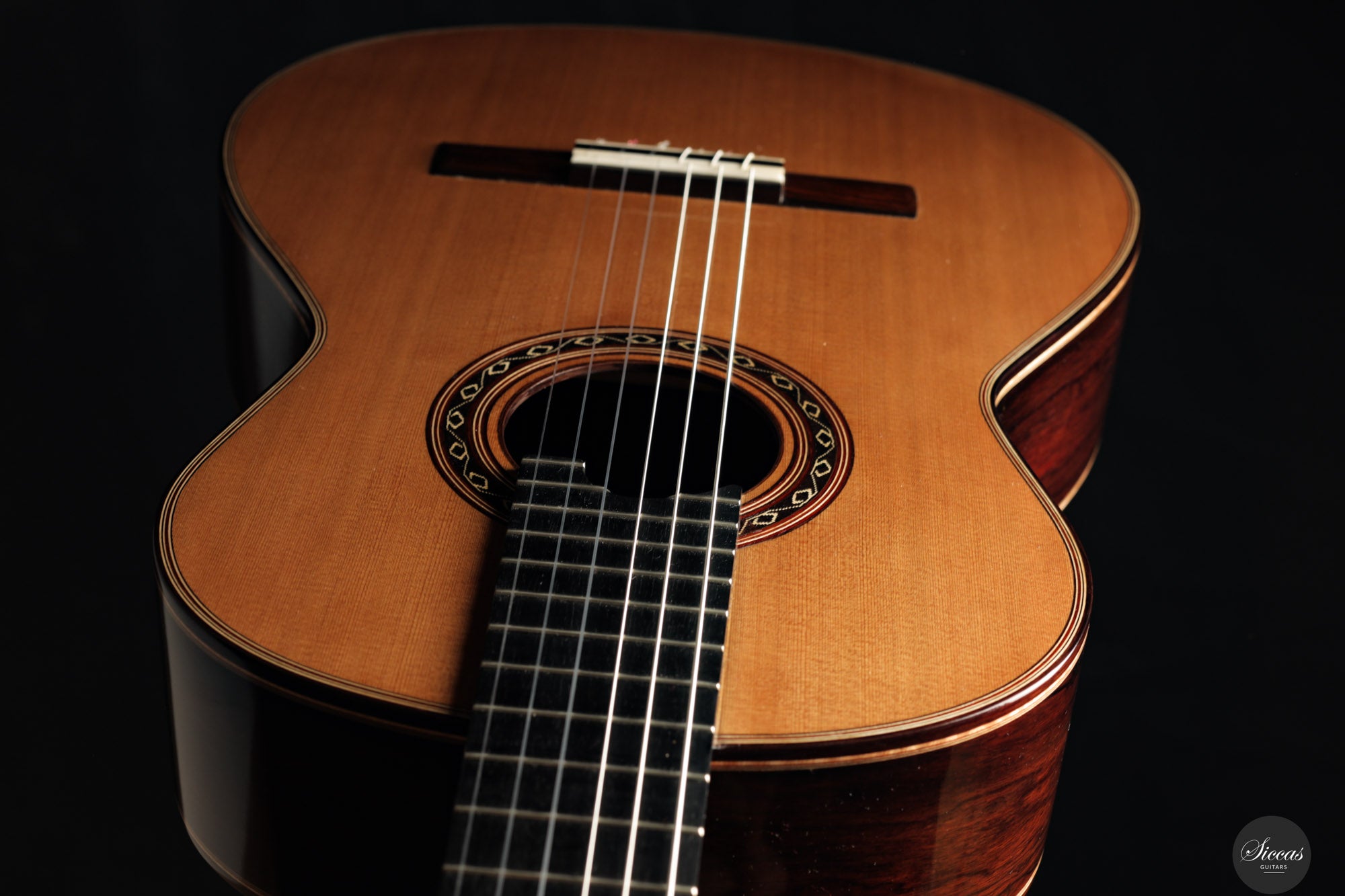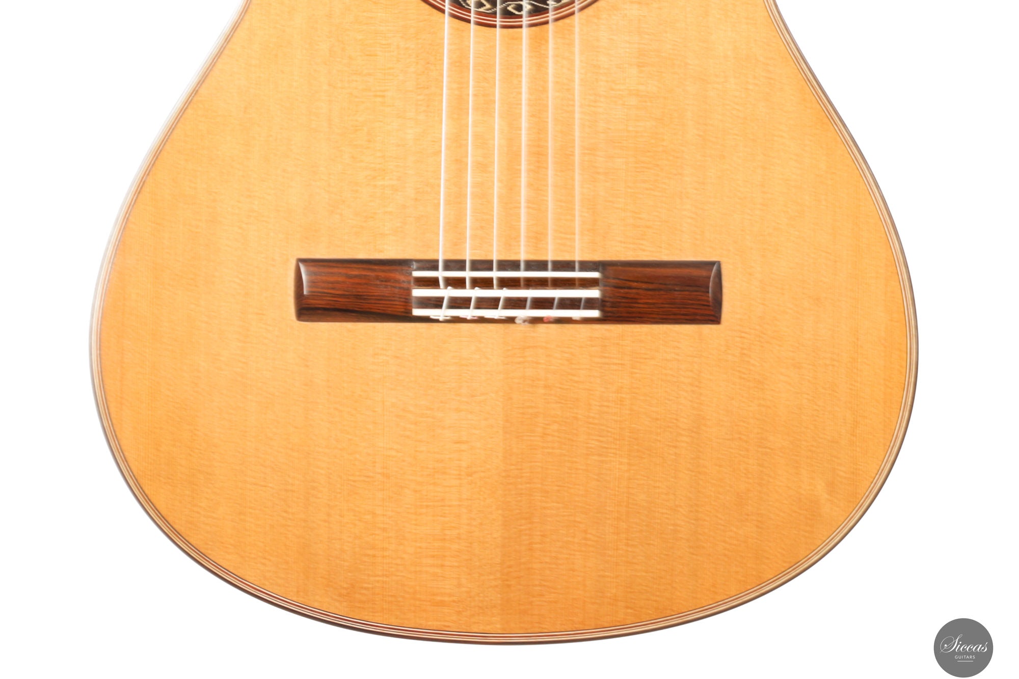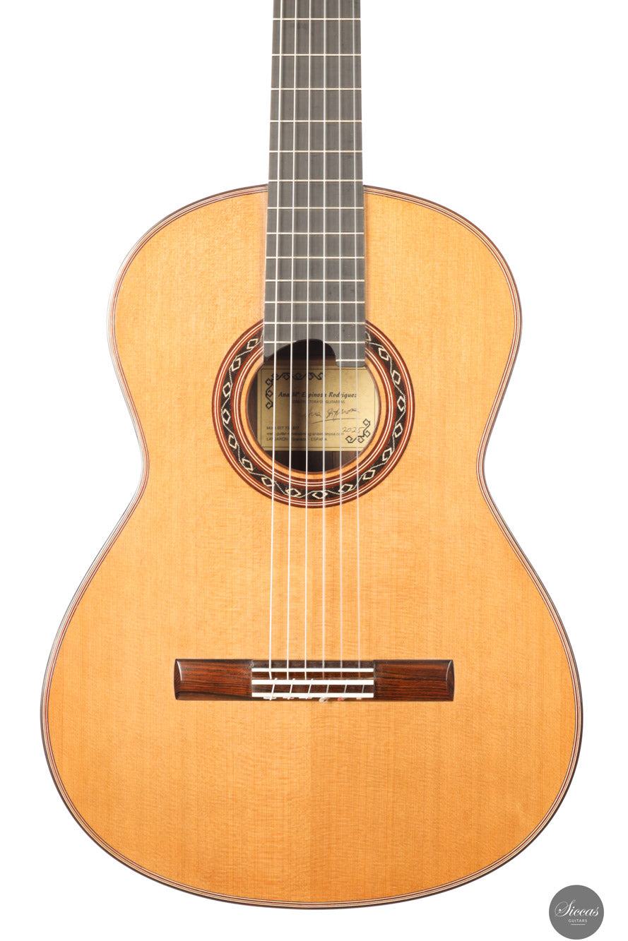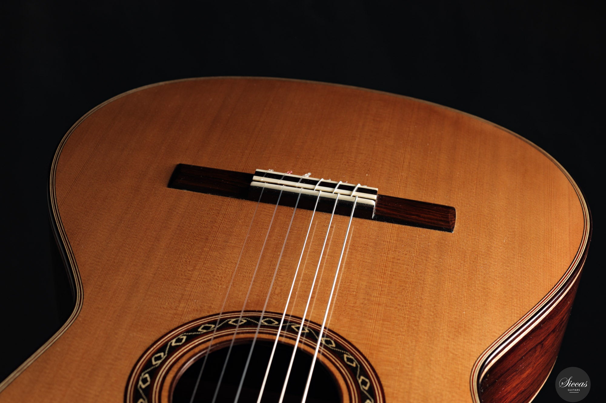 Ana Maria Espinosa Rodríguez began her guitarmaking career in 1996 under the mentorship of René Baarslag. Her initial focus on the Antonio de Torres model led her to conduct extensive physical and acoustic analyses, forming the foundation for a personal model that reflects both her research and Baarslag’s deep expertise. Espinosa Rodríguez’s guitars are known for their expressive tonal qualities and graceful aesthetics, consistently featuring high power and strong projection. These attributes contribute to a responsive instrument that supports effortless and nuanced performances. Each guitar is marked by her distinctive headstock and rosette design, built from carefully selected woods and finished to the highest standard.About the guitar