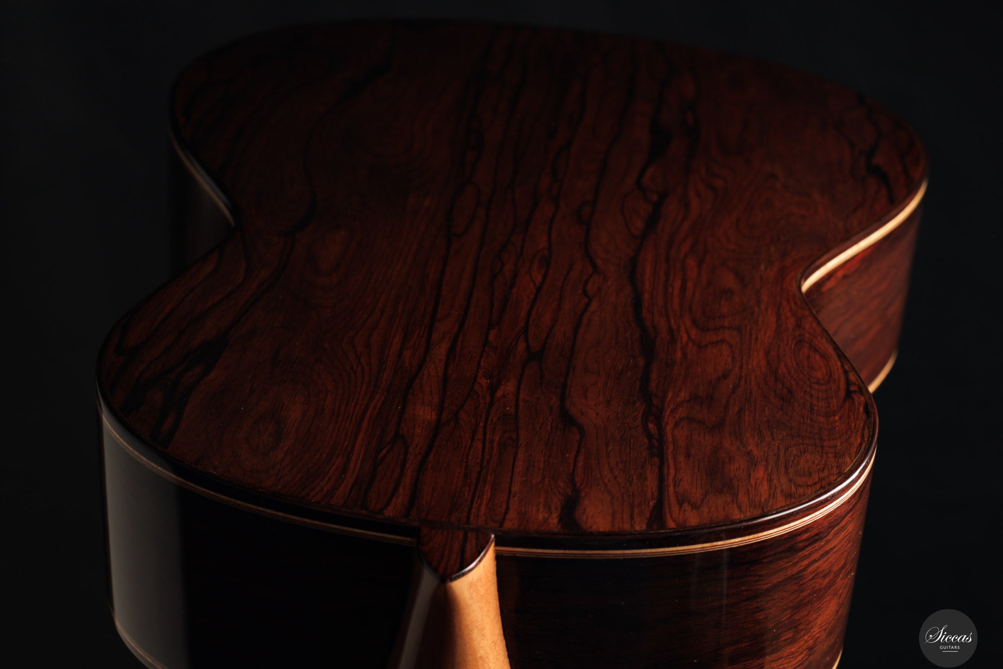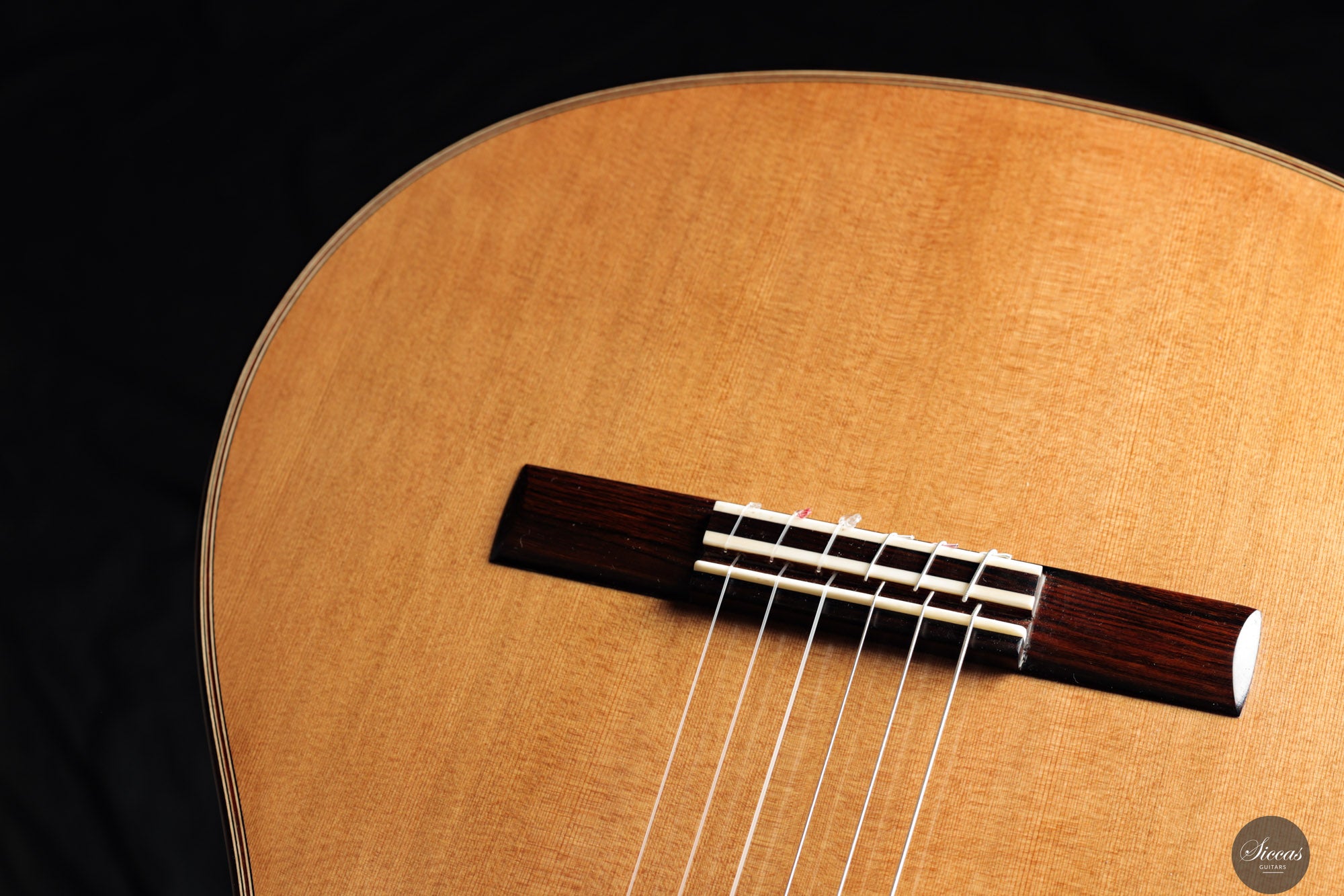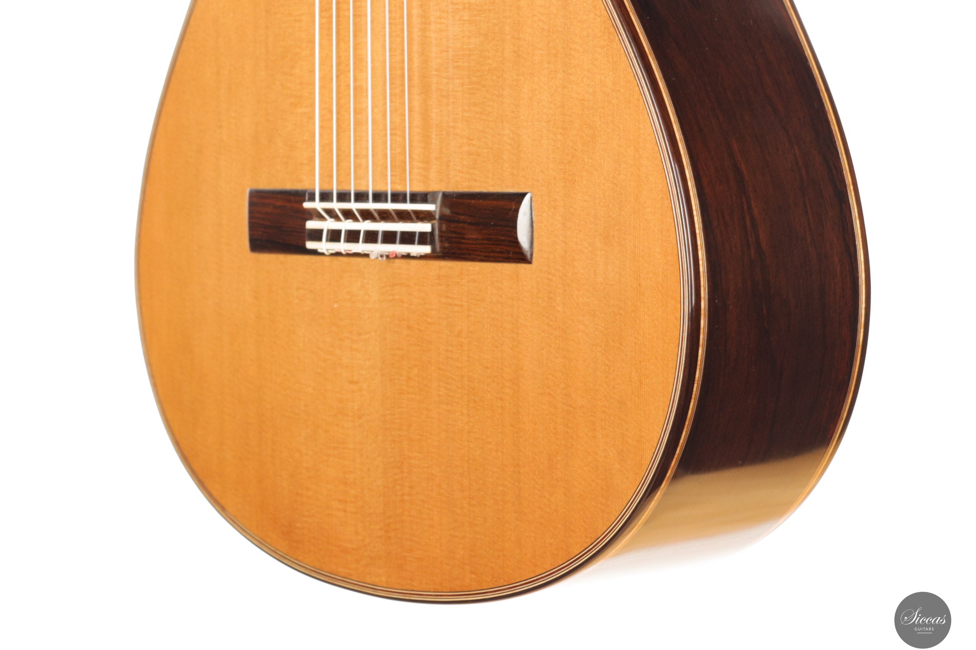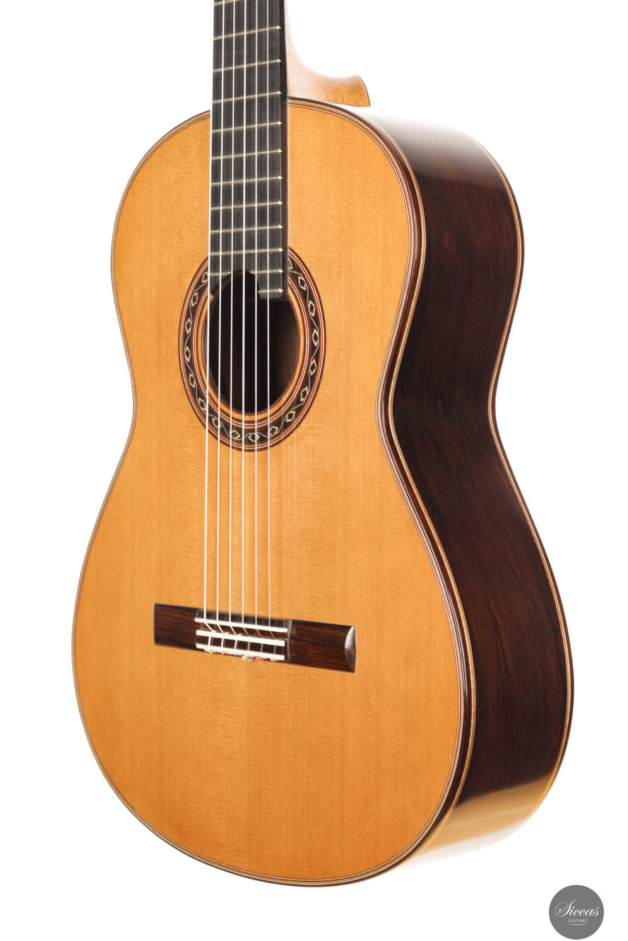 Ana Maria Espinosa Rodríguez began her guitarmaking career in 1996 under the mentorship of René Baarslag. Her initial focus on the Antonio de Torres model led her to conduct extensive physical and acoustic analyses, forming the foundation for a personal model that reflects both her research and Baarslag’s deep expertise. Espinosa Rodríguez’s guitars are known for their expressive tonal qualities and graceful aesthetics, consistently featuring high power and strong projection. These attributes contribute to a responsive instrument that supports effortless and nuanced performances. Each guitar is marked by her distinctive headstock and rosette design, built from carefully selected woods and finished to the highest standard.About the guitar
