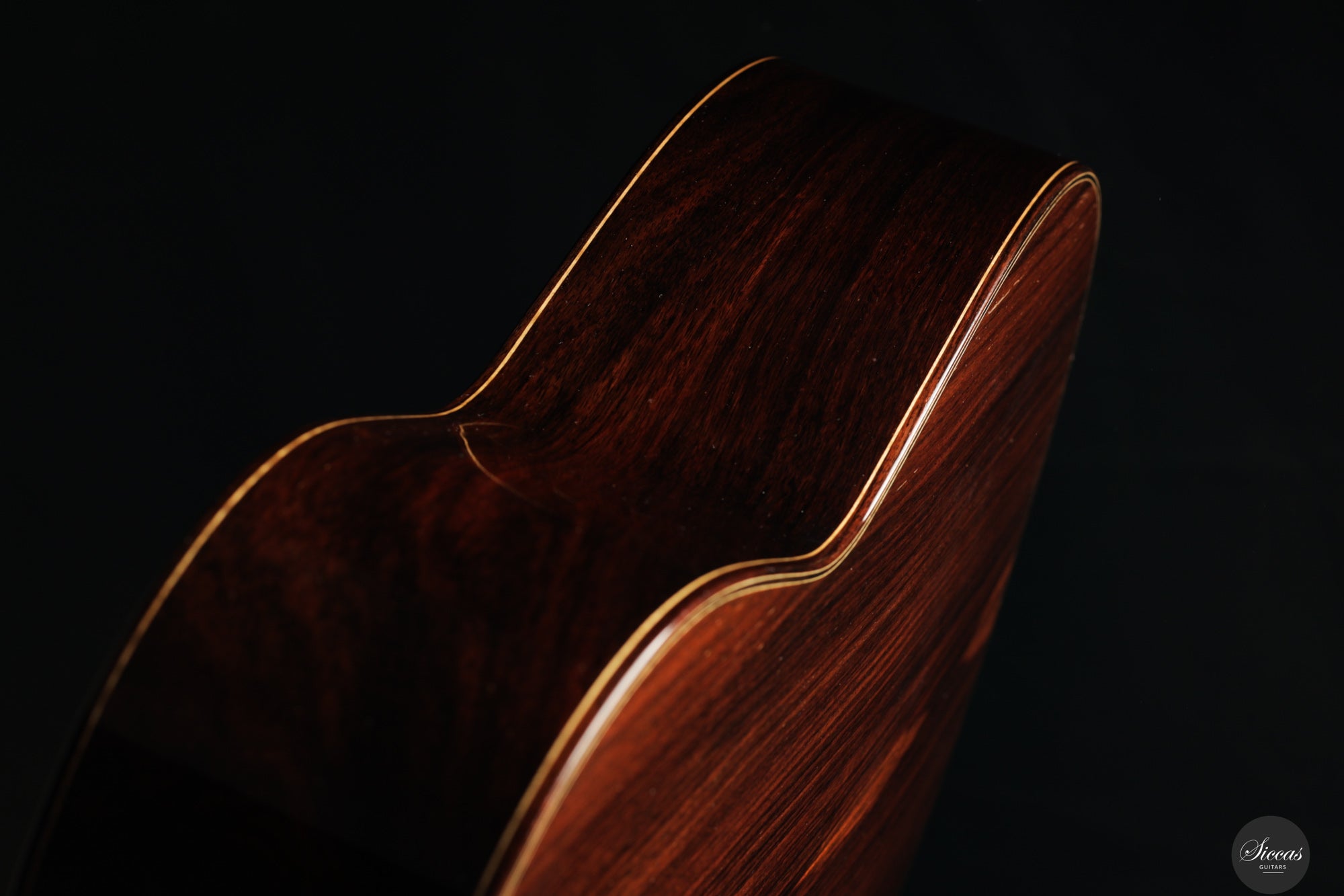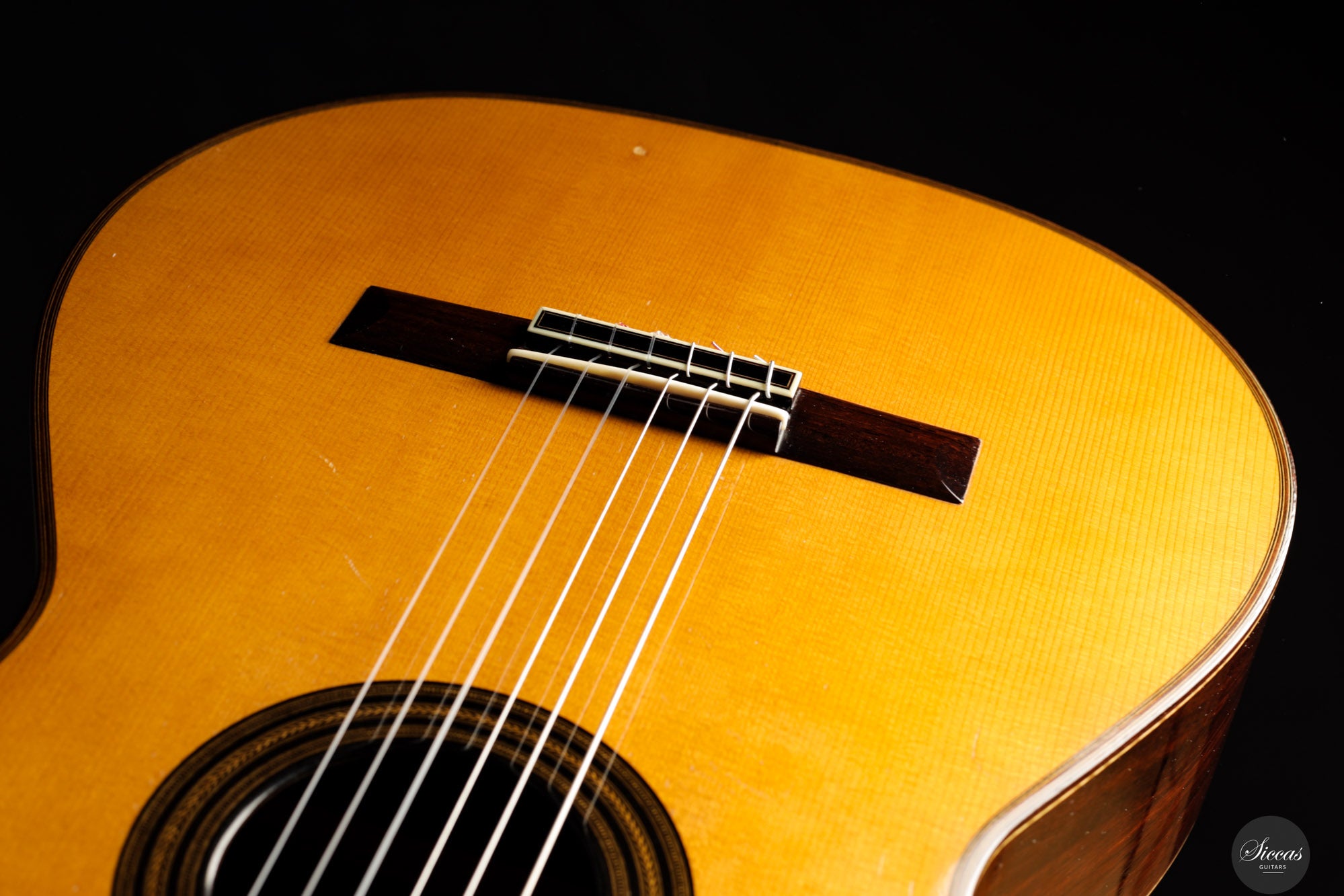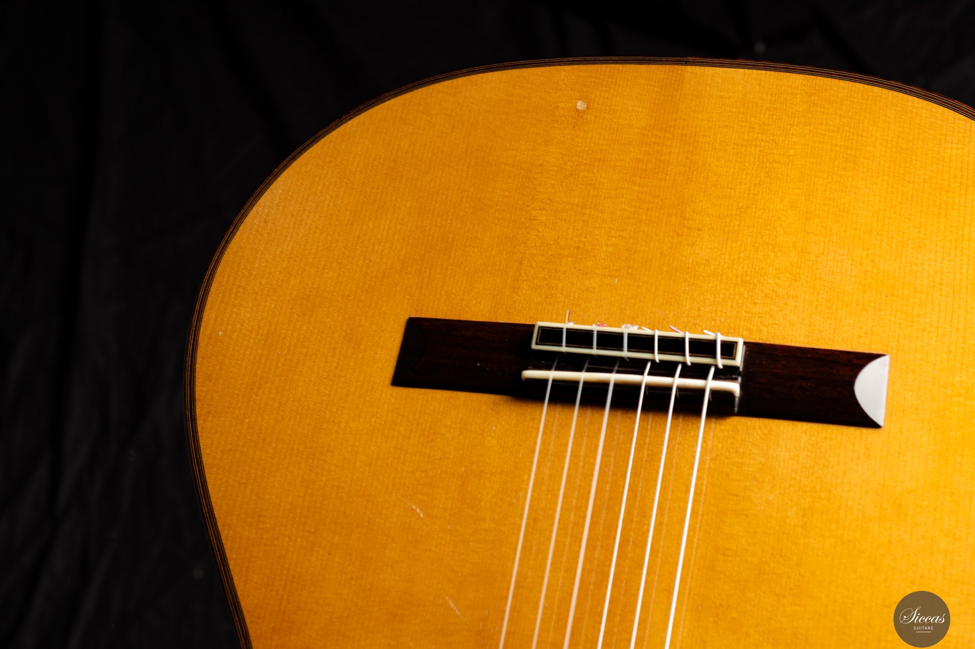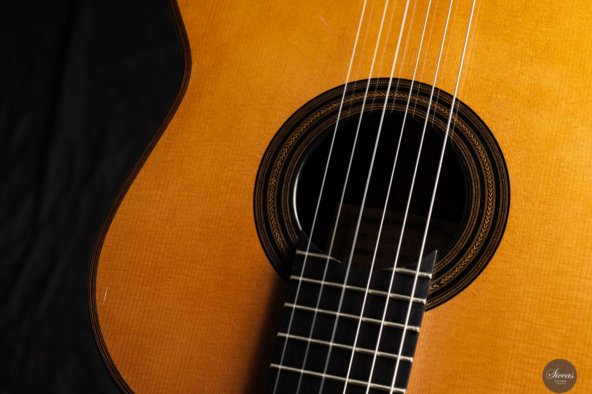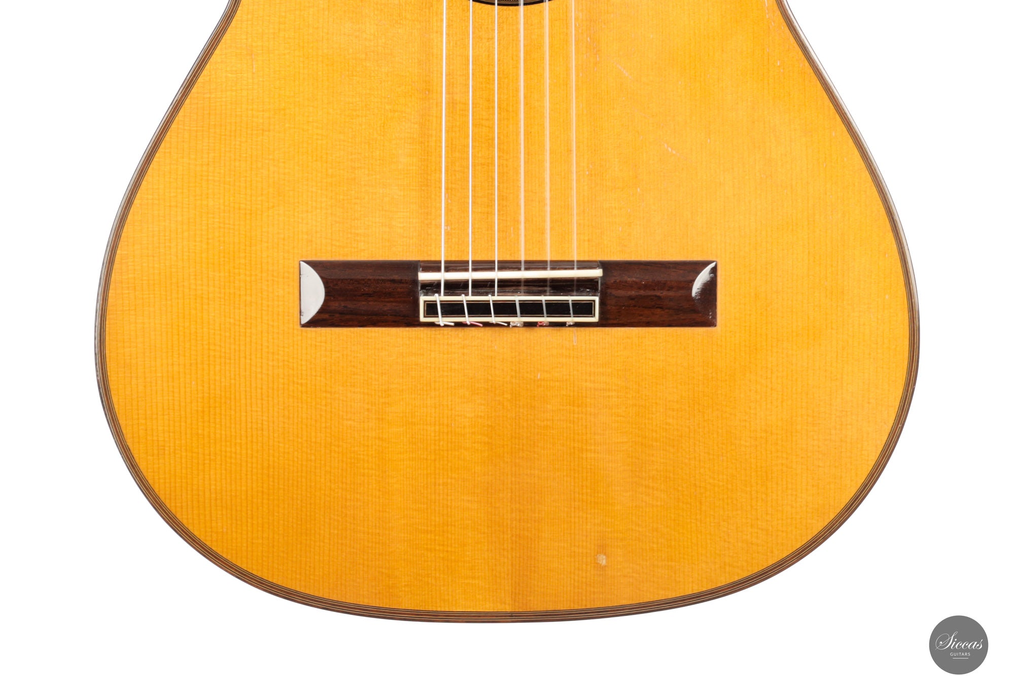 Diese wunderschöne Gitarre aus dem Jahr 1994 ist ein sehr gelungenes Beispiel des frühen Coclea-Modells von Andrea Tacchi. Schon damals zeigt sich, dass Andrea von Anfang an großen Erfolg bei der Entwicklung dieses Modells hatte. Die Gitarre weist alle typischen Merkmale seiner Instrumente auf. Durch ihr Alter ist sie hervorragend eingespielt und reagiert sehr schnell auf den Anschlag der rechten Hand. Die Höhen sind klar, gleichmäßig und haben einen samtigen Charakter. Die Zargen sind innen mit Zypresse gedoppelt, was wesentlich zur hervorragenden Projektion der Gitarre beiträgt. Die Gitarre befand sich ihr gesamtes Leben lang im Besitz einer einzigen Person, was ihren besonders gepflegten Zustand unterstreicht.Zustand