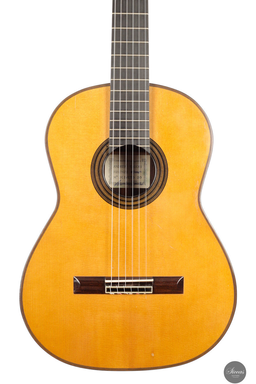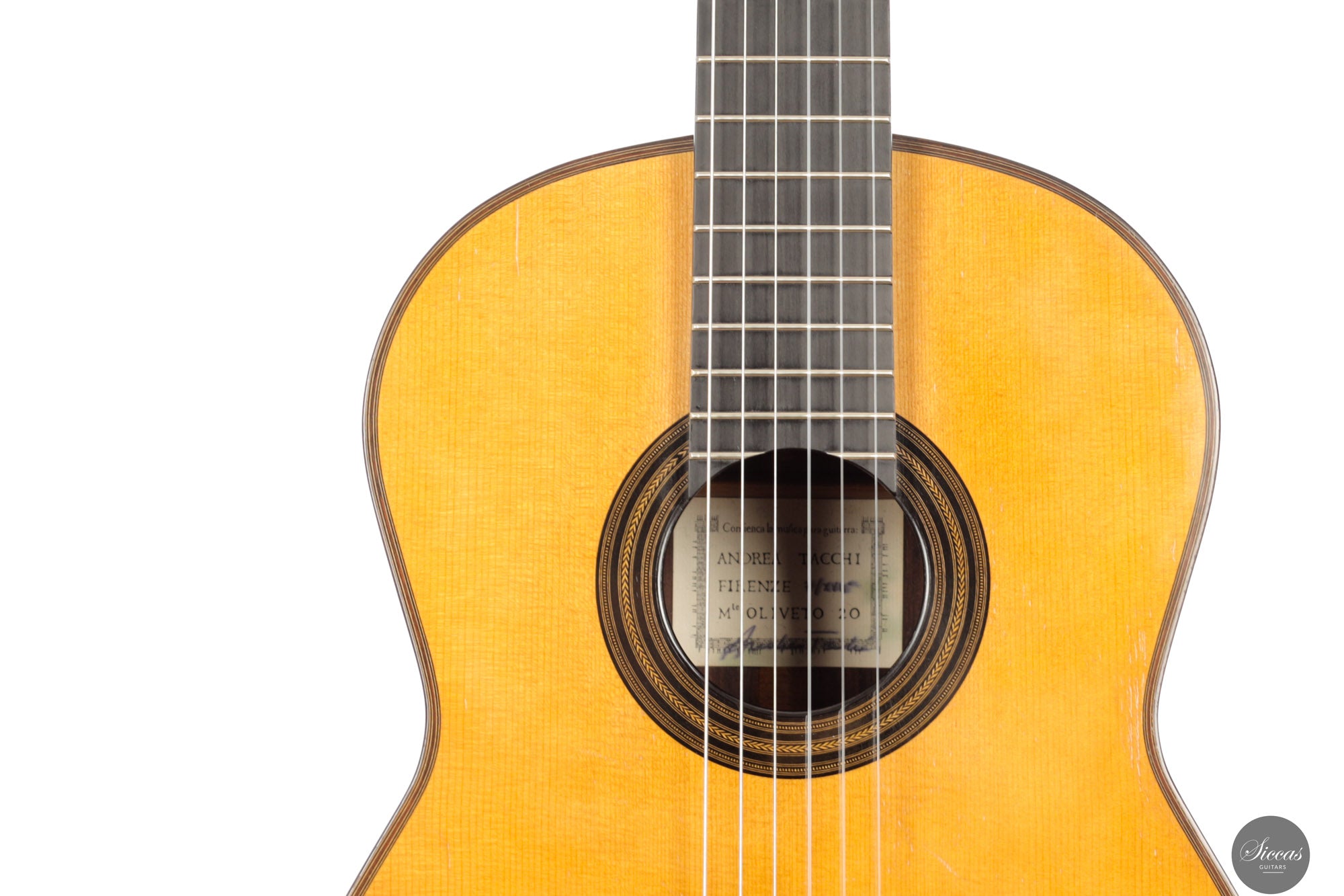 Andrea Tacchi wurde 1956 in Florenz (Italien) geboren, einer Stadt voller blühender Kunsthandwerkswerkstätten und Künstlerateliers. Dieses inspirierende Umfeld und die Begegnung mit dem südamerikanischen Gitarrenbauer Ricardo Brané führten ihn zum Beruf des Gitarrenbauers. In den 80er Jahren verfeinerte er sein Handwerk und seinen künstlerischen Geschmack im engen Austausch mit Robert Bouchet und Daniel Friederich. Später lernte er weiter von bedeutenden Gitarrenbauern wie Ignacio Fleta, José Romanillos und Robert Ruck, wobei er in die USA, nach England und Spanien reiste. Andrea Tacchis außergewöhnliche Meisterschaft wurde früh und verdientermaßen anerkannt. Bereits 1985 erhielt er den ersten Preis beim prestigeträchtigen internationalen Gitarrenbauwettbewerb, dem „Concours International des Facteurs de Guitare“, organisiert von Robert Vidal von Radio France. Von da an führte die weltweite Anerkennung durch Gitarristen und Sammler zu einer der umfangreichsten Wartelisten in der Geschichte des Gitarrenbaus. Die Liste legendärer Gitarristen, renommierter Professoren und junger Konzertmusiker, die Andrea Tacchi-Gitarren spielen, ist lang. Einige von ihnen sind: Carlo Marchione, Carlotta Dalia, Antigoni Goni, Renata Arlotti, Filomena Moretti, Flavio Cucchi, Robert Gruca, Colin Davin, Minoru Inagaki und Marcelo Kayath.Über die Gitarre