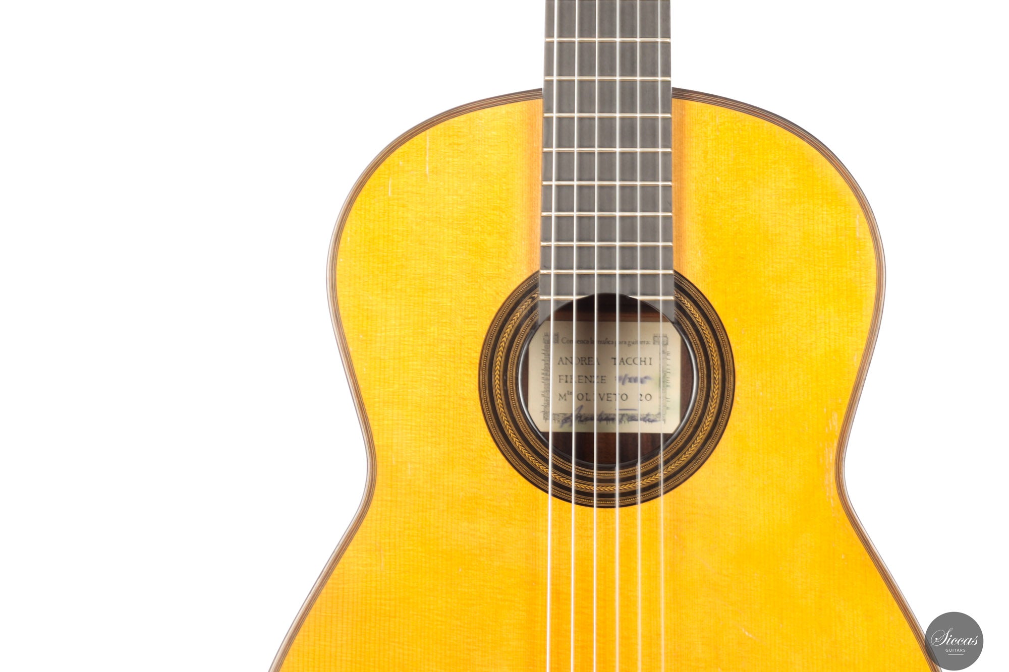 Andrea Tacchi wurde 1956 in Florenz (Italien) geboren, einer Stadt voller blühender Kunsthandwerkswerkstätten und Künstlerateliers. Dieses inspirierende Umfeld und die Begegnung mit dem südamerikanischen Gitarrenbauer Ricardo Brané führten ihn zum Beruf des Gitarrenbauers. In den 80er Jahren verfeinerte er sein Handwerk und seinen künstlerischen Geschmack im engen Austausch mit Robert Bouchet und Daniel Friederich. Später lernte er weiter von bedeutenden Gitarrenbauern wie Ignacio Fleta, José Romanillos und Robert Ruck, wobei er in die USA, nach England und Spanien reiste. Andrea Tacchis außergewöhnliche Meisterschaft wurde früh und verdientermaßen anerkannt. Bereits 1985 erhielt er den ersten Preis beim prestigeträchtigen internationalen Gitarrenbauwettbewerb, dem „Concours International des Facteurs de Guitare“, organisiert von Robert Vidal von Radio France. Von da an führte die weltweite Anerkennung durch Gitarristen und Sammler zu einer der umfangreichsten Wartelisten in der Geschichte des Gitarrenbaus. Die Liste legendärer Gitarristen, renommierter Professoren und junger Konzertmusiker, die Andrea Tacchi-Gitarren spielen, ist lang. Einige von ihnen sind: Carlo Marchione, Carlotta Dalia, Antigoni Goni, Renata Arlotti, Filomena Moretti, Flavio Cucchi, Robert Gruca, Colin Davin, Minoru Inagaki und Marcelo Kayath.