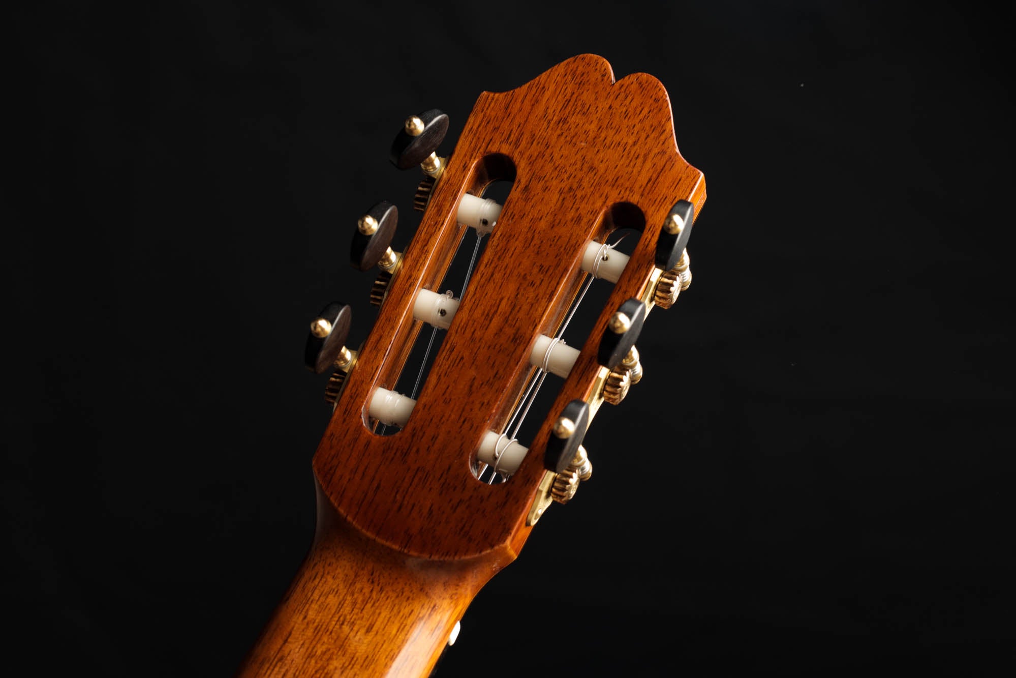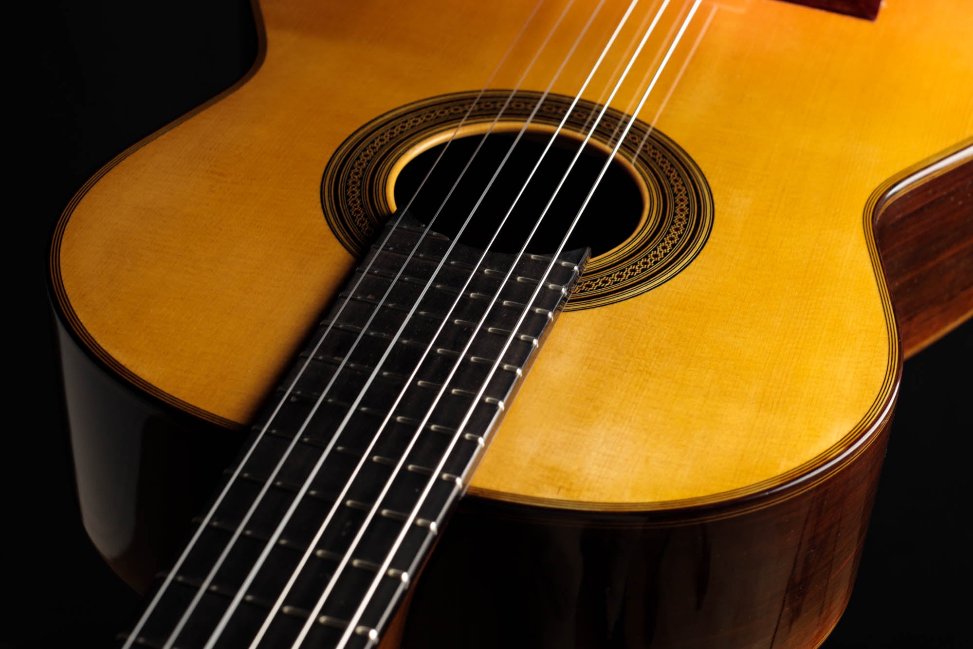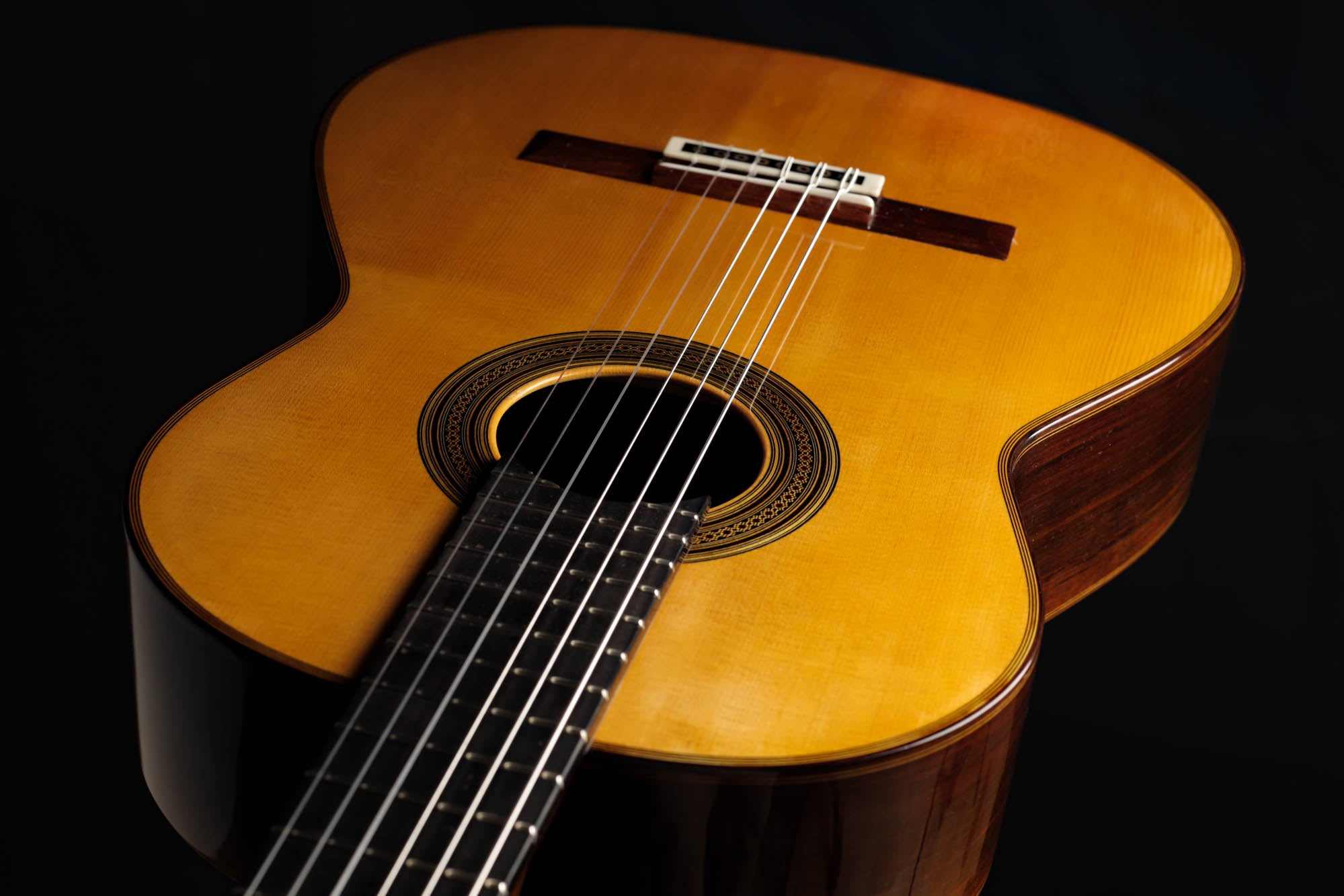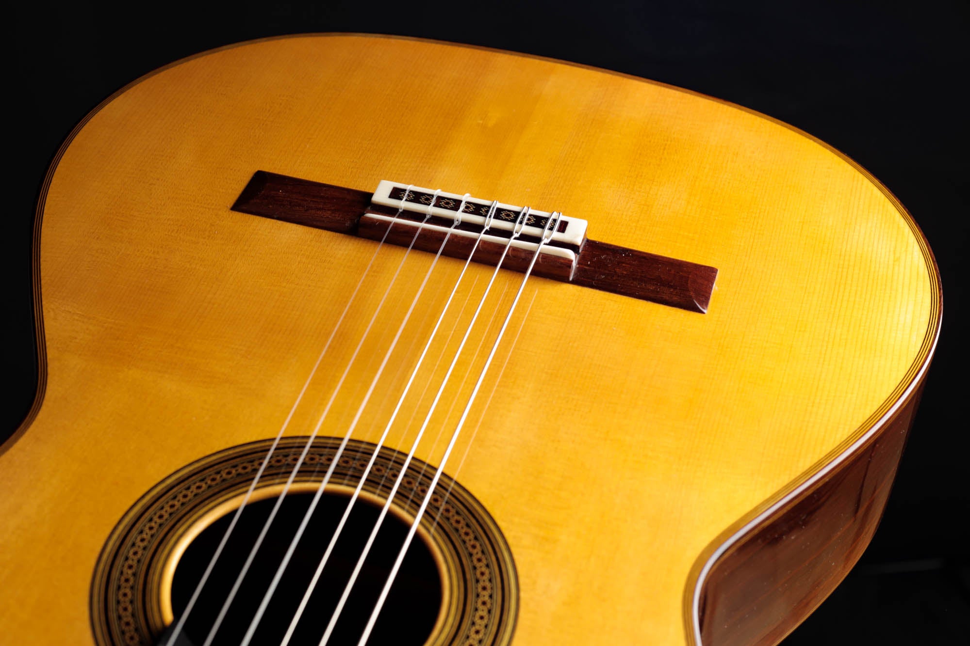 Das Modell "Omaggio a Maestro Robert Bouchet" von Andrea Tacchi, einem verehrten italienischen Meistergitarrenbauer, steht als großartige Hommage an die einzigartige Ästhetik und die klanglichen Qualitäten der ikonischen Instrumente von Robert Bouchet. Diese 2014er Kreation verkörpert Taccis außergewöhnliches Handwerk, das sofort in jedem Aspekt der Gitarre erkennbar ist. Sie zeichnet sich durch einen Schellack-Politur in warmem Farbton aus, der die schön gemaserte Fichtendecke hervorhebt, ein Zeugnis für Taccis sorgfältige Auswahl von erstklassigen Hölzern aus seinem exquisiten Bestand. Die Liebe zum Detail bei dieser Gitarre ist unvergleichlich; jeder kleine Aspekt ist akribisch gefertigt und spiegelt Andreas künstlerisches Können und seine Hingabe an sein Handwerk wider. Trotz eines oberflächlichen dünnen Risses im brasilianischen Palisander für Rücken und Seiten, einer häufigen Erscheinung bei feinen Gitarren, der fachmännisch geklebt wurde und rein ästhetisch bleibt, befindet sich die Gitarre in einem großartigen Zustand und zeigt nur minimale Gebrauchsspuren.