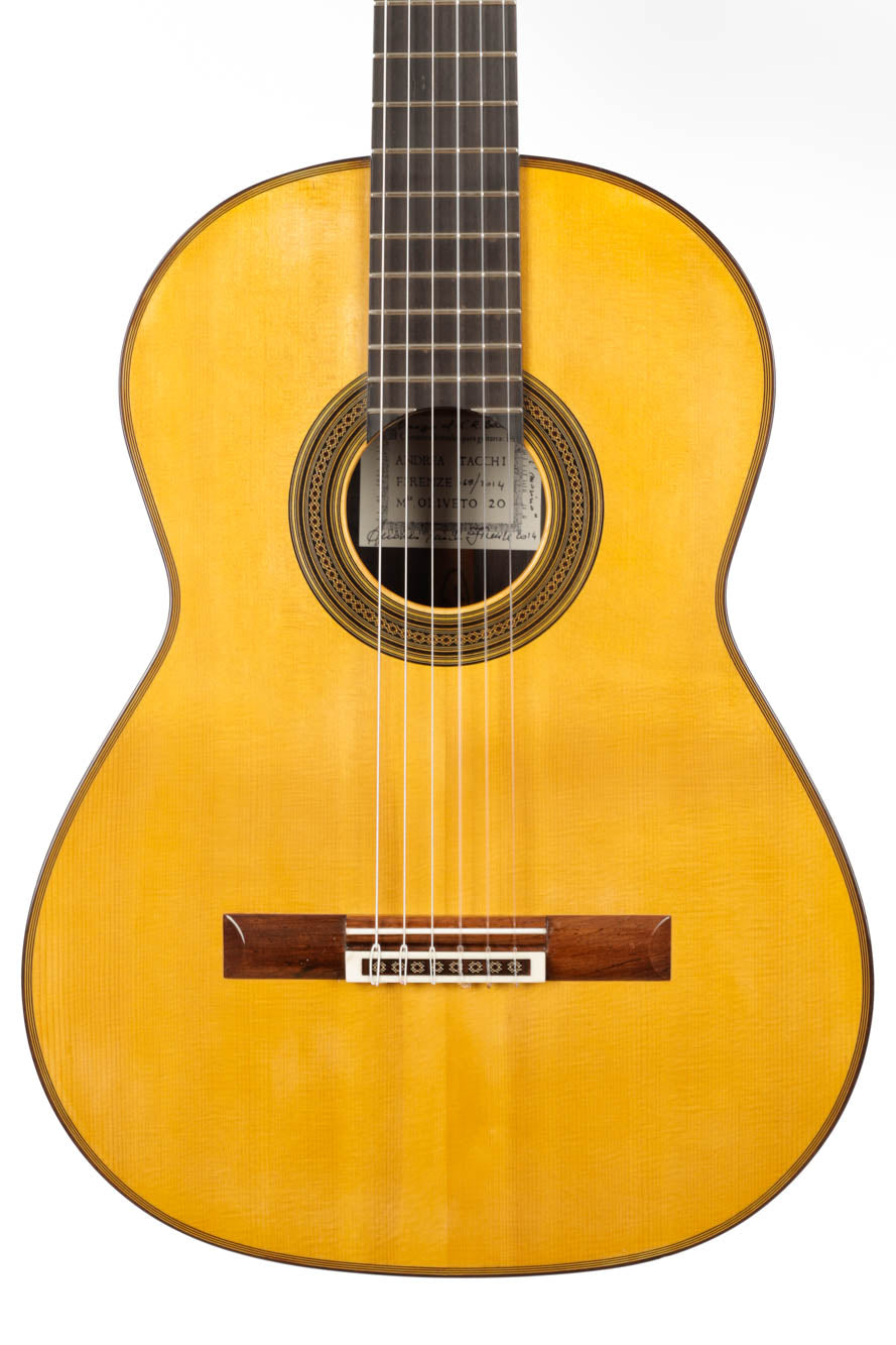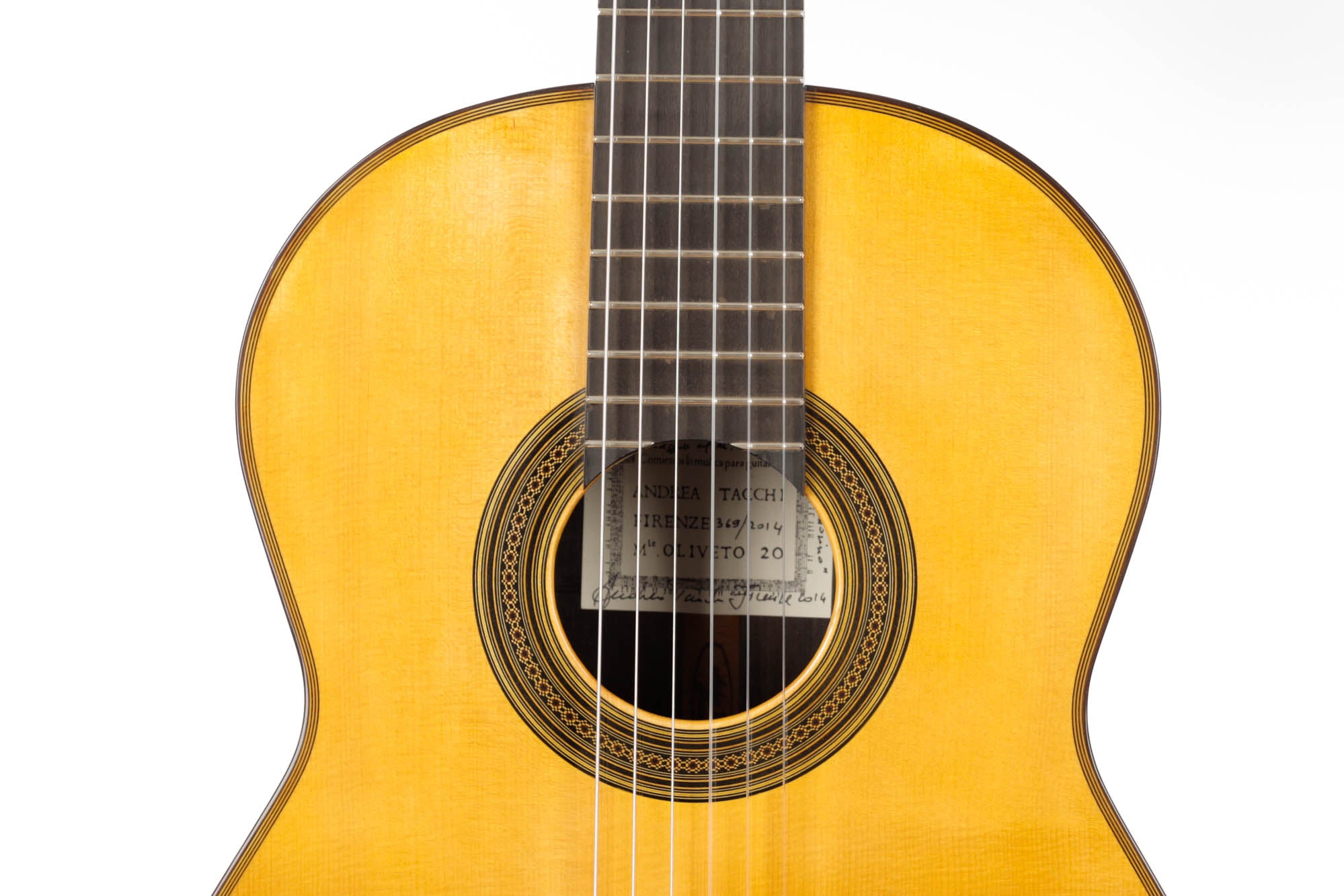 Andrea Tacchi wurde 1956 in Florenz (Italien) geboren, in einer Zeit, in der die Stadt mit Handwerksbetrieben und Künstlerateliers florierte. Dieses sehr anregende Umfeld und die Begegnung mit dem südamerikanischen Gitarrenbauer Ricardo Brané veranlassten ihn, Gitarrenbauer zu werden. In engem Kontakt mit Robert Bouchet und Daniel Friederich entwickelte er in den 80er Jahren sein handwerkliches Können und seinen künstlerischen Geschmack. Später lernte er von weiteren bedeutenden Gitarrenbauern wie Ignacio Fleta, José Romanillos und Robert Ruck und reiste dafür persönlich in die Vereinigten Staaten, nach England und Spanien. Andrea Tacchis außerordentliche Kunstfertigkeit wurde reichlich und verdientermaßen honoriert. Bereits 1985 erhielt er den ersten Preis beim renommierten internationalen Gitarrenbauwettbewerb „Concours International des Facteurs de Guitare“, der von Robert Vidal von Radio France organisiert wurde. Von da an führte die weltweite Anerkennung durch Gitarristen und Sammler zu einer Warteliste, die zu den beeindruckendsten ihrer Zunft zählt. Die Zahl legendärer Gitarristen, angesehener Professoren und junger Künstler, die Andrea Tacchi-Gitarren spielen, ist dementsprechend hoch. Um nur einige zu nennen: Carlo Marchione, Carlotta Dalia, Antigoni Goni, Renata Arlotti, Filomena Moretti, Flavio Cucchi, Robert Gruca, Colin Davin, Minoru Inagaki, und Marcelo Kayath