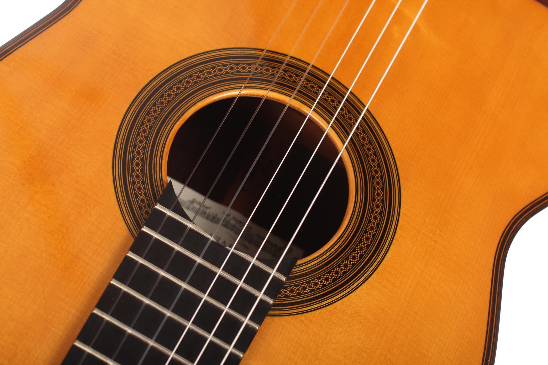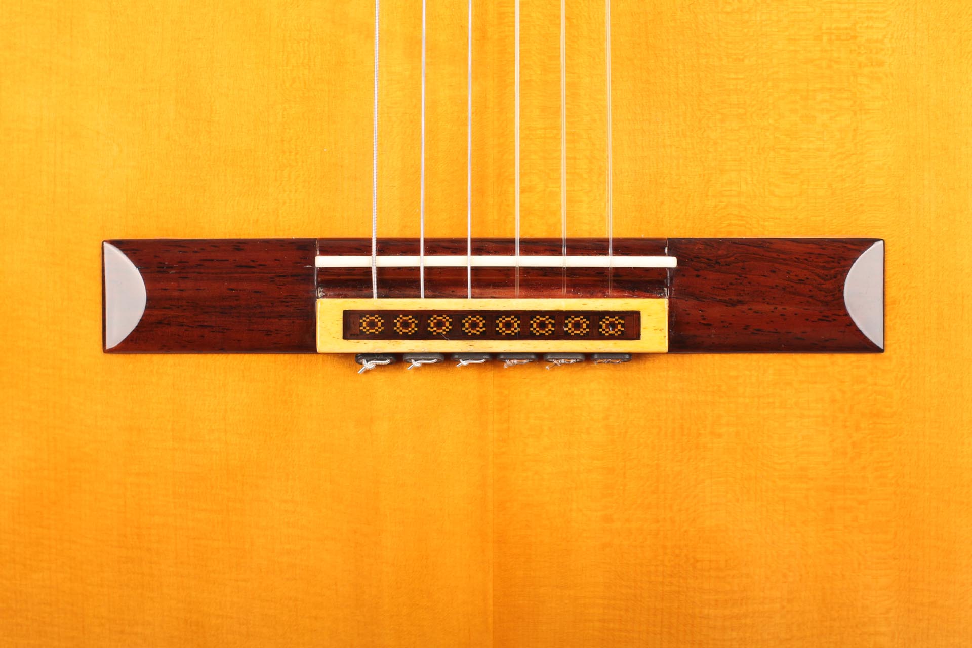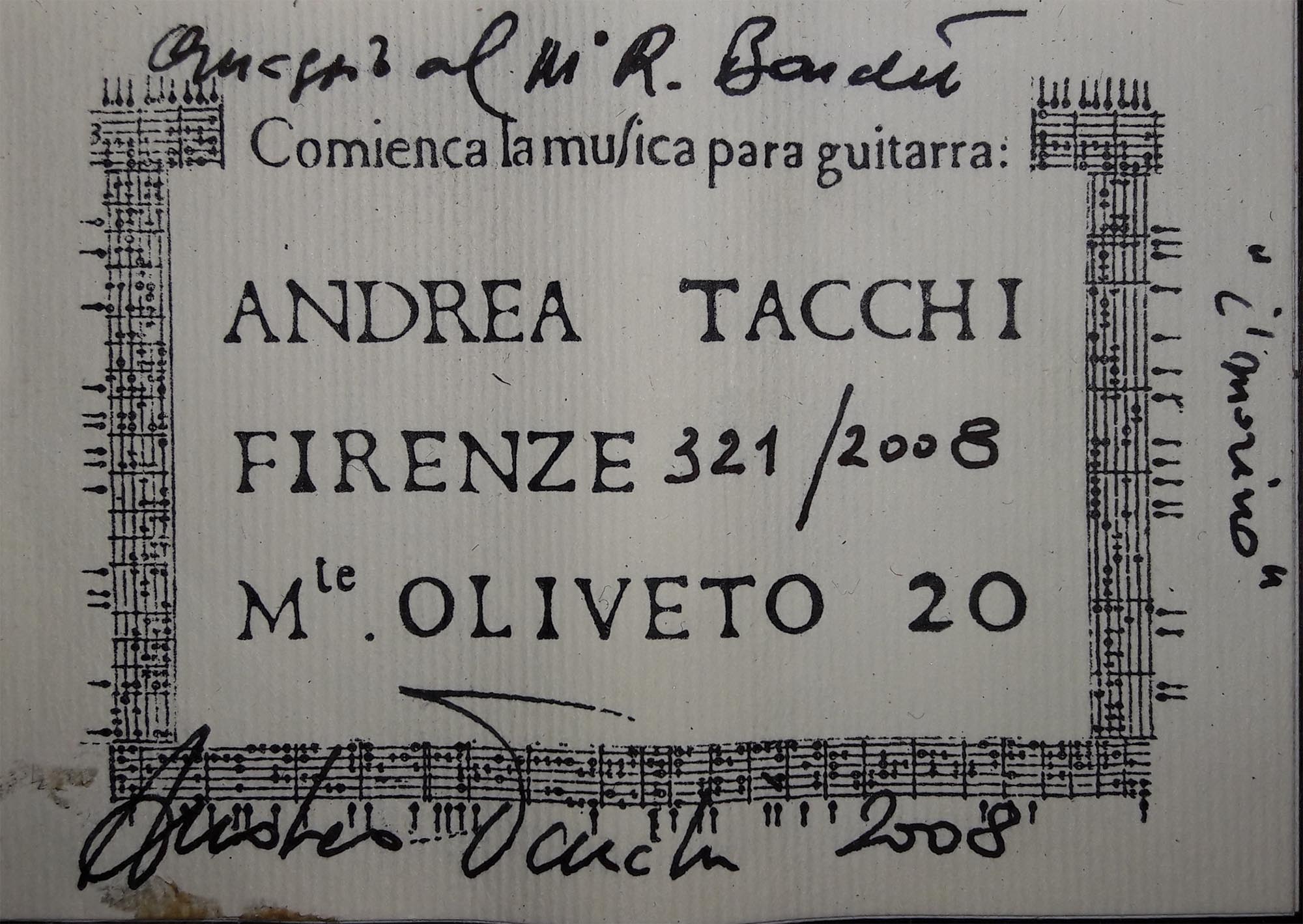 Andrea Tacchi was born in Florence (Italy) in 1956 at the time the city was flourishing with artisan’s workshops and artists’ studios. This very stimulating environment and the meeting of the South American guitar maker Ricardo Brané drove him to become a luthier. In close contact to Robert Bouchet and Daniel Friederich during the 80s, he developed his craftmanship and his artistic tastes. Later on, he kept learning from other important guitar makers as Ignacio Fleta, José Romanillos and Robert Ruck. This guitar is a great technical achievement as well as an emotional tribute to Robert Bouchet and the French guitar making school of the twentieth century.