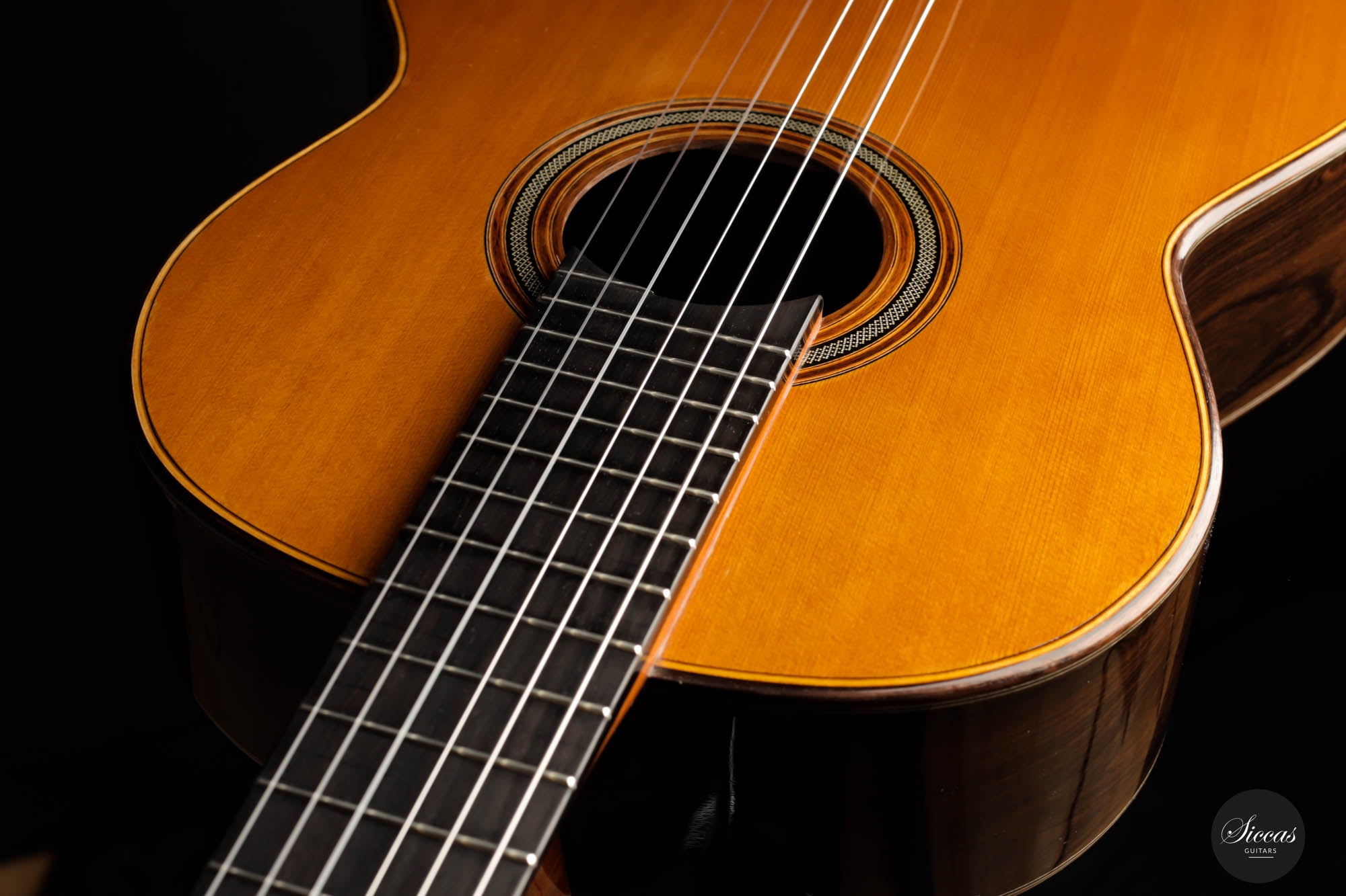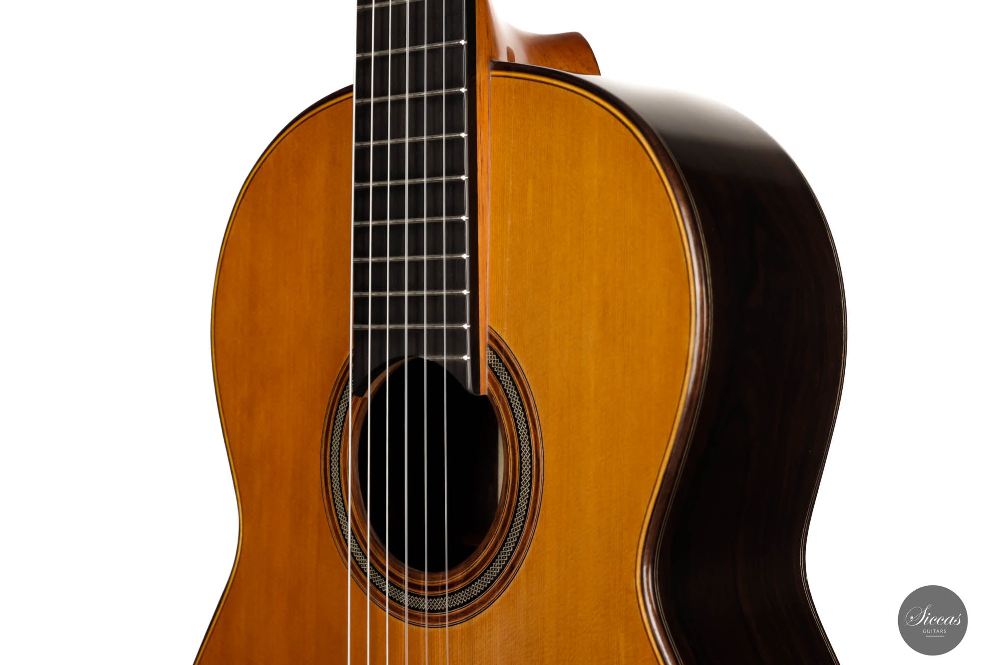 Thanks to its lightweight, this fantastic instrument responds very well to the touch of the right hand, making it incredibly comfortable to play. The dark cedar top is a wonderful match for the sometimes mysterious and emphatic sound character. A distinctive ziricote back and sides complete the appealing aesthetics of this guitar. Thanks to the particularly accessible neck shape, even demanding musical passages can be confidently played. This 2017 model is in excellent condition with only superficial signs of play. Also noteworthy are the great tonal volume and excellent projection with which this guitar performs brilliantly in any playing situation. A very desirable concert instrument that is packed with lots of character and personality.