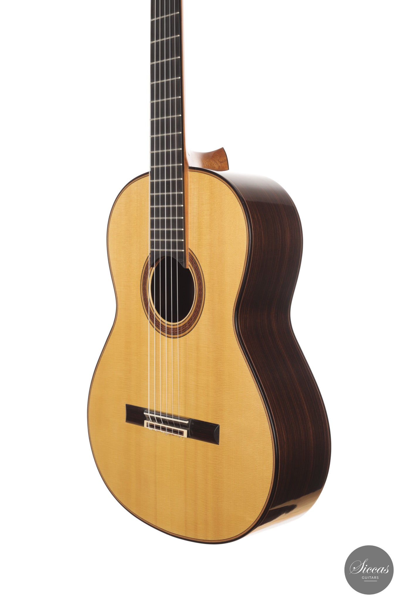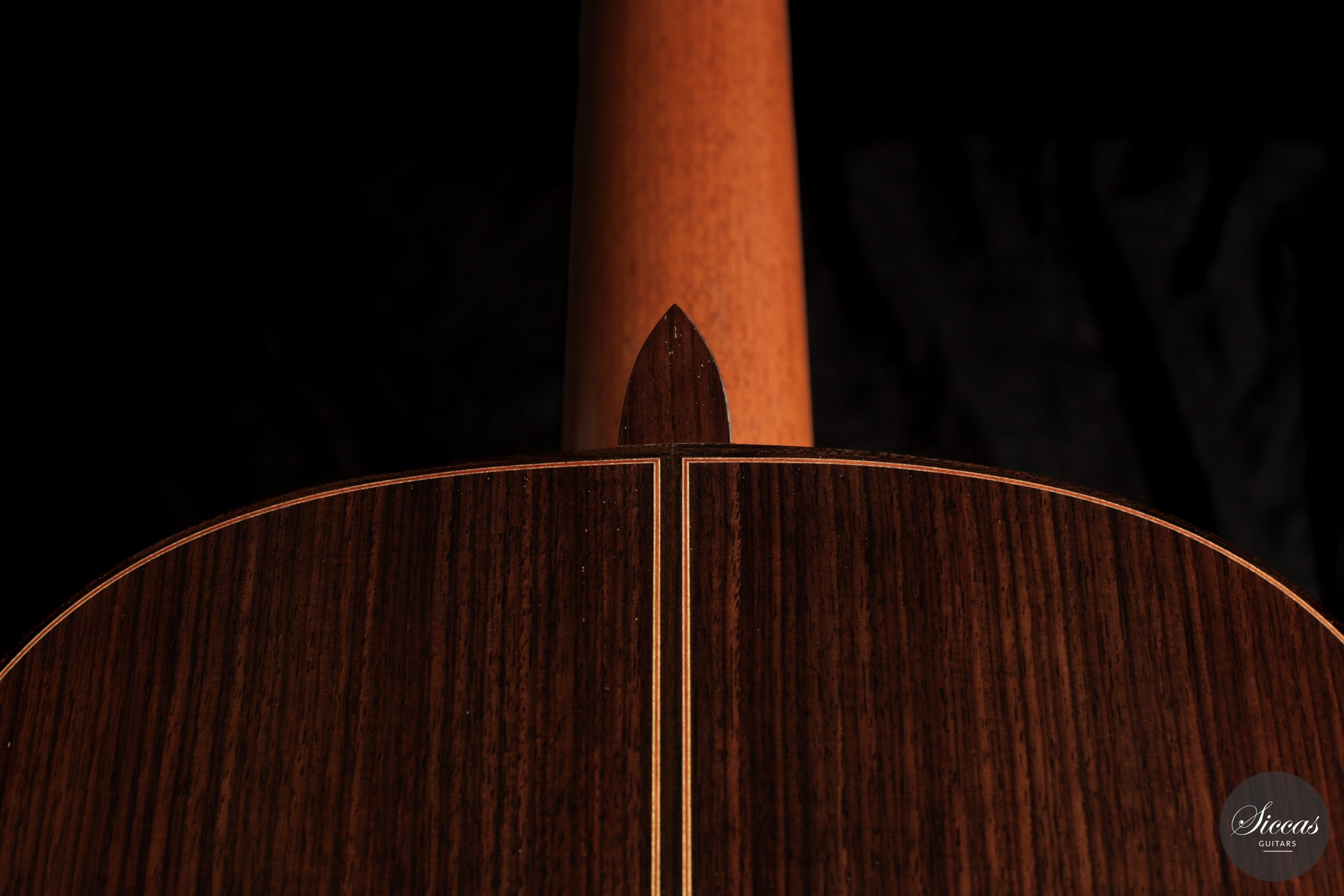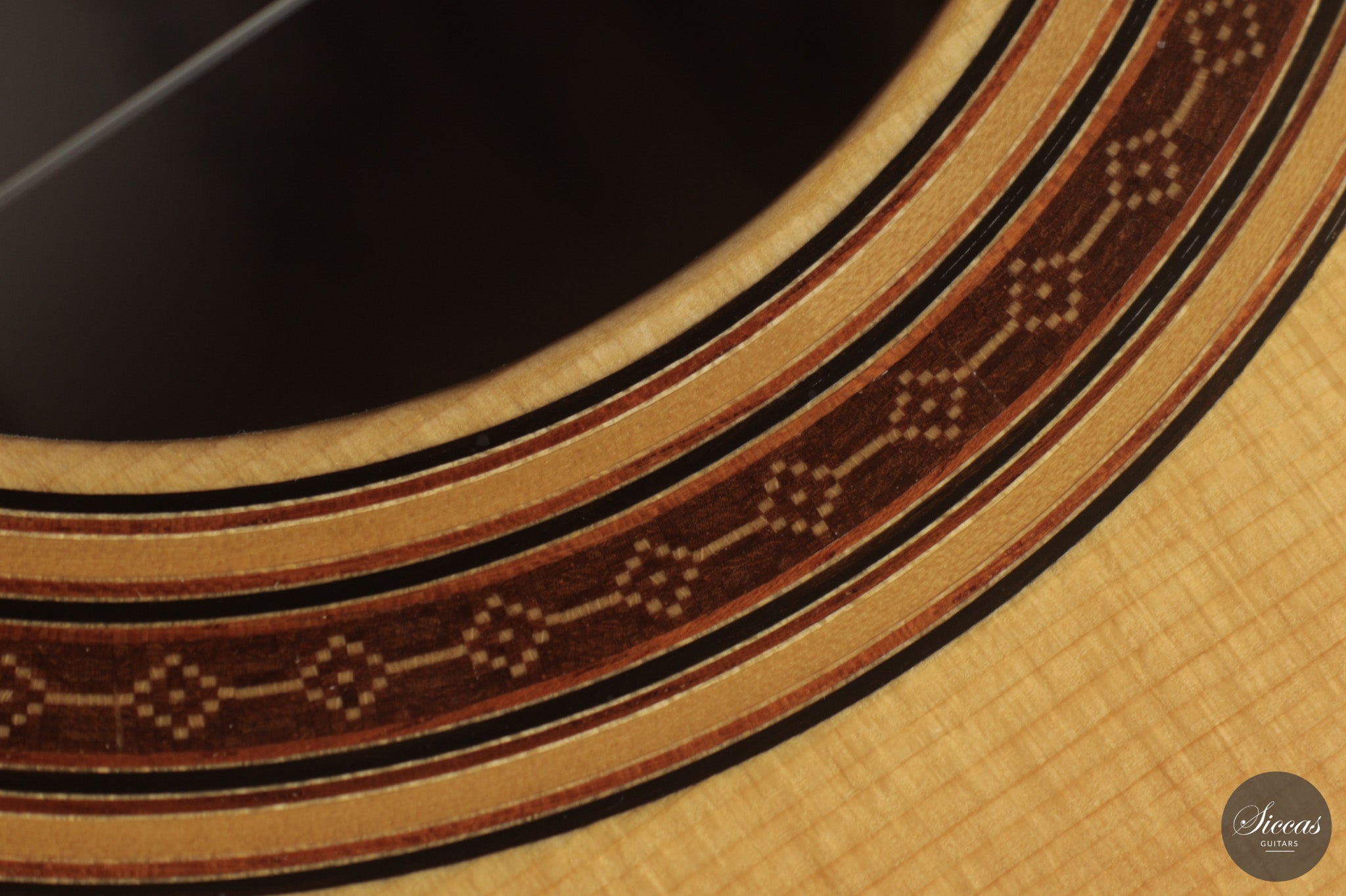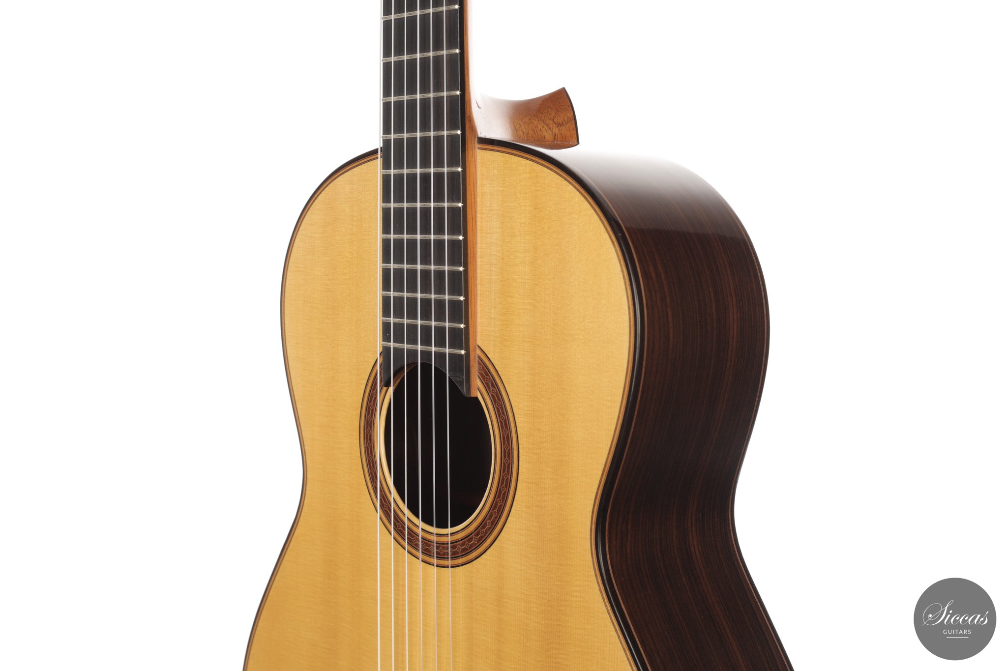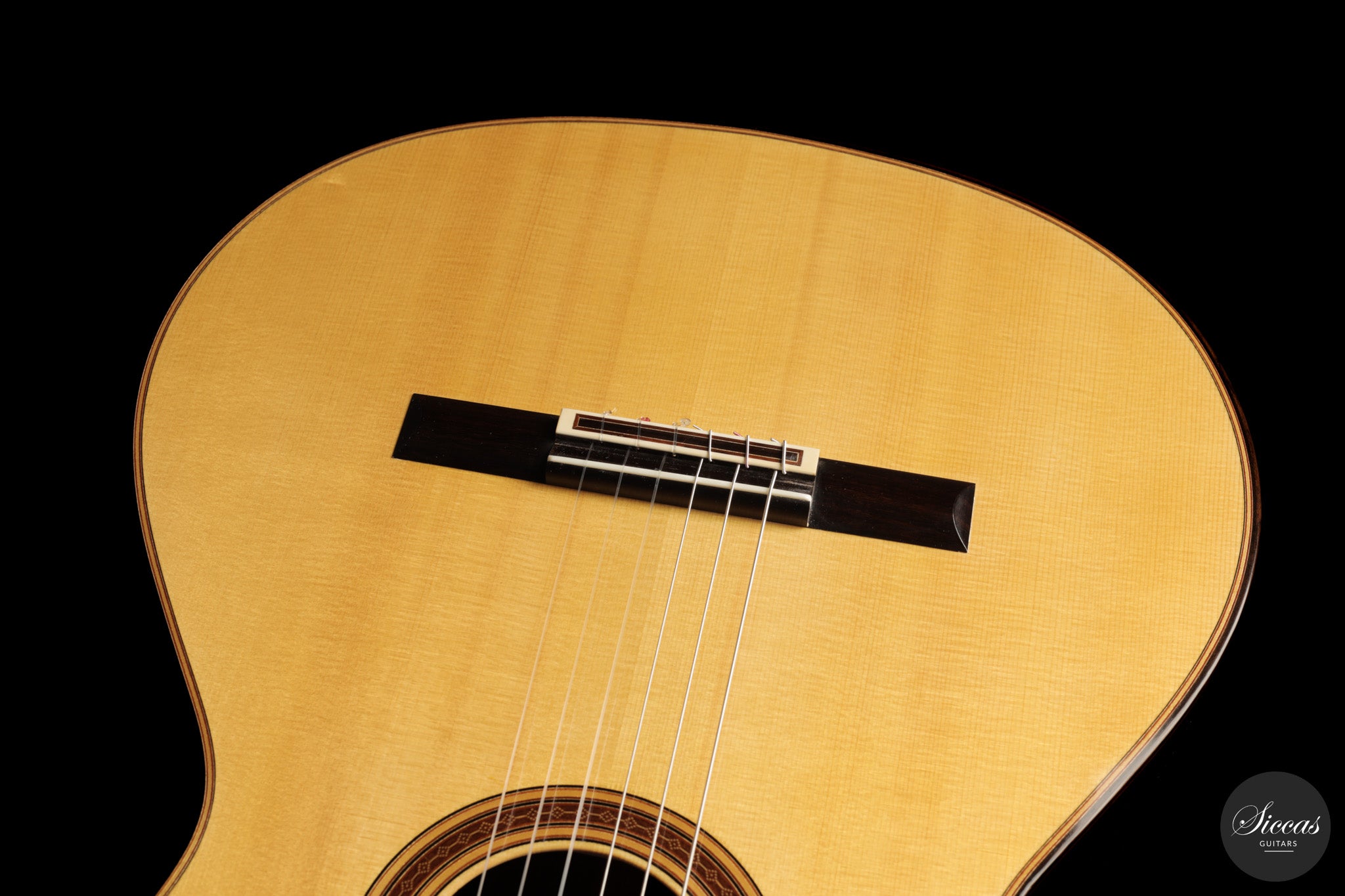 Die Kombination aus Fichtendecke und Korpus aus indischem Palisander sorgt für ein ausgewogenes Klangbild über alle Register hinweg, mit sehr gutem Sustain und einer schönen Transparenz sowohl im Akkordspiel als auch in einlinigen Passagen. Die Gitarre bietet Projektion und Unmittelbarkeit, bleibt dabei jedoch stets kontrolliert. Besonders auffällig ist, wie klar die einzelnen Töne in jeder Lage des Griffbretts erhalten bleiben, wodurch sich ein breites Farbspektrum eröffnet, ohne dass die klangliche Geschlossenheit verloren geht.