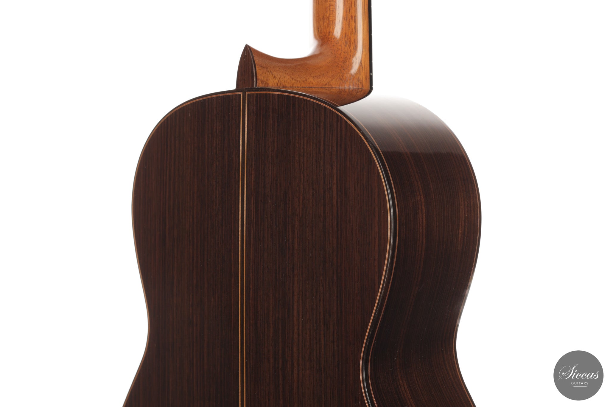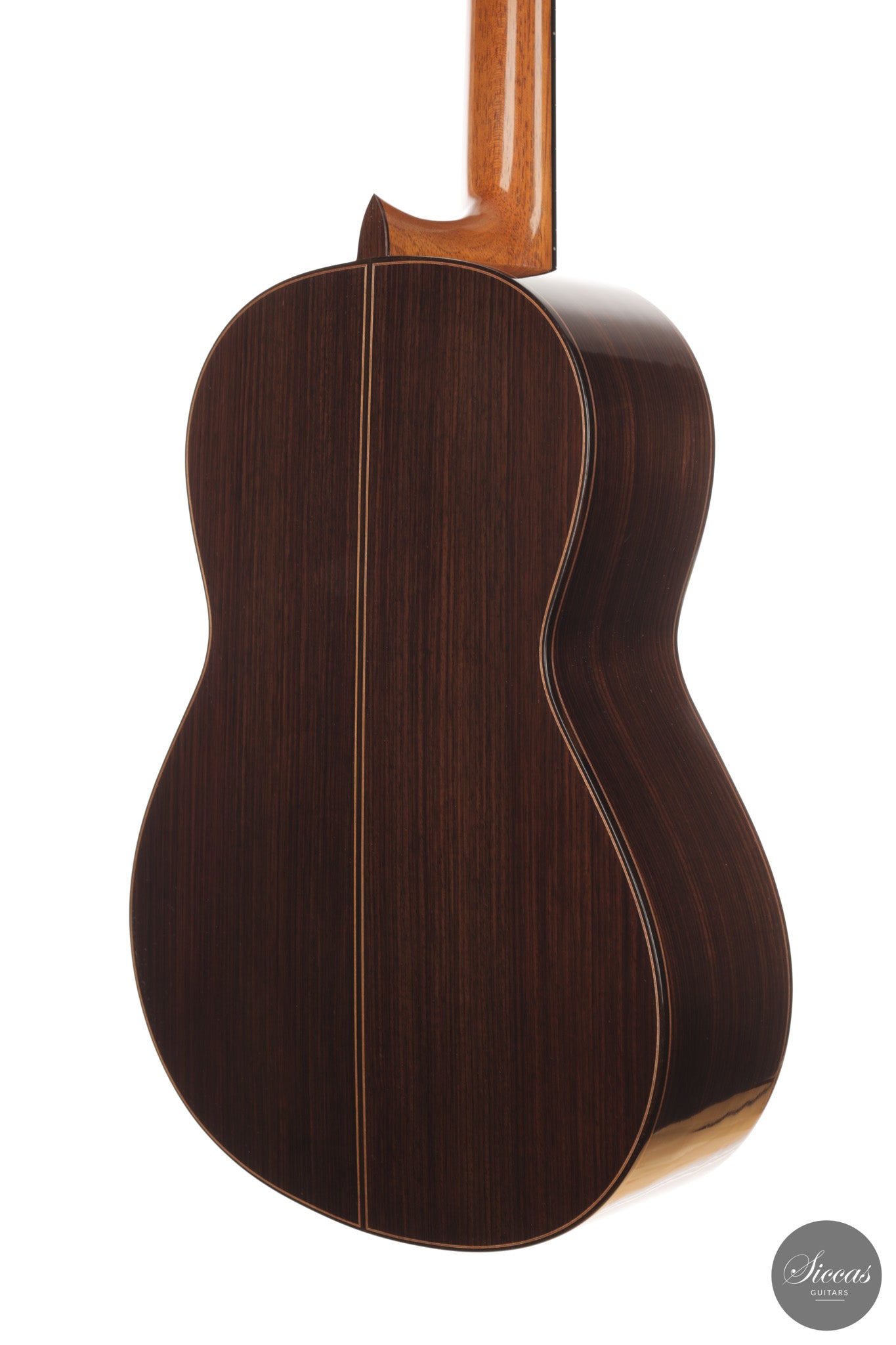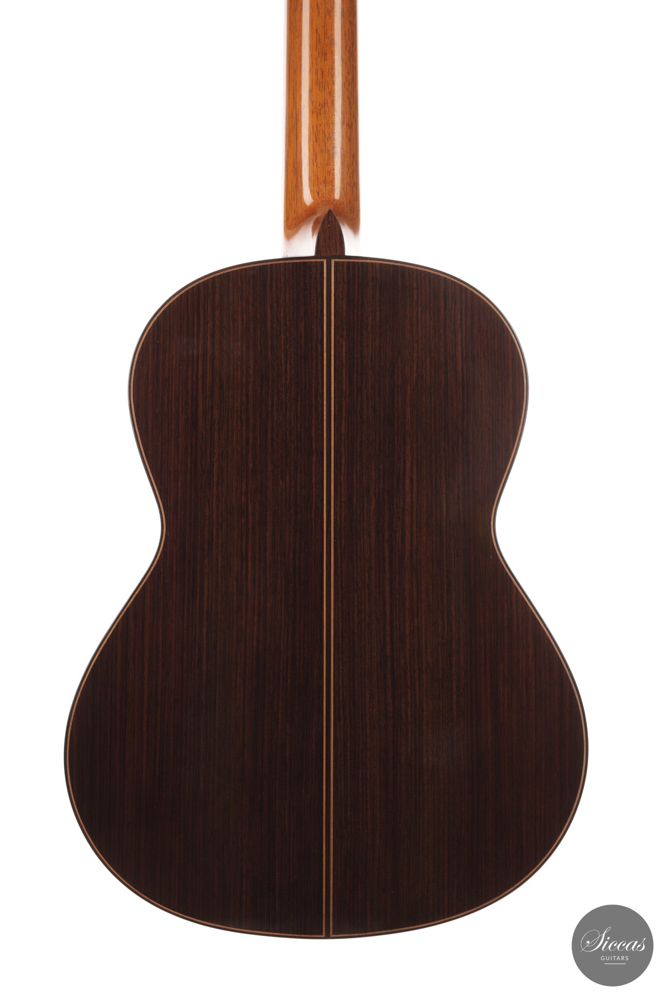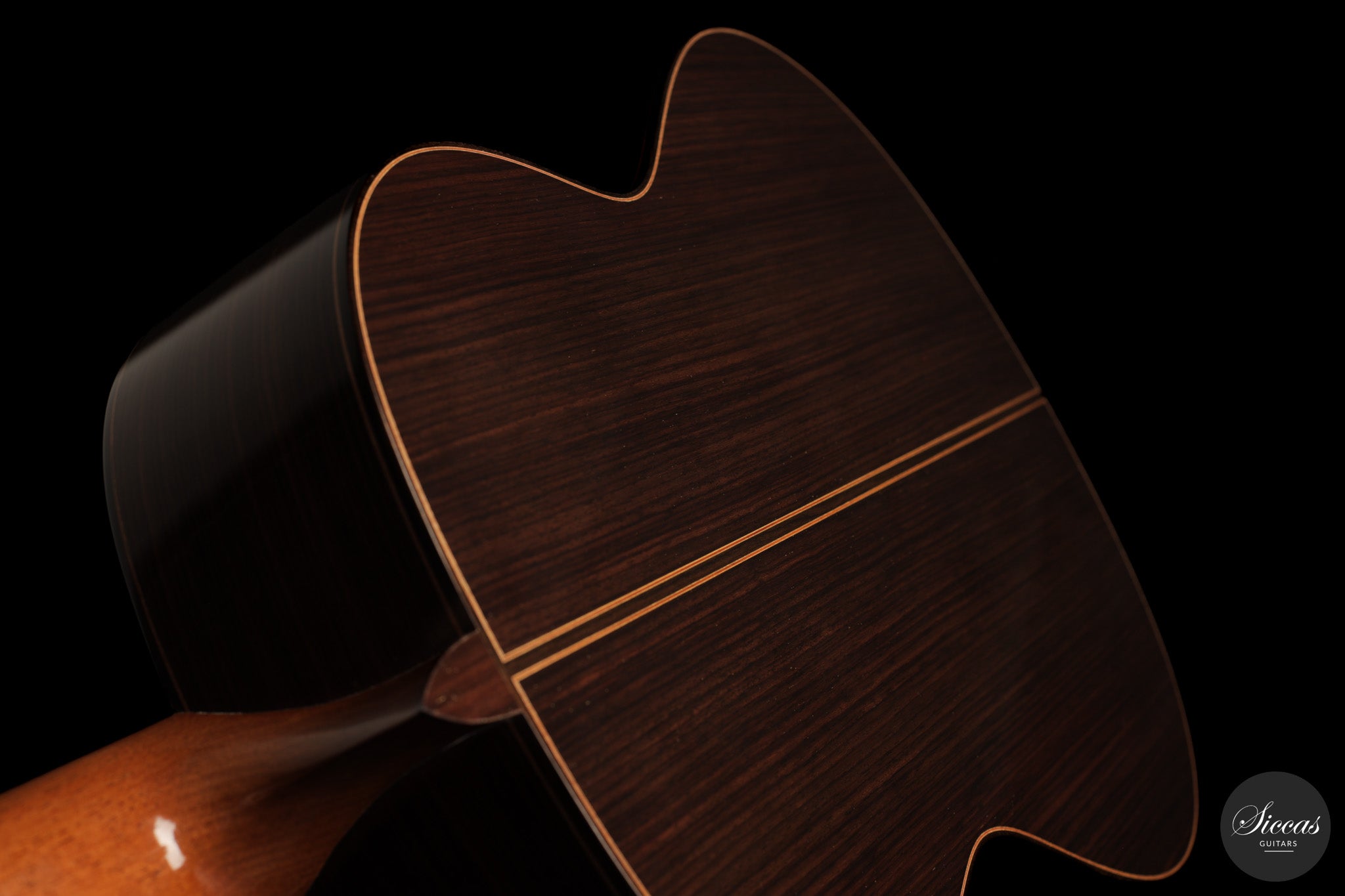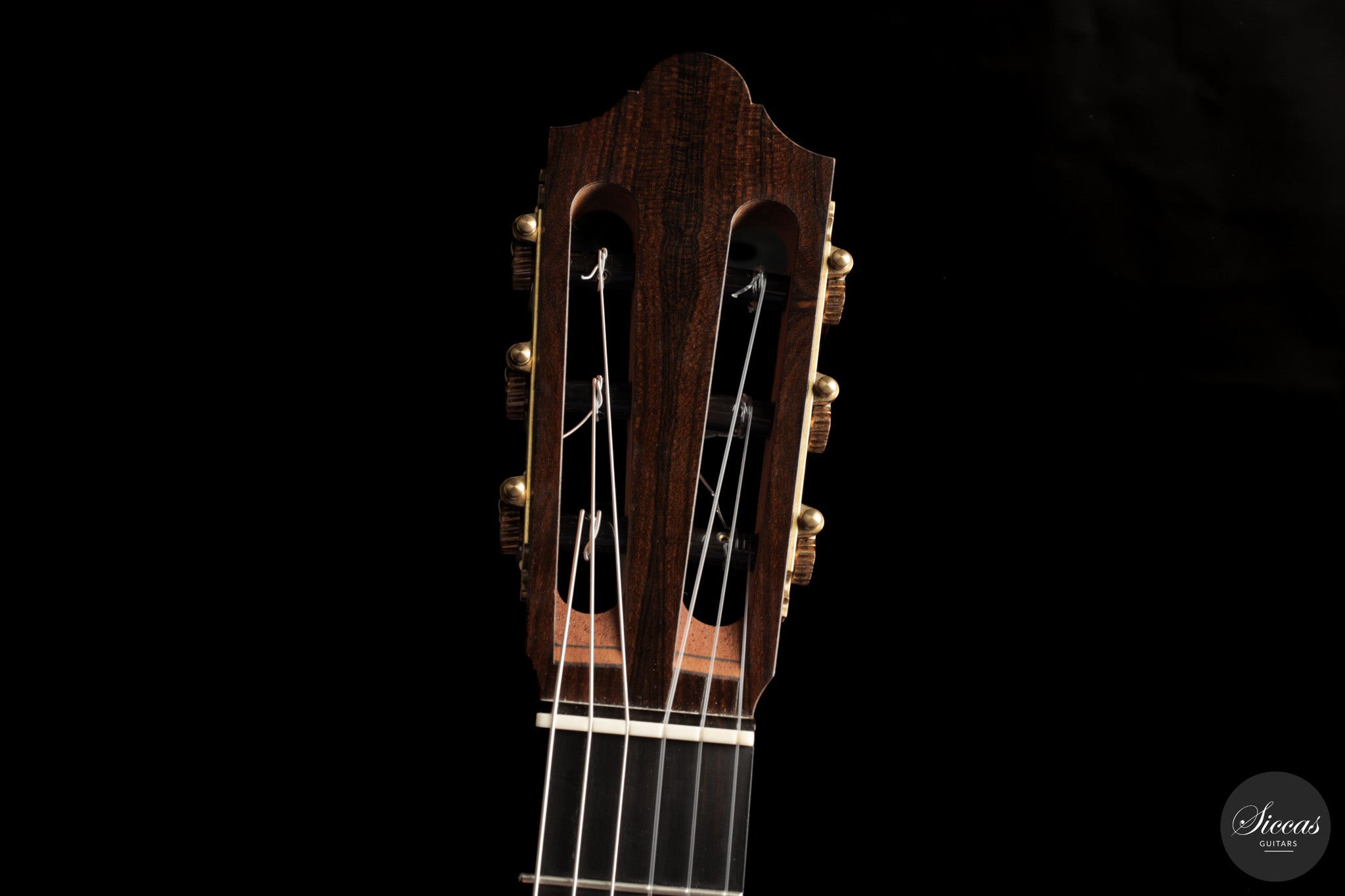 Die Kombination aus Fichtendecke und Korpus aus indischem Palisander sorgt für ein ausgewogenes Klangbild über alle Register hinweg, mit sehr gutem Sustain und einer schönen Transparenz sowohl im Akkordspiel als auch in einlinigen Passagen. Die Gitarre bietet Projektion und Unmittelbarkeit, bleibt dabei jedoch stets kontrolliert. Besonders auffällig ist, wie klar die einzelnen Töne in jeder Lage des Griffbretts erhalten bleiben, wodurch sich ein breites Farbspektrum eröffnet, ohne dass die klangliche Geschlossenheit verloren geht.