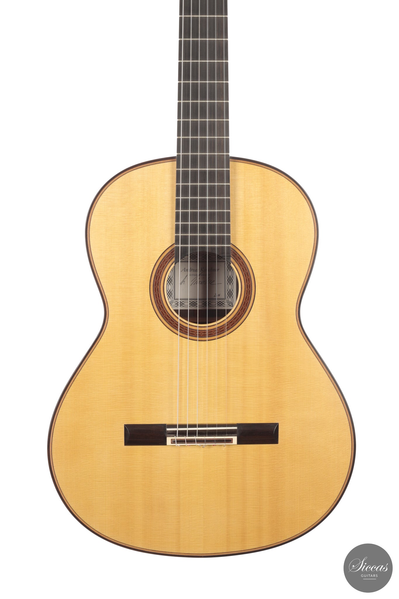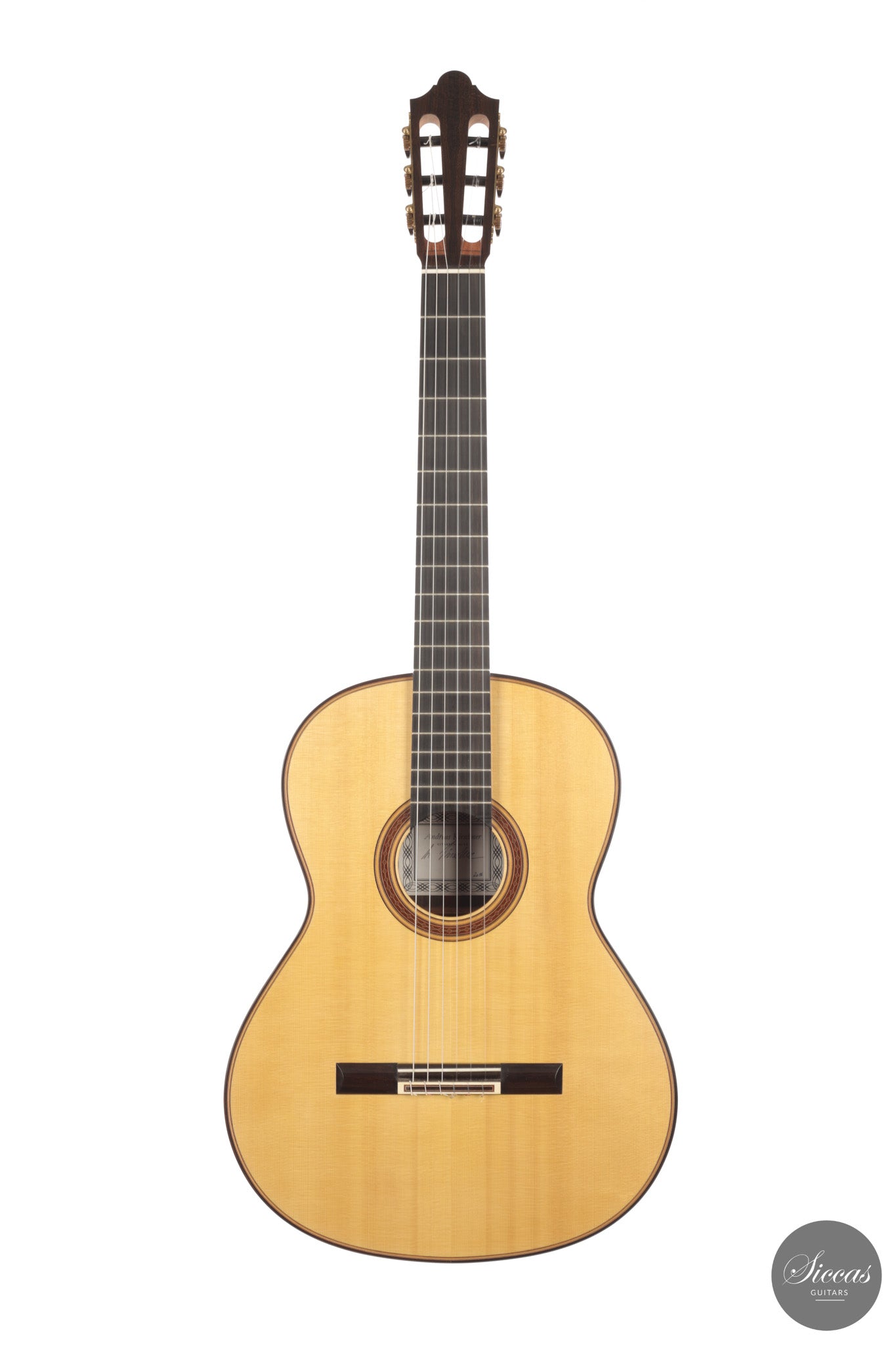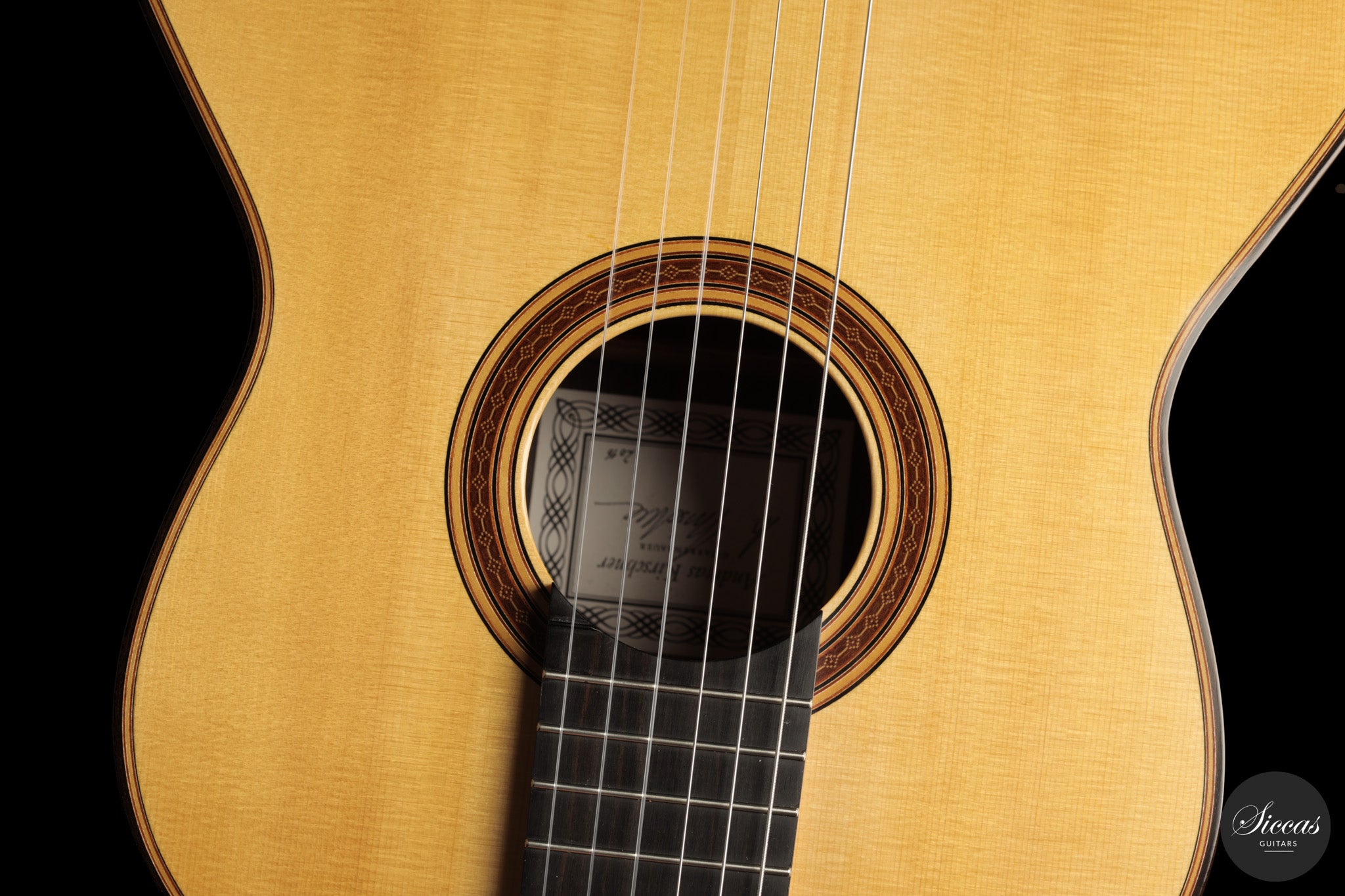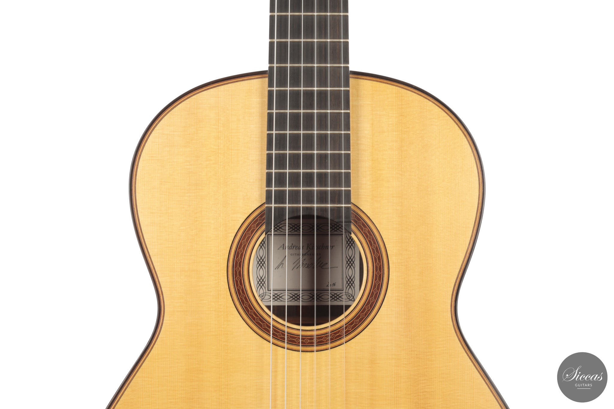 Diese Andreas Kirschner aus dem Jahr 2016 ist eine traditionell gebaute Konzertgitarre mit massiver Decke und einer bemerkenswert offenen, artikulierten Stimme. Obwohl Kirschner heute vor allem für seine Double Top Instrumente bekannt ist, zeigt diese Gitarre sehr überzeugend, wie schlüssig sich seine klanglichen Vorstellungen auch in einer klassischeren Bauweise entfalten. Der Ton ist klar, hell und angenehm direkt, mit ausgezeichneter Trennung der Stimmen und einer luftigen Qualität, die dem Instrument Präsenz verleiht, ohne je hart zu wirken.