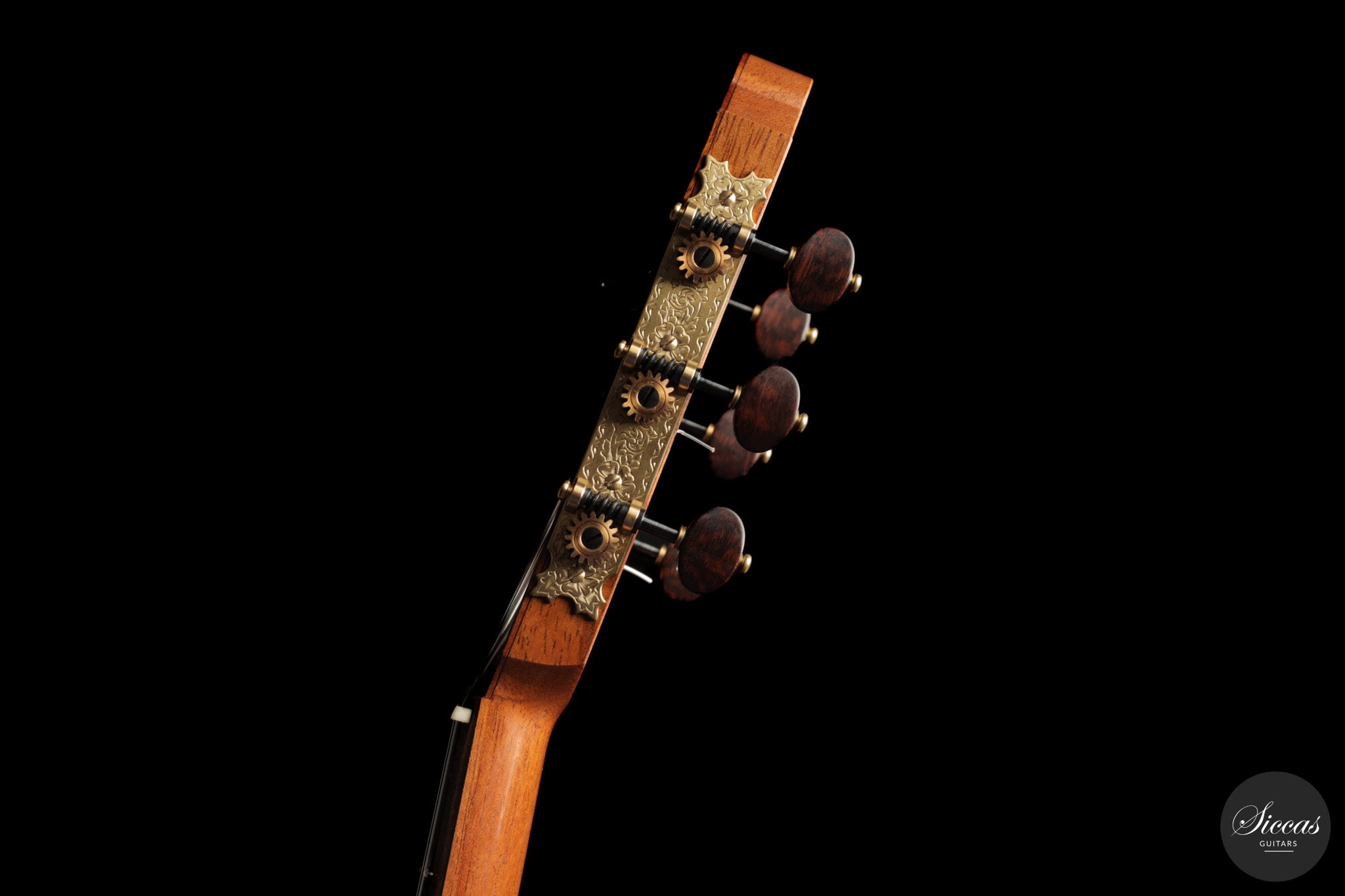 Die Gitarre befindet sich in ausgezeichnetem Zustand ohne Schäden oder Reparaturen. Sie zeigt lediglich minimale, sorgfältige Gebrauchsspuren, und die originale French Polish ist insgesamt in hervorragendem Zustand erhalten.