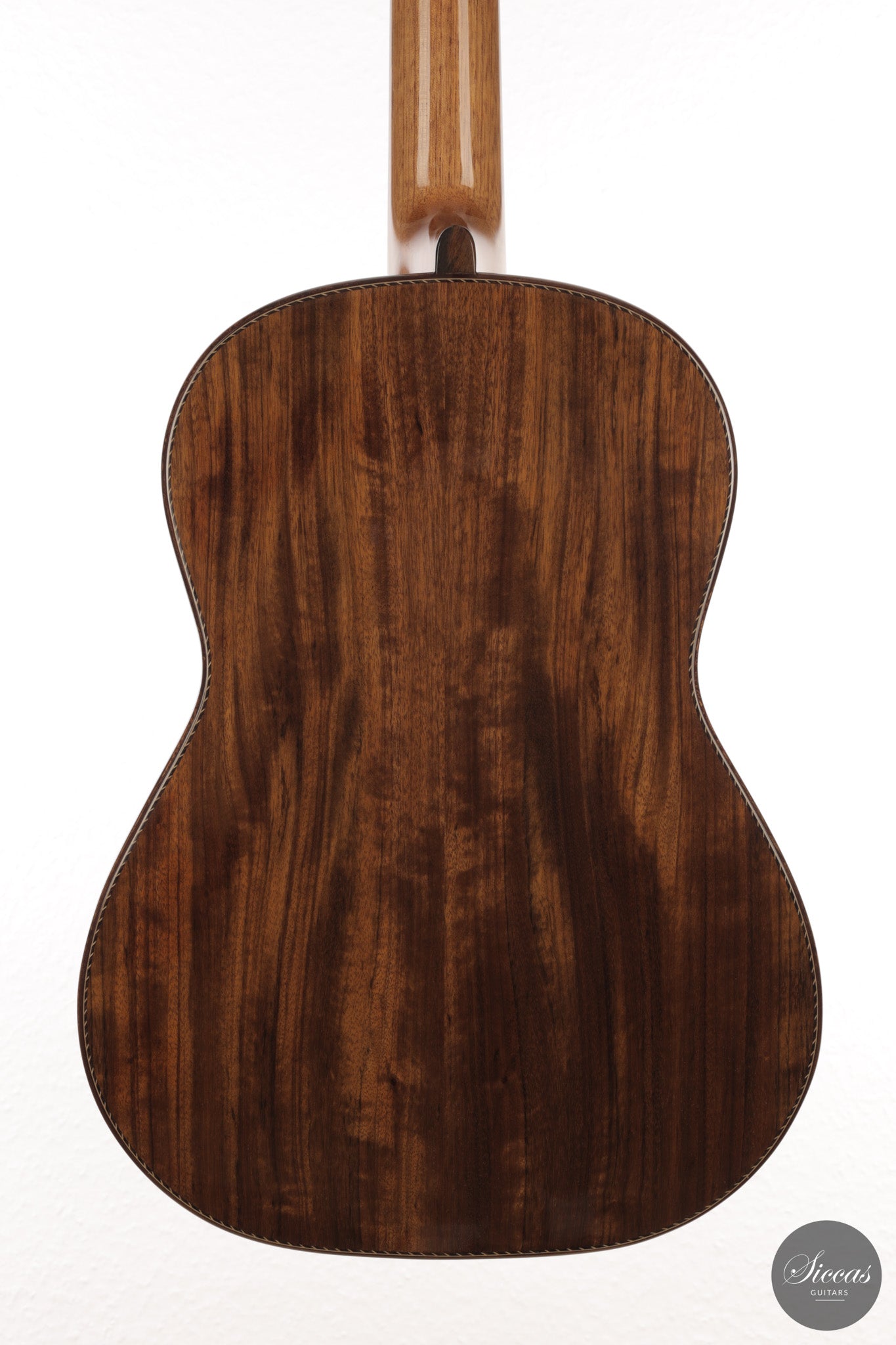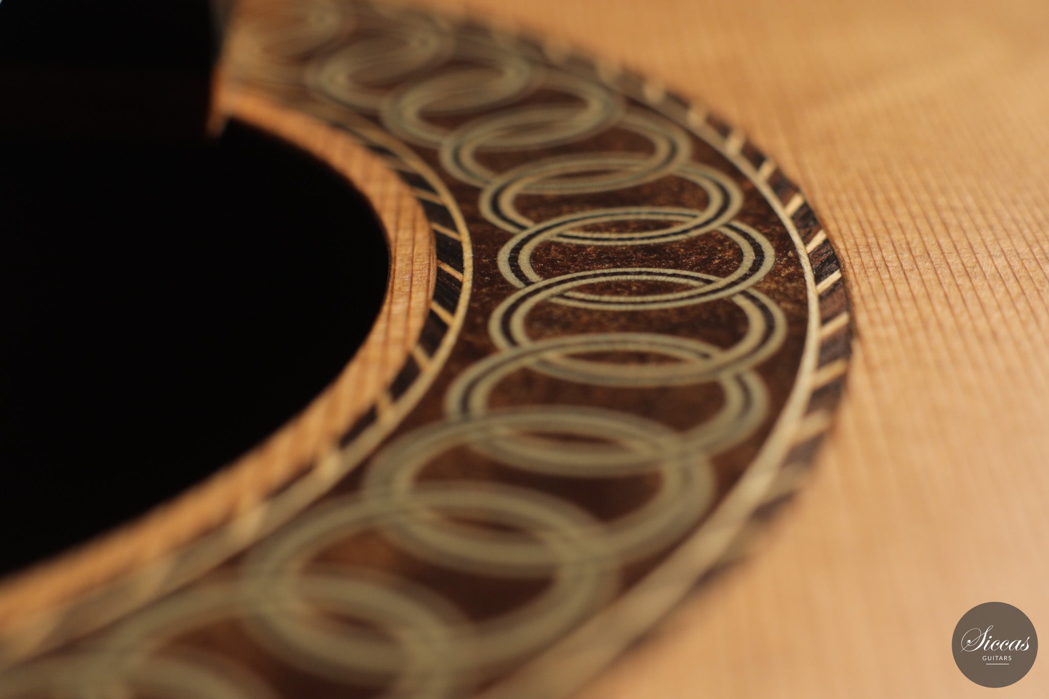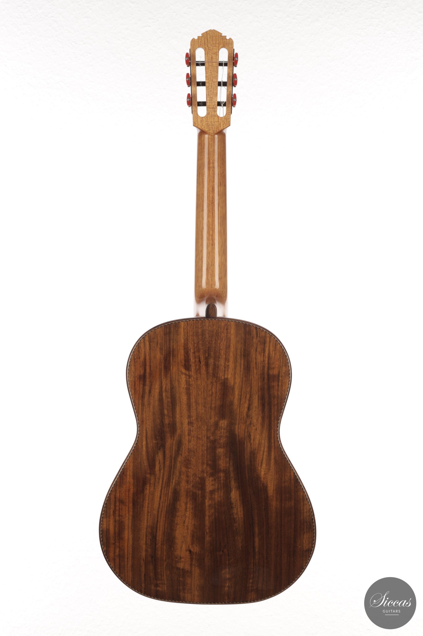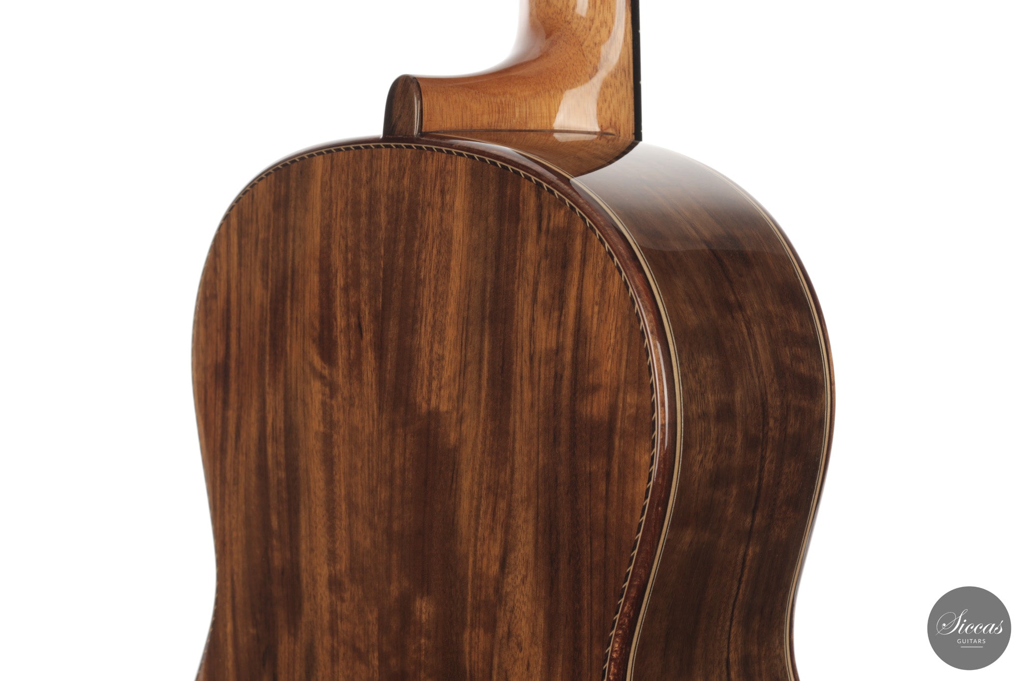 Auch die visuelle Gestaltung folgt einem durchdachten Konzept. Die indische Palisanderbrücke, die Bindings und die Rosette sind farblich und formal aufeinander abgestimmt und verleihen dem Instrument ein geschlossenes Erscheinungsbild. Die Bindings aus Epoxidharz werden direkt auf den Korpus gegossen und tragen zu einer eigenständigen ästhetischen Identität bei, während die ergonomische Armauflage den Spielkomfort erhöht. Von Hand gefertigte Pagos-Mechaniken vervollständigen ein Instrument, dessen Gestaltung funktional geprägt ist, ohne auf gestalterische Sorgfalt zu verzichten.