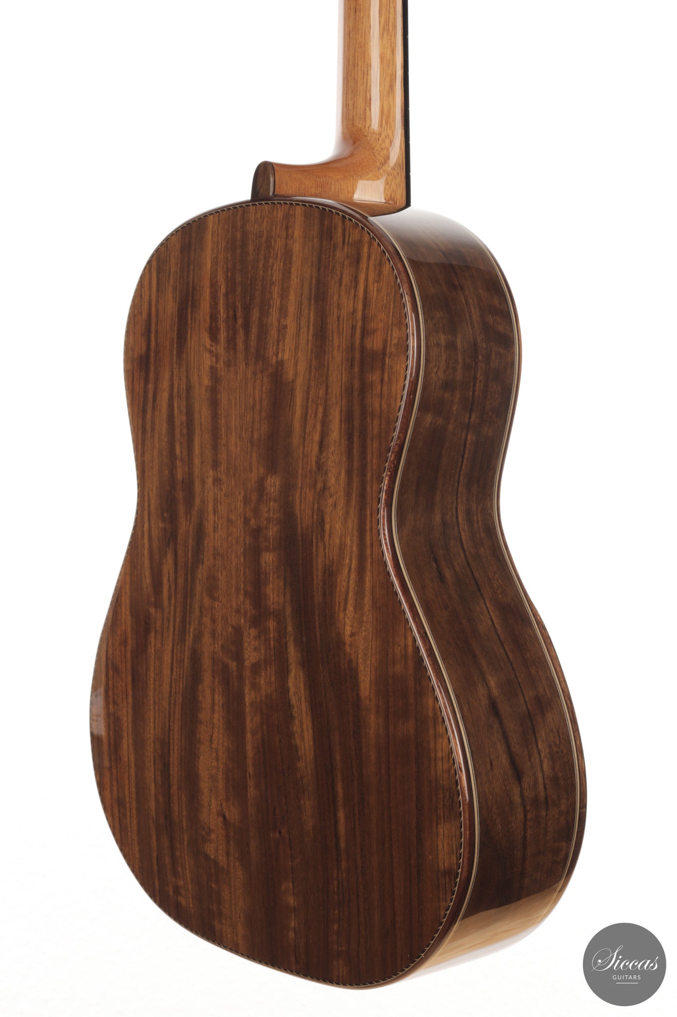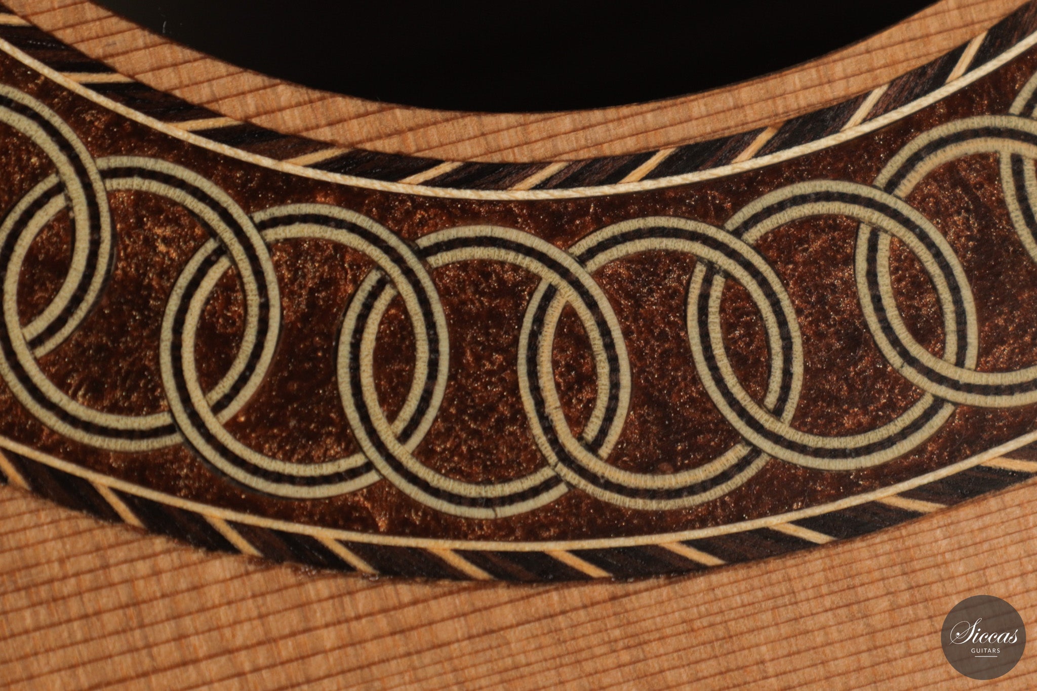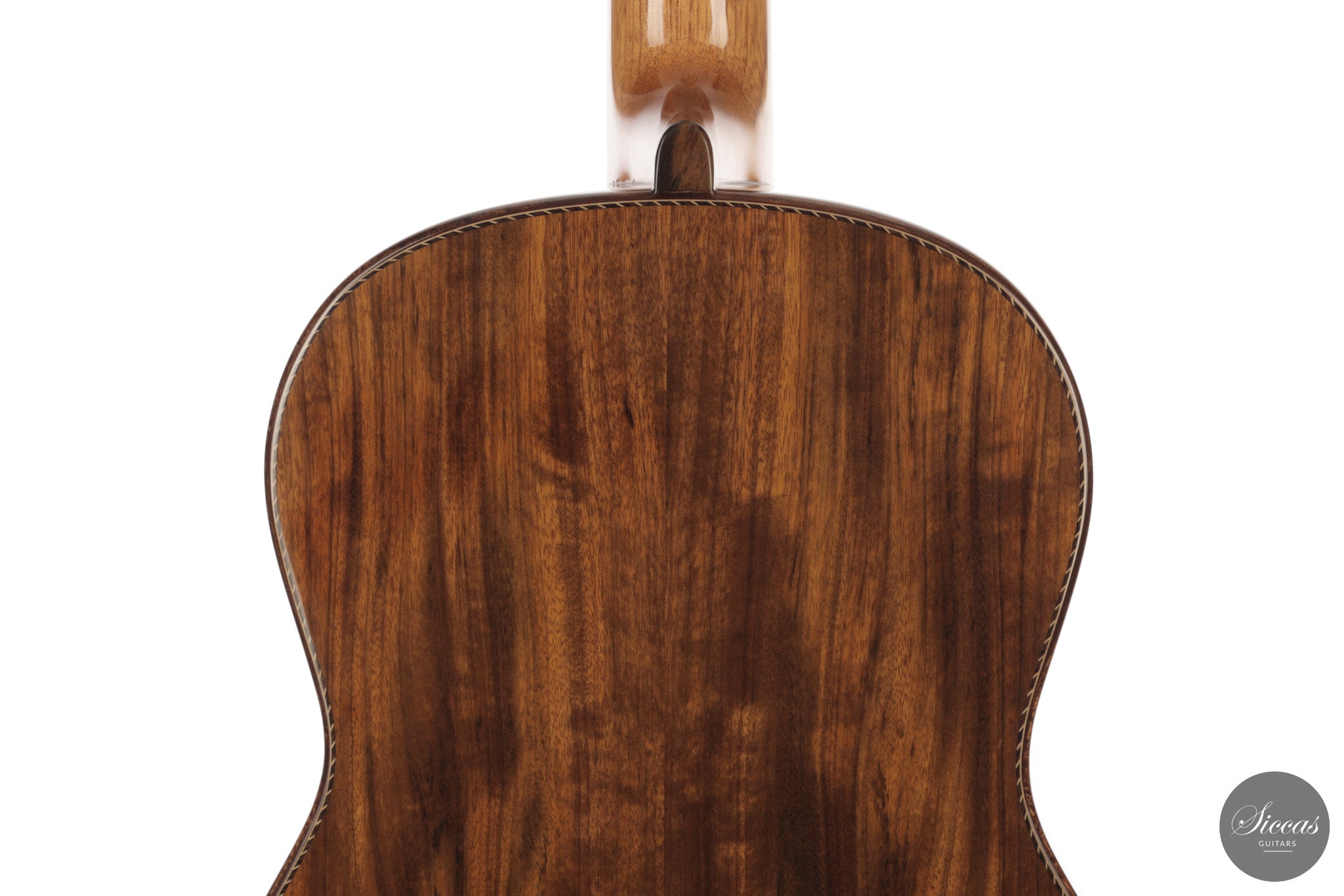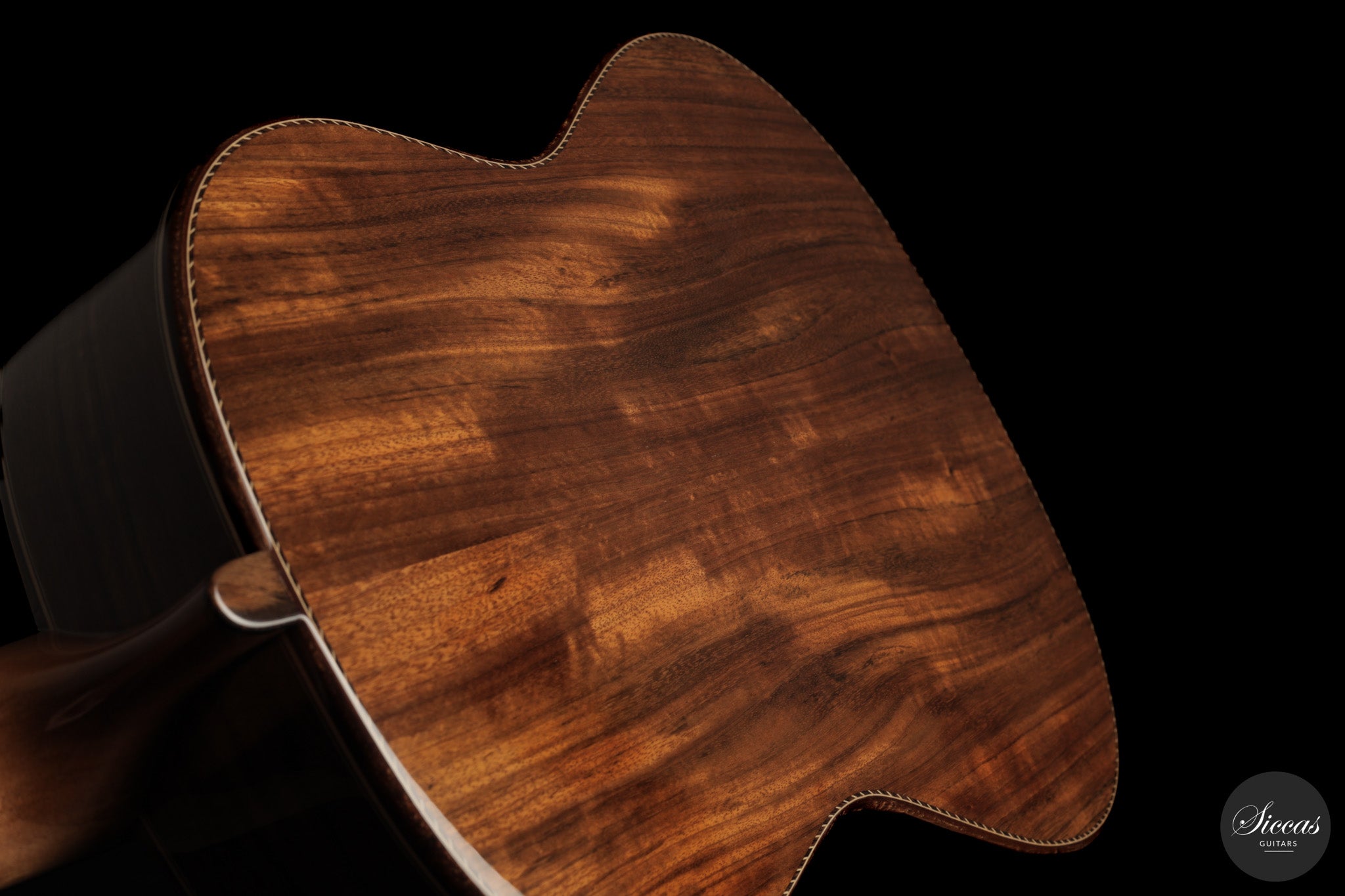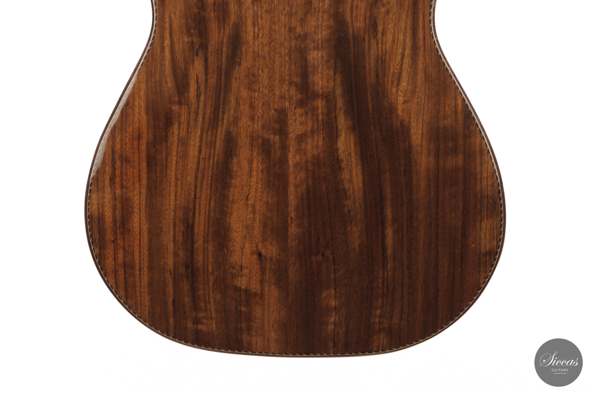 Auch die visuelle Gestaltung folgt einem durchdachten Konzept. Die indische Palisanderbrücke, die Bindings und die Rosette sind farblich und formal aufeinander abgestimmt und verleihen dem Instrument ein geschlossenes Erscheinungsbild. Die Bindings aus Epoxidharz werden direkt auf den Korpus gegossen und tragen zu einer eigenständigen ästhetischen Identität bei, während die ergonomische Armauflage den Spielkomfort erhöht. Von Hand gefertigte Pagos-Mechaniken vervollständigen ein Instrument, dessen Gestaltung funktional geprägt ist, ohne auf gestalterische Sorgfalt zu verzichten.
