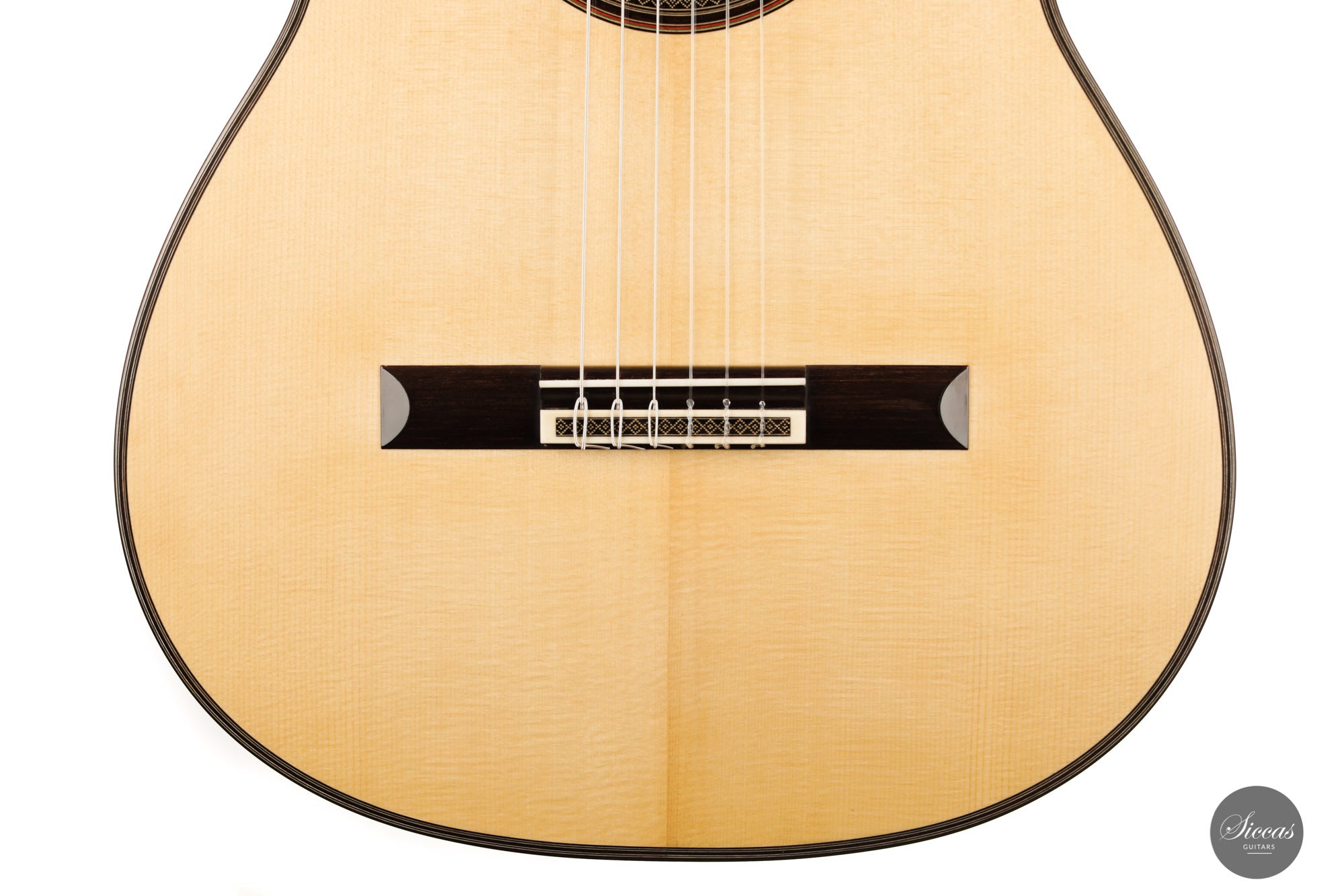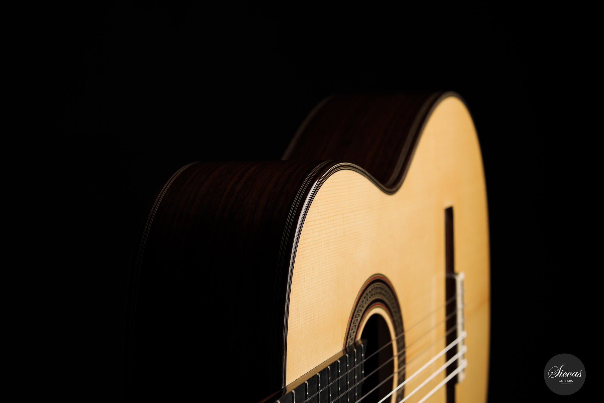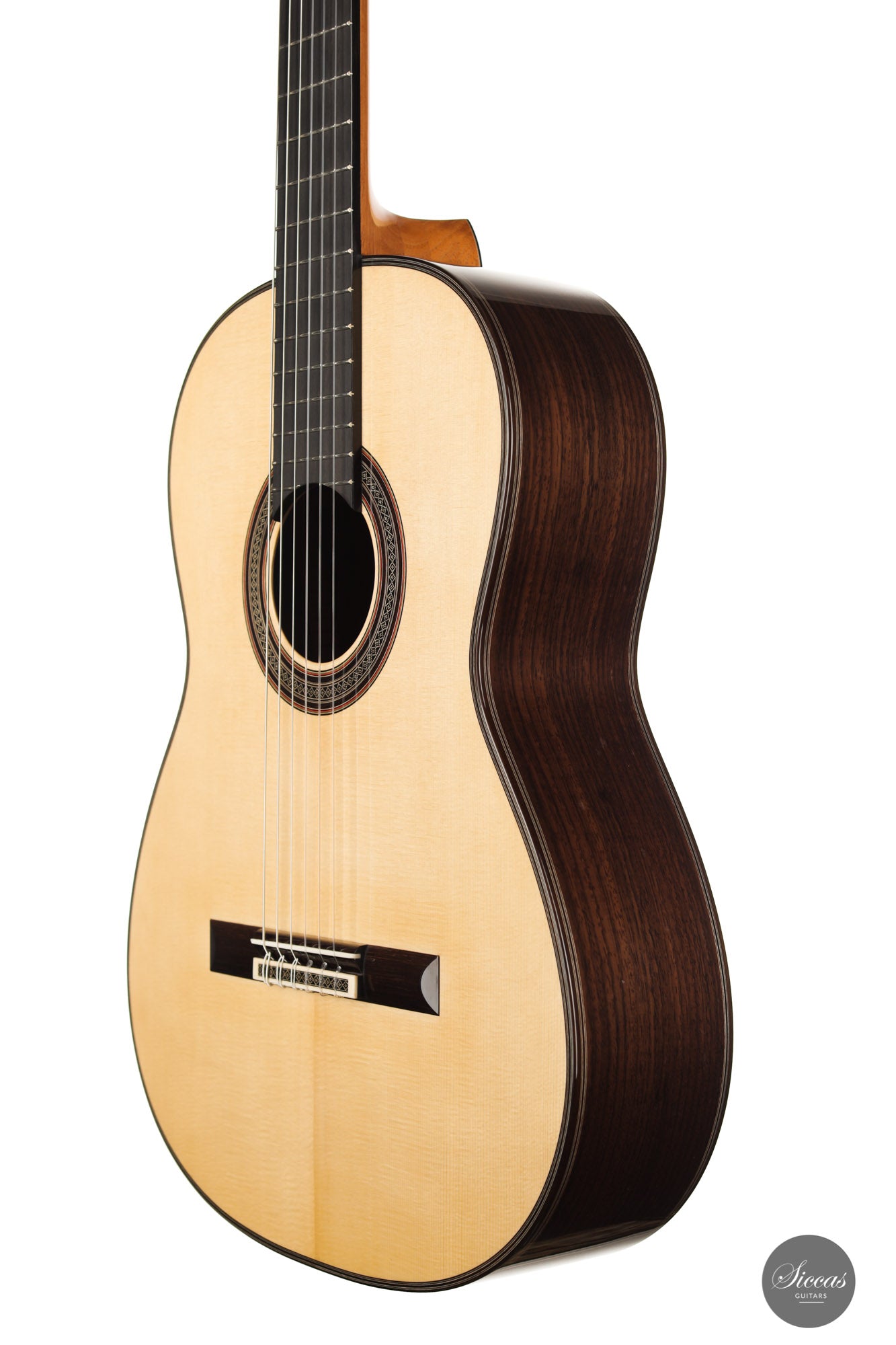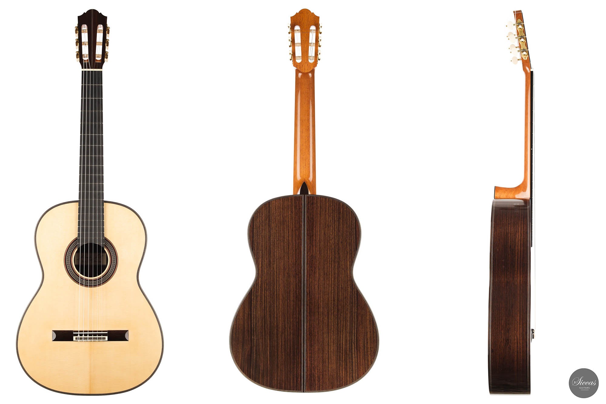 Playing on this concert guitar is truly inspiring. This instrument combines elegance and clarity, as well as long sustain and balanced expressiveness. In addition, a well-formed neck and an ergonomic overall shape offer great playing comfort. The sound is amazingly mature for a brand new guitar that offers a wide range of timbres as well as considerable dynamic possibilities.
