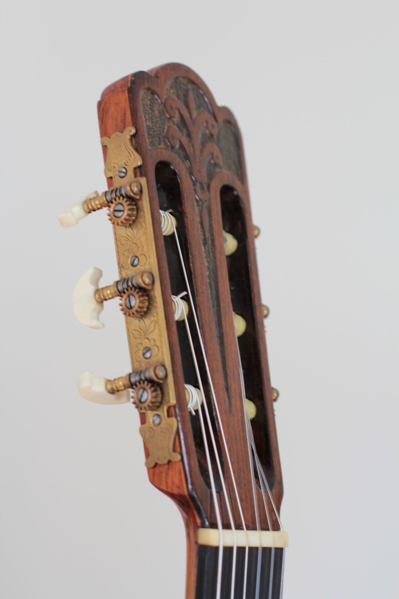 Gitarrenbauer: José Luis RomanillosBaujahr: 1979Decke: SpruceBoden und Zargen: Indian rosewoodDeckenoberfläche: French polishKorpusoberfläche: French polishLuftresonanz: G / G sharpGewicht (g): 1410Mechaniken: Klaus SchellerZustand: Excellent