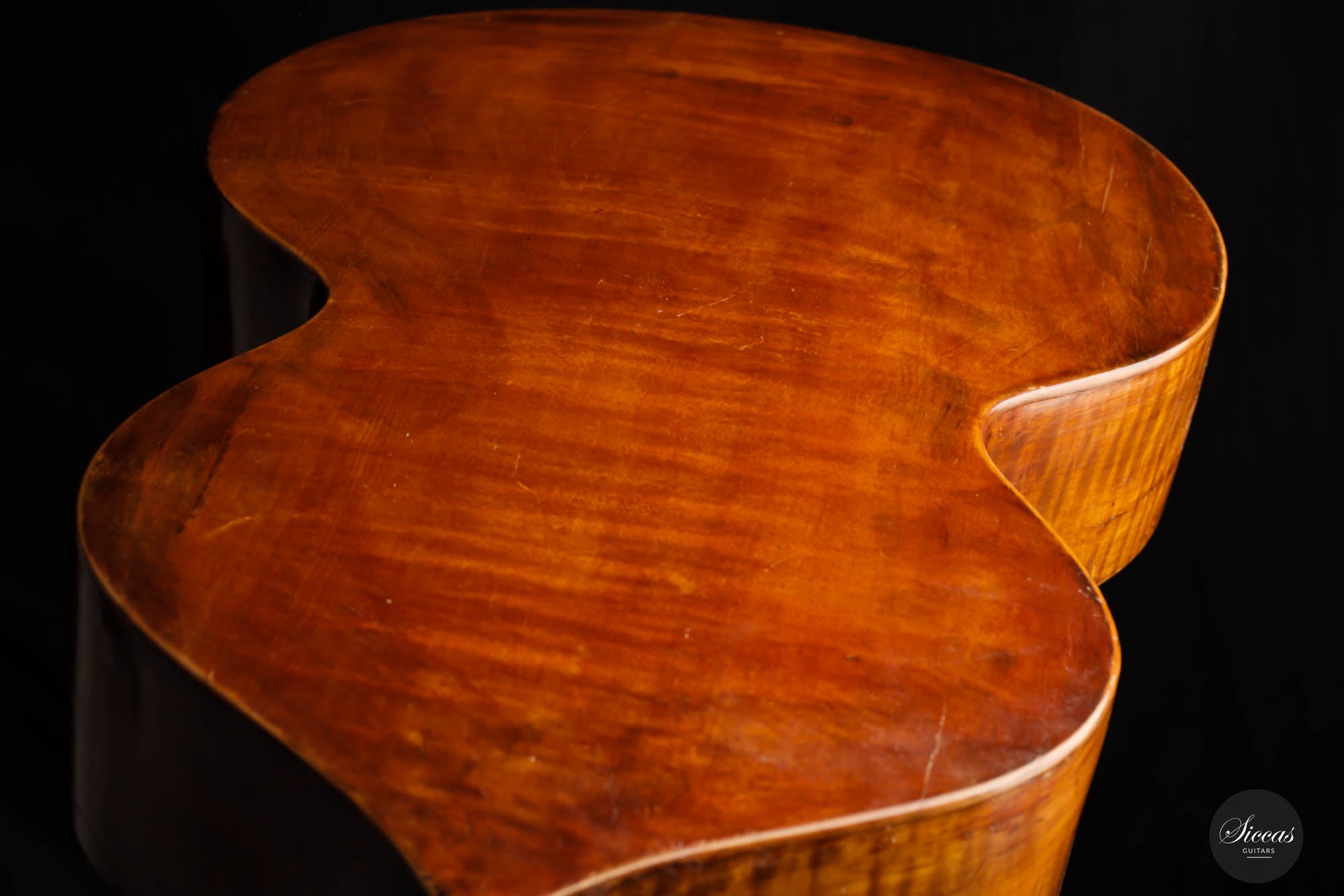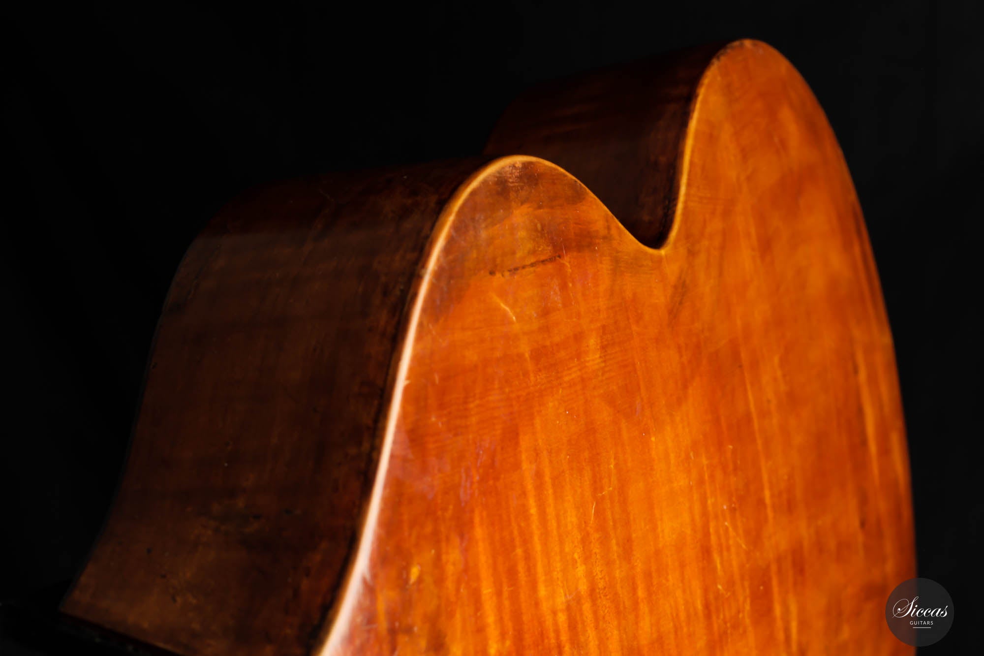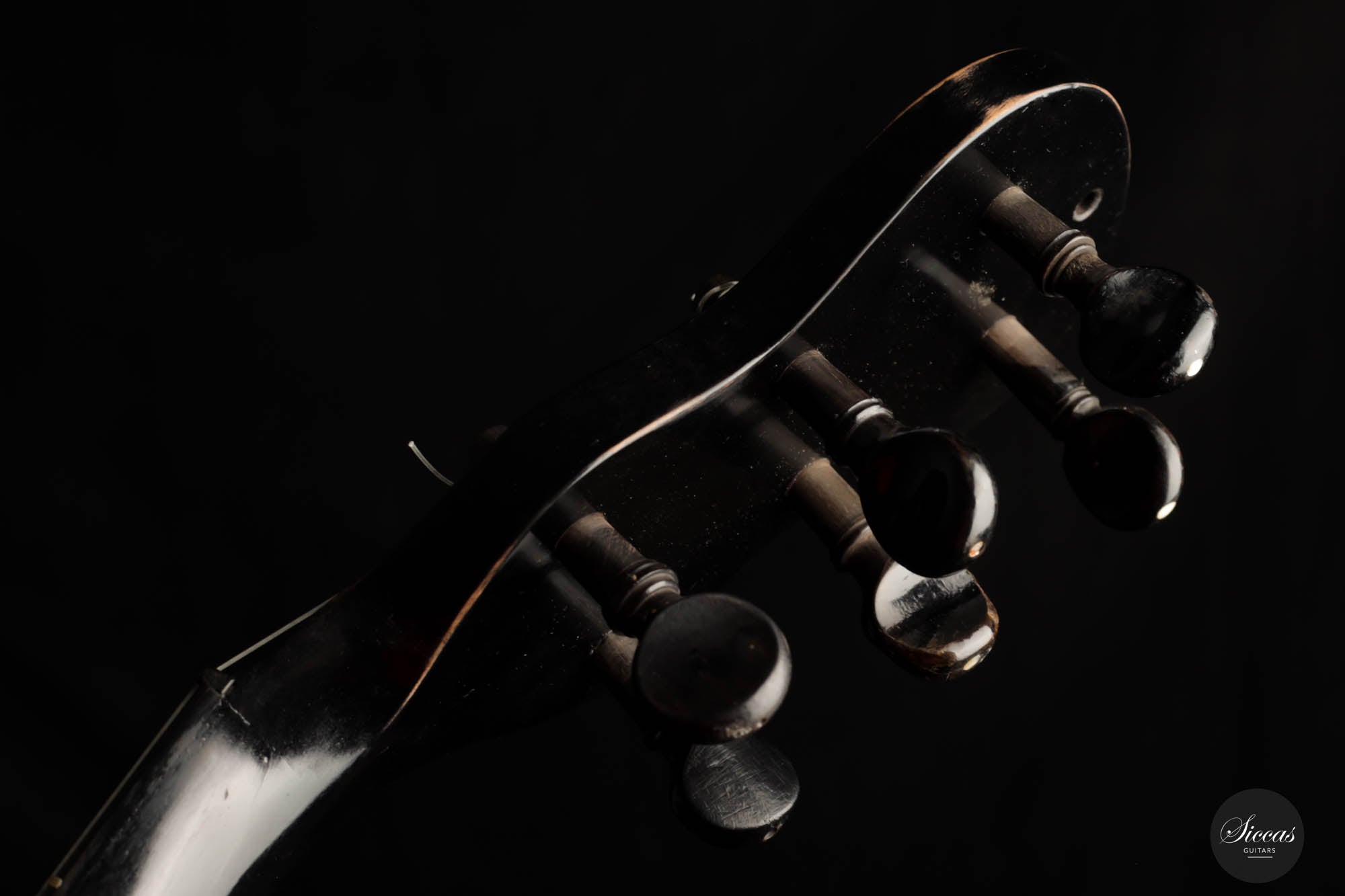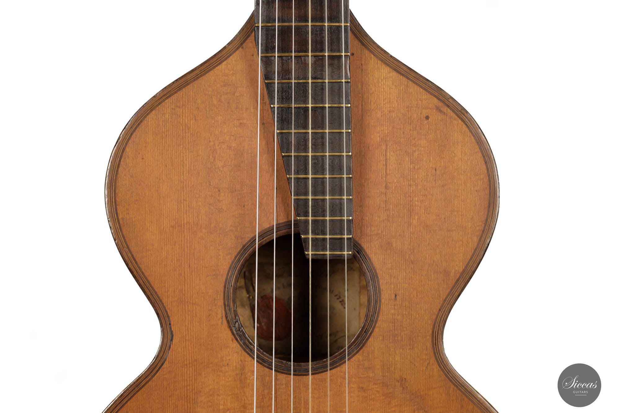 Diese hier vorgestellte Gitarre wurde 1829 mit der Seriennummer 1772 gebaut und trägt das Etikett der Anton Stauffer & Comp mit dem originalen roten Wachssiegel. Sie hat eine faszinierende Form durch ihrem verlängerten, Viola-da-Gamba-förmigen Boden und Zargen. Trotz ihrer fast 200 Jahre ist sie in einem fantastischen Spielzustand, der sowohl für die linke als auch für die rechte Hand mühelos ist. Sie wurde vor einigen Jahren von dem Gitarrenbauer Bernhard Kresse restauriert, der ein Experte auf diesem Gebiet ist. Einige Risse wurden fachmännisch ausgebessert, der Steg wurde durch ein Faksimile ersetzt, und der Mechanismus zur Halsverstellung wurde ausgetauscht (das Original wurde aufgehoben und wird mit der Gitarre geliefert). Diese fast zweihundert Jahre alte Gitarre ist eine Augen- und Ohrenweide. Sie ist nicht nur ein berührendes Stück Geschichte, ein Kunstwerk, sondern ihr Klang hat eine einzigartige Persönlichkeit, die man nur bei solchen historischen Originalstücken findet.