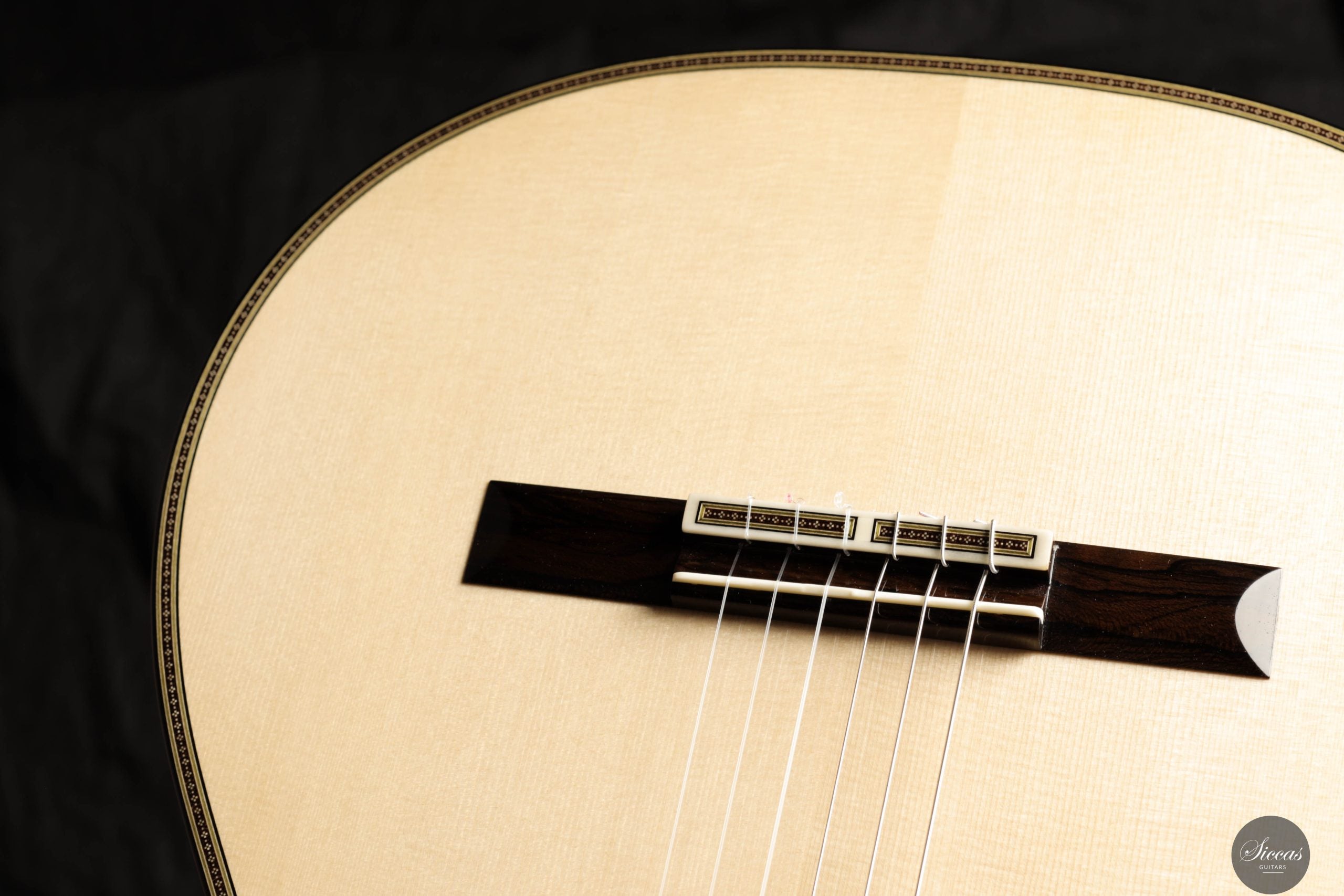 Als Limited Edition hat Antonio besonderes Augenmerk auf die dekorativen Details gelegt. Die Rosette, die Einlagen der Deckenränder, der Kopfplattenstreifen sowie die Verzierung des Stegs sind mit kunstvollen Mosaikintarsien versehen, die seine Hingabe an Handwerkskunst und ästhetische Perfektion eindrucksvoll demonstrieren.