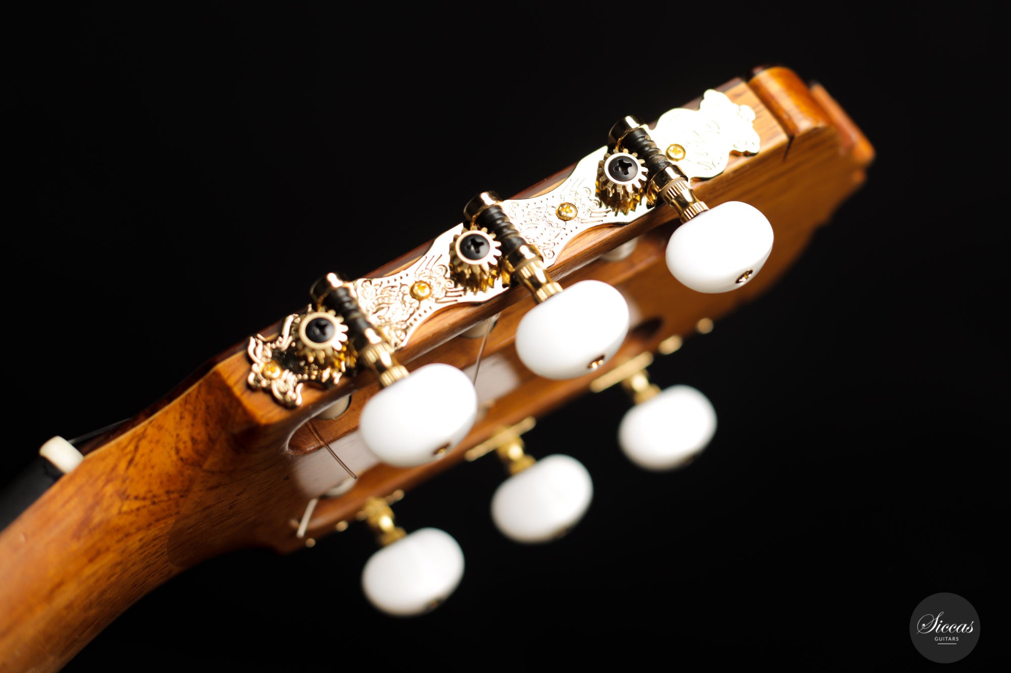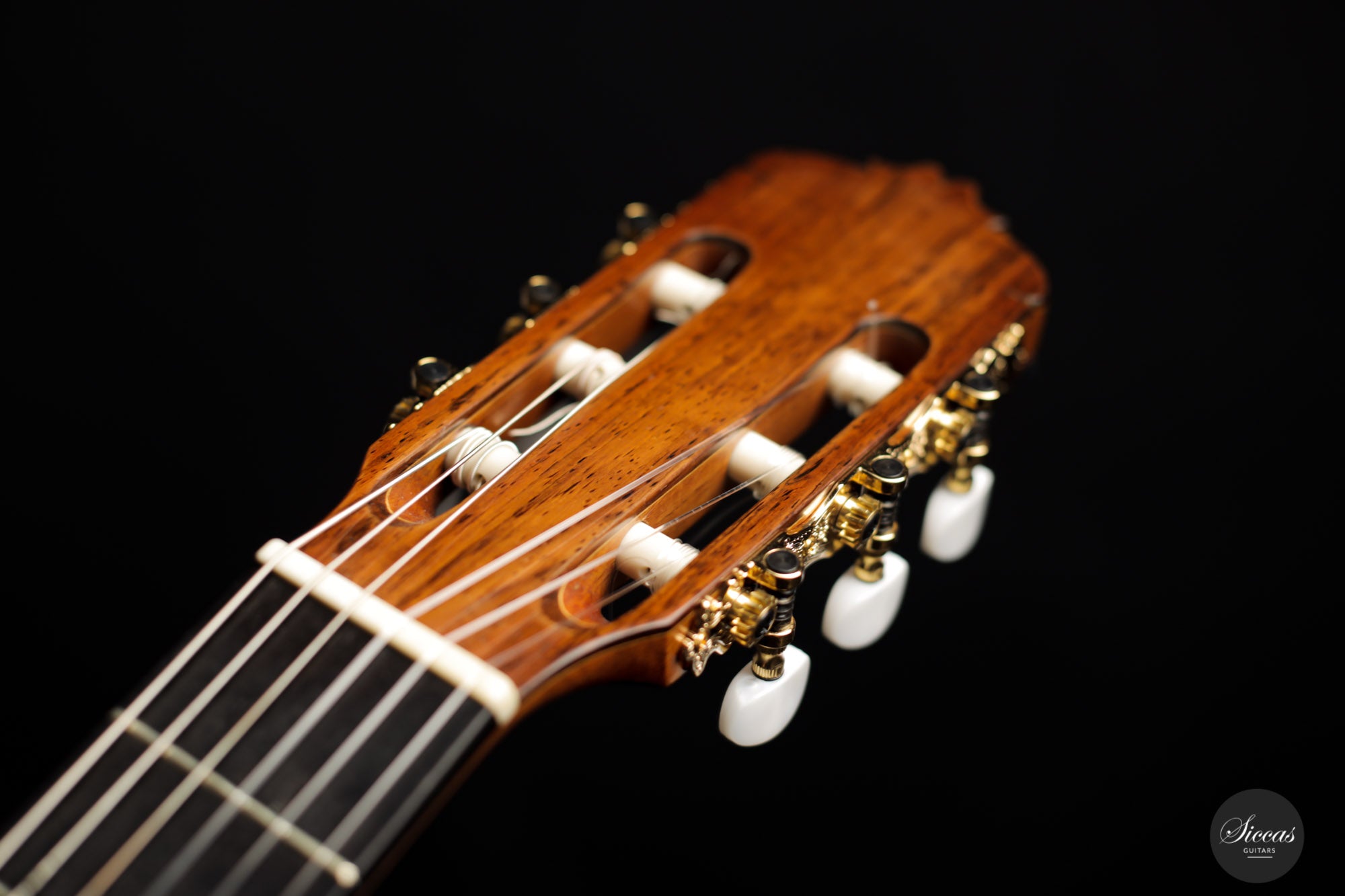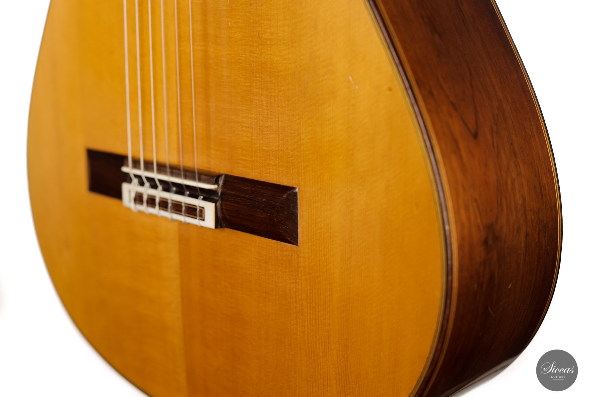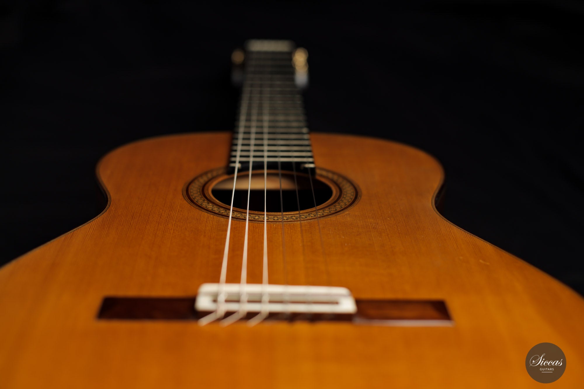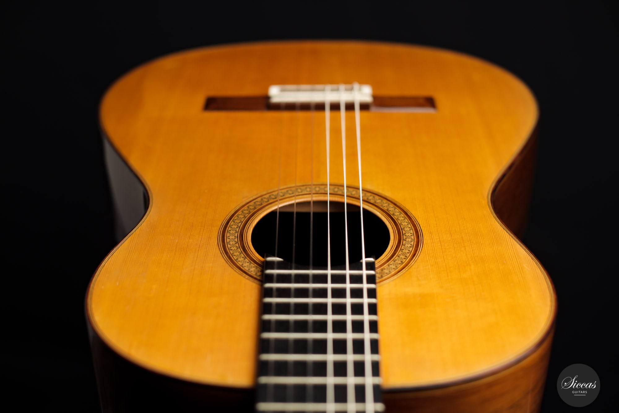 Antonio Marín Montero was born in Granada in 1933. In 1957, he joined master Pérez’s workshop, and two years later, in 1959, his father advised him to visit Eduardo Ferrer for whom he worked until opening his own workshop. A milestone in Antonio Marin Montero’s career was his meeting with the French luthier Robert Bouchet in the 1970s. The two artists became friends and built several guitars together. The confrontation between Marin Montero’s Spanish building system and Robert Bouchet’s very particular bracing construction was a great source of inspiration for Antonio Marin Montero, and he continued to build a model with the ”Robert Bouchet” bracing throughout his career. Today, Antonio Marin Montero is one of the most sought-after Spanish guitar makers.