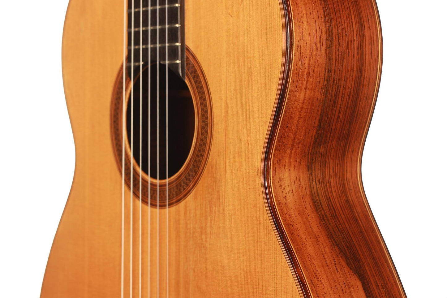 Die klassische Gitarre mit ihren weichen Nylonsaiten und ihrem charakteristischen Timbre ist zum Symbol der Kammermusik, der spanischen Tradition und des Konzertrepertoires geworden. Ihre moderne Form prägte Antonio de Torres im 19. Jahrhundert, indem er den Standard für Korpus, Fächerbeleistung und die 65-Zentimeter-Mensur setzte, die bis heute verwendet werden. Instrumente dieser Kategorie eröffnen eine reiche Palette von den feinen romantischen Miniaturen Tárregas bis zu den majestätischen Konzerten Rodrigos. Hier finden Sie Gitarren, die historische Kontinuität bewahren und zugleich zu neuen Interpretationen anregen.