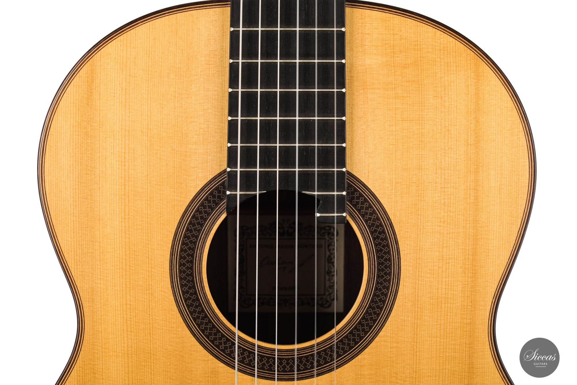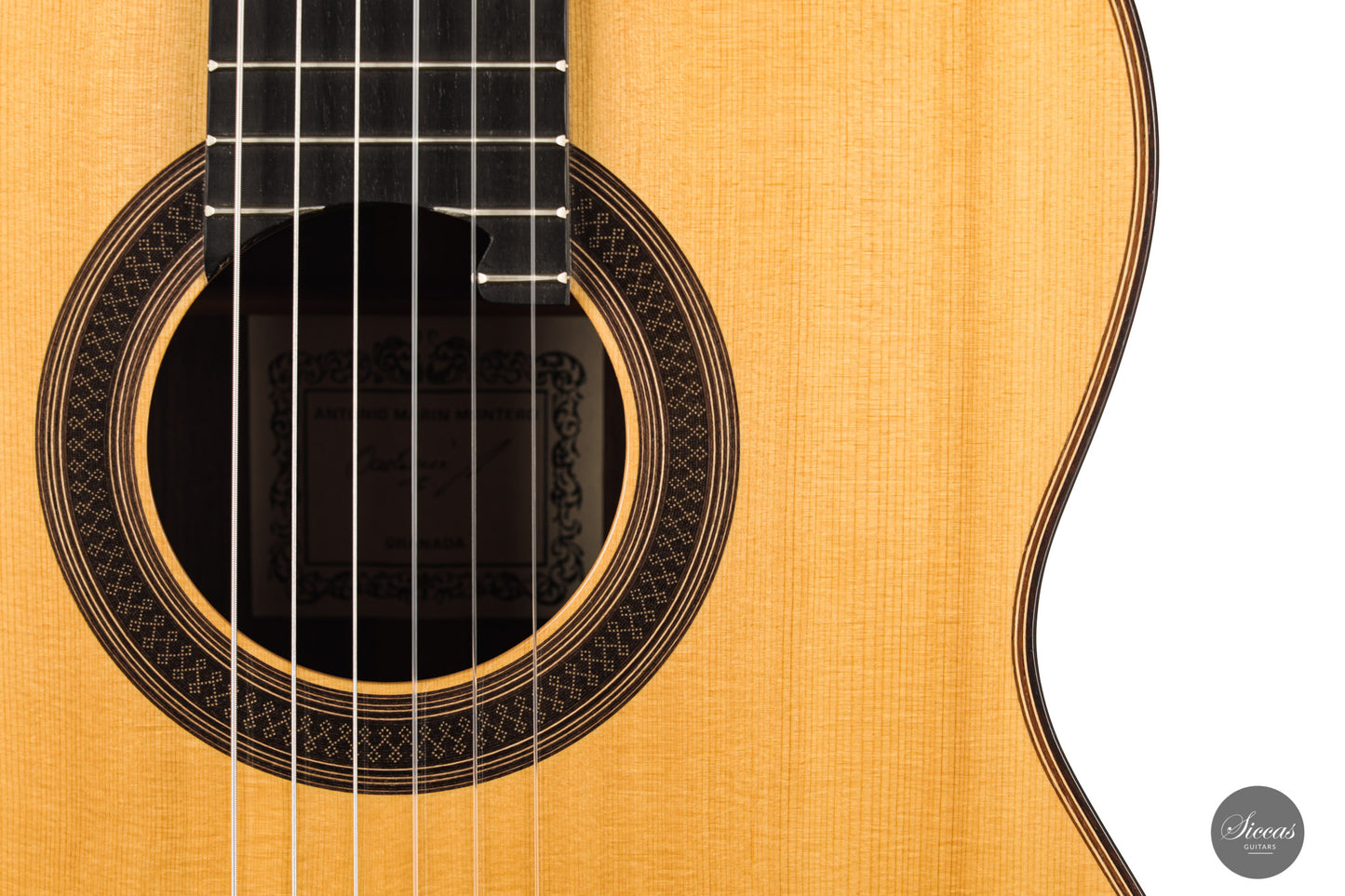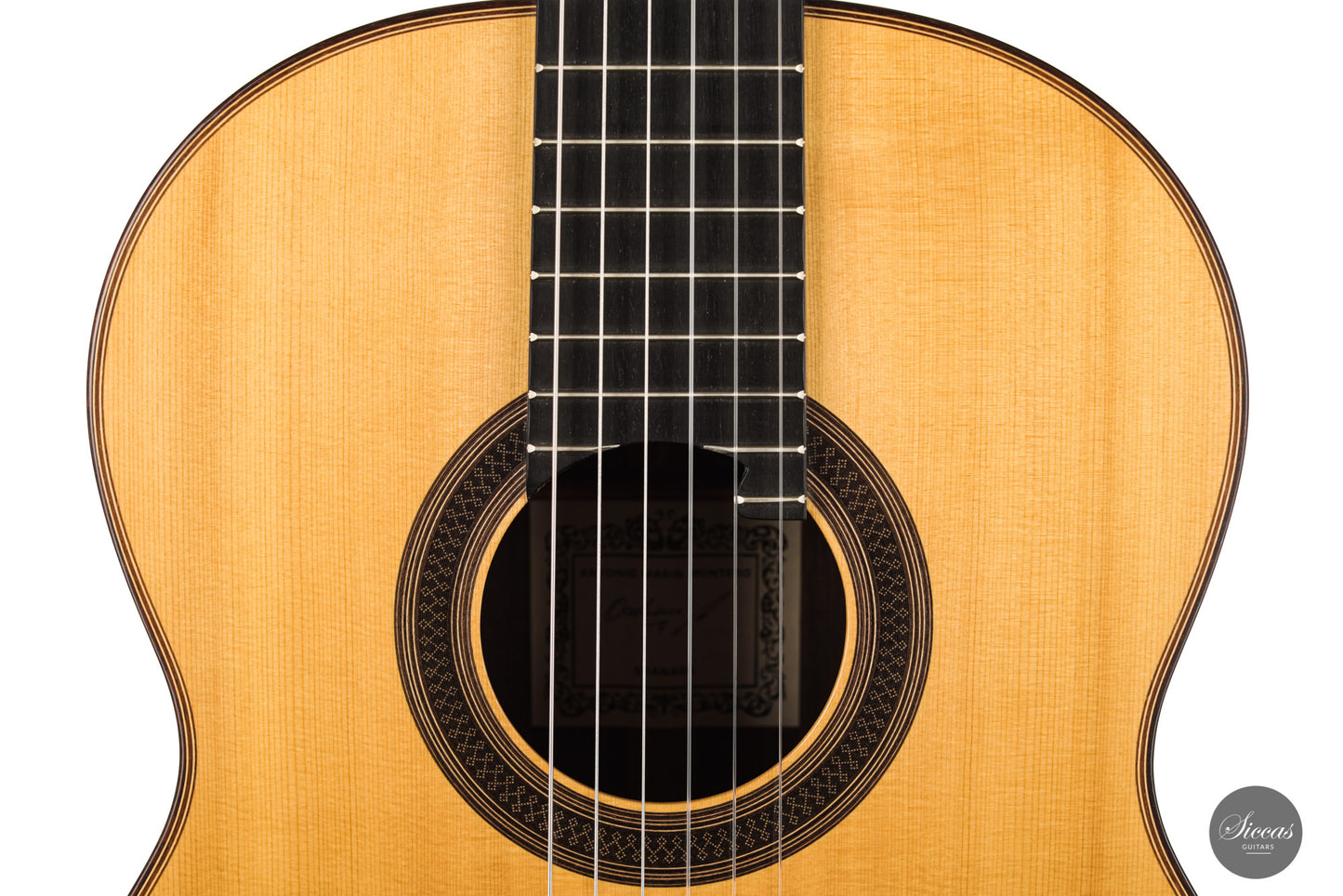 Antonio Marín Montero was born in Granada in 1933. In 1957, he joined master Pérez’s workshop and two years later, in 1959, his father advised him to visit Eduardo Ferrer for whom he worked until opening his own workshop. A milestone in Antonio Marin Montero’s career was his meeting with the French luthier Robert Bouchet in the 1970s. The two artists became friends and built several guitars together. The confrontation between Marin Montero’s Spanish building system and Robert Bouchet’s very particular bracing construction was a great source of inspiration for Antonio Marin Montero, and he continued to build a model with the ” Robert Bouchet ” bracing throughout his career. Today Antonio Marin Montero is one of the most sought-after Spanish guitar makers.