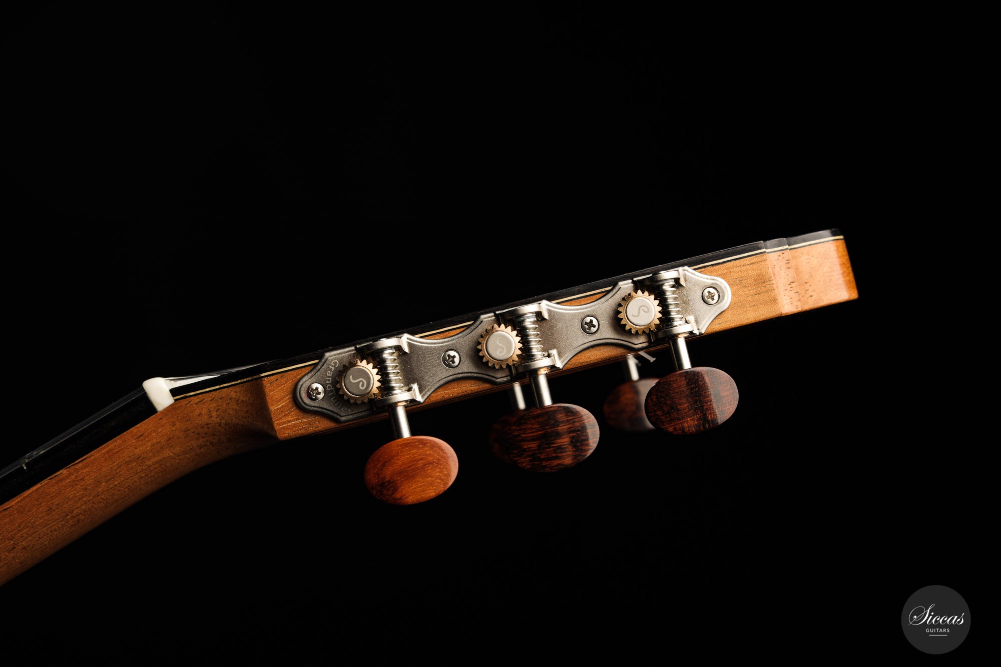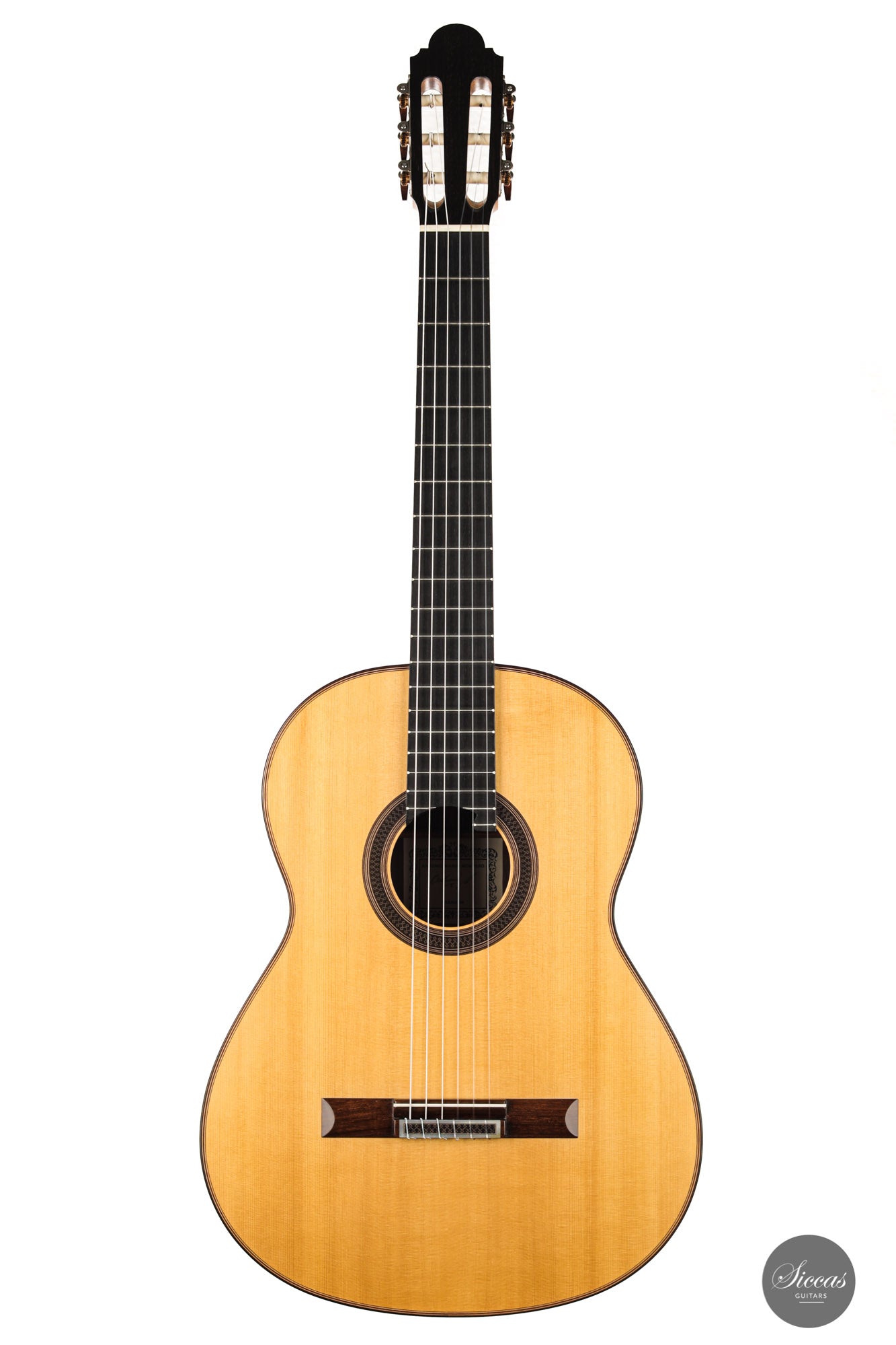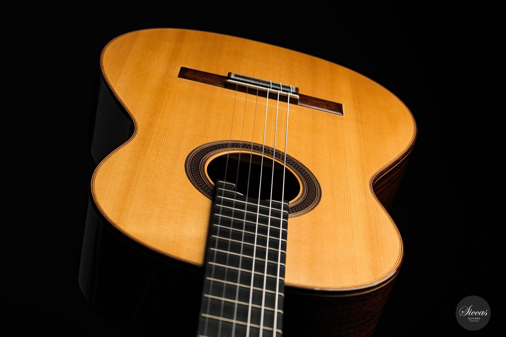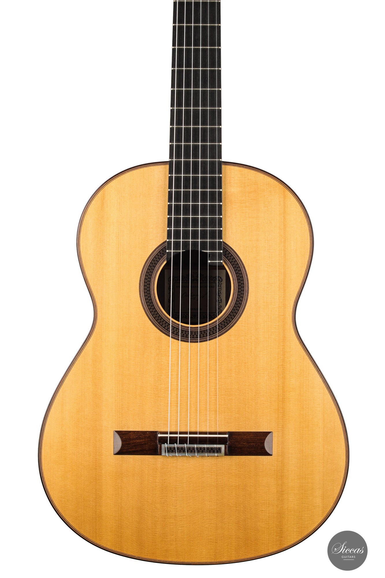 Antonio Marín Montero was born in Granada in 1933. In 1957, he joined master Pérez’s workshop and two years later, in 1959, his father advised him to visit Eduardo Ferrer for whom he worked until opening his own workshop. A milestone in Antonio Marin Montero’s career was his meeting with the French luthier Robert Bouchet in the 1970s. The two artists became friends and built several guitars together. The confrontation between Marin Montero’s Spanish building system and Robert Bouchet’s very particular bracing construction was a great source of inspiration for Antonio Marin Montero, and he continued to build a model with the ” Robert Bouchet ” bracing throughout his career. Today Antonio Marin Montero is one of the most sought-after Spanish guitar makers.