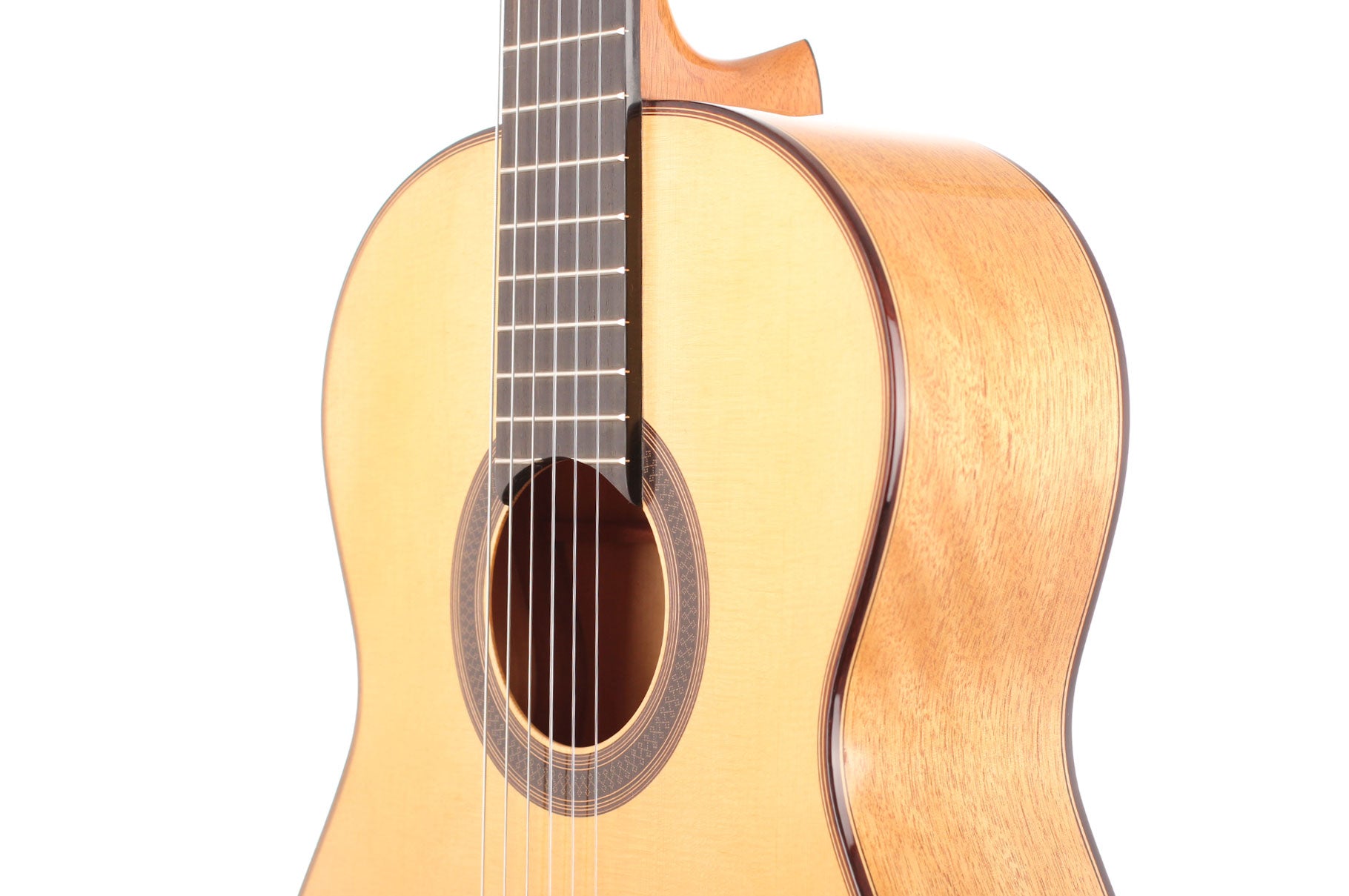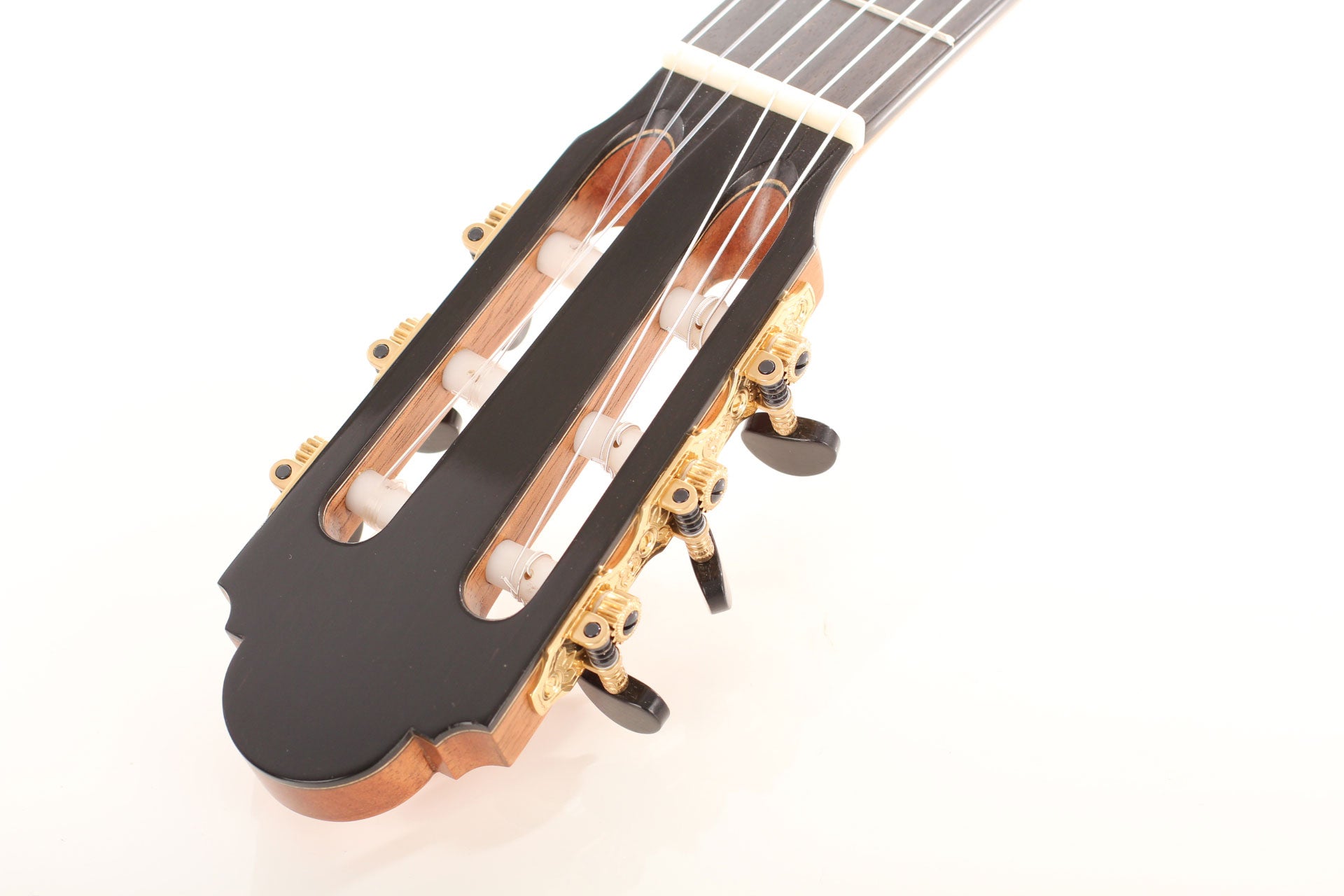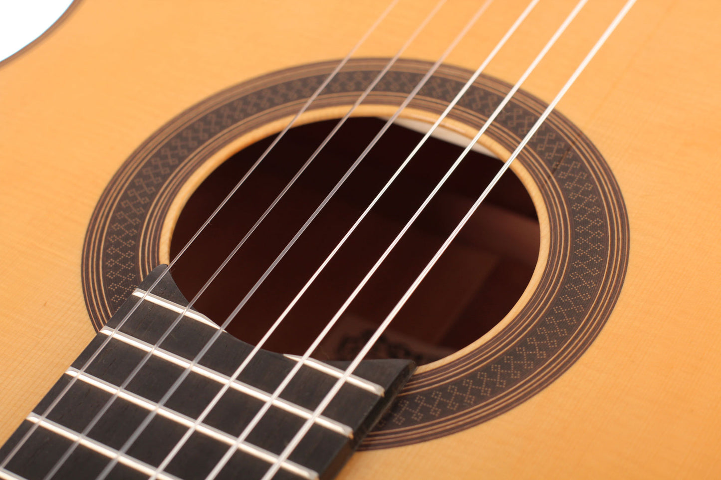 Die klassische Gitarre mit ihren weichen Nylonsaiten und ihrem charakteristischen Timbre ist zum Symbol der Kammermusik, der spanischen Tradition und des Konzertrepertoires geworden. Ihre moderne Form prägte Antonio de Torres im 19. Jahrhundert, indem er den Standard für Korpus, Fächerbeleistung und die 65-Zentimeter-Mensur setzte, die bis heute verwendet werden. Instrumente dieser Kategorie eröffnen eine reiche Palette von den feinen romantischen Miniaturen Tárregas bis zu den majestätischen Konzerten Rodrigos. Hier finden Sie Gitarren, die historische Kontinuität bewahren und zugleich zu neuen Interpretationen anregen.Alle Produkte der Kollektion ansehen -