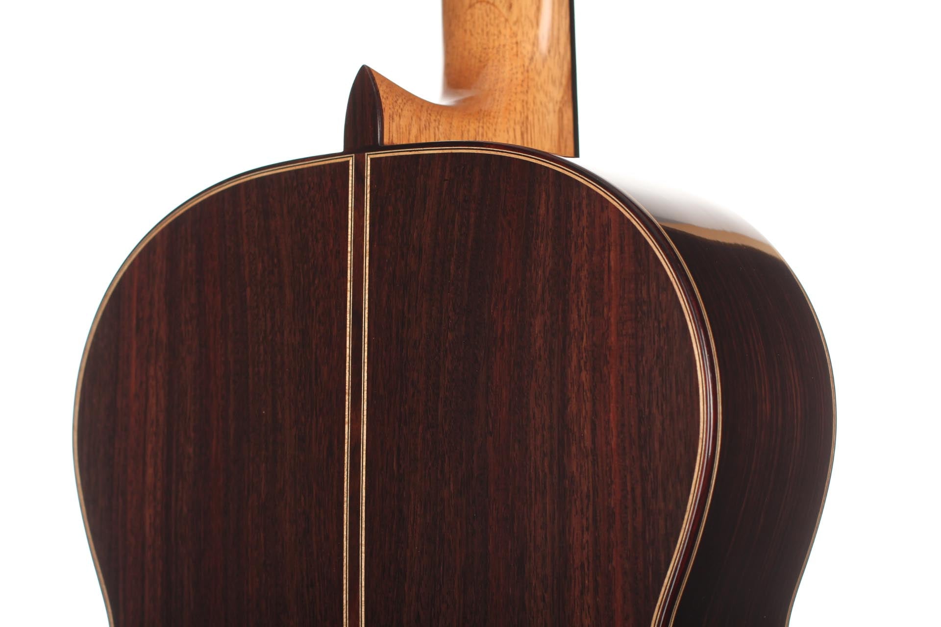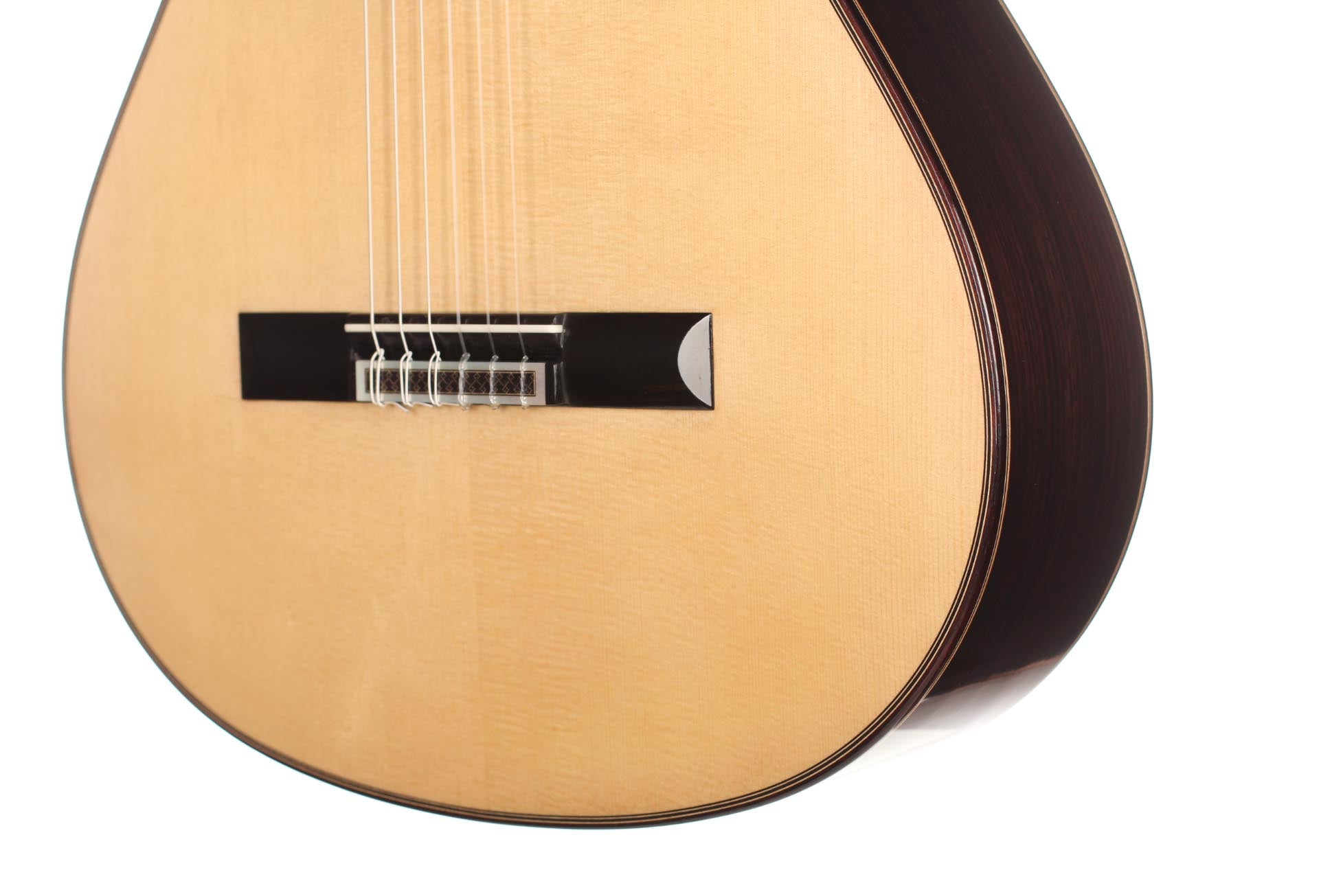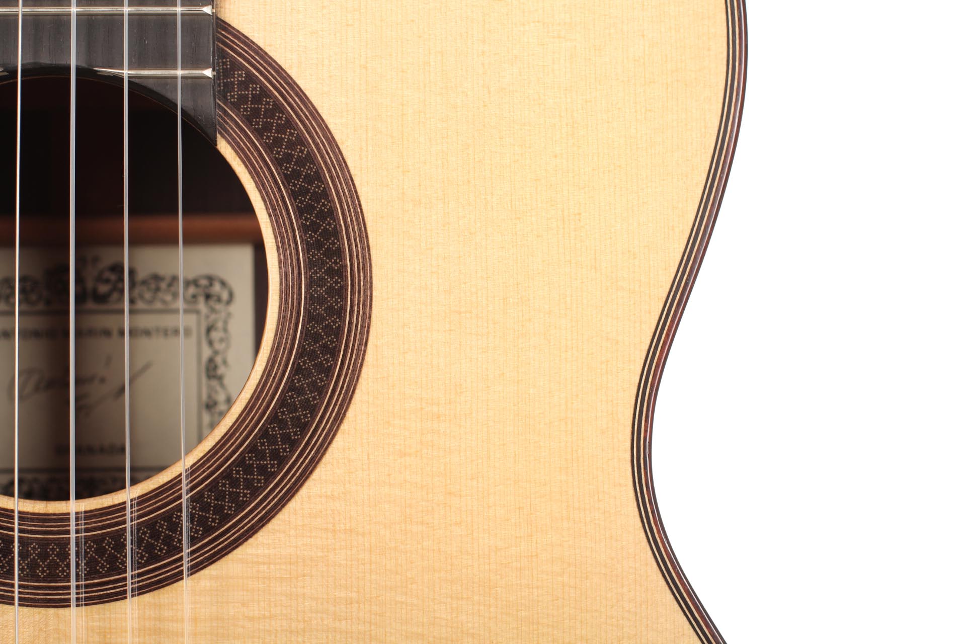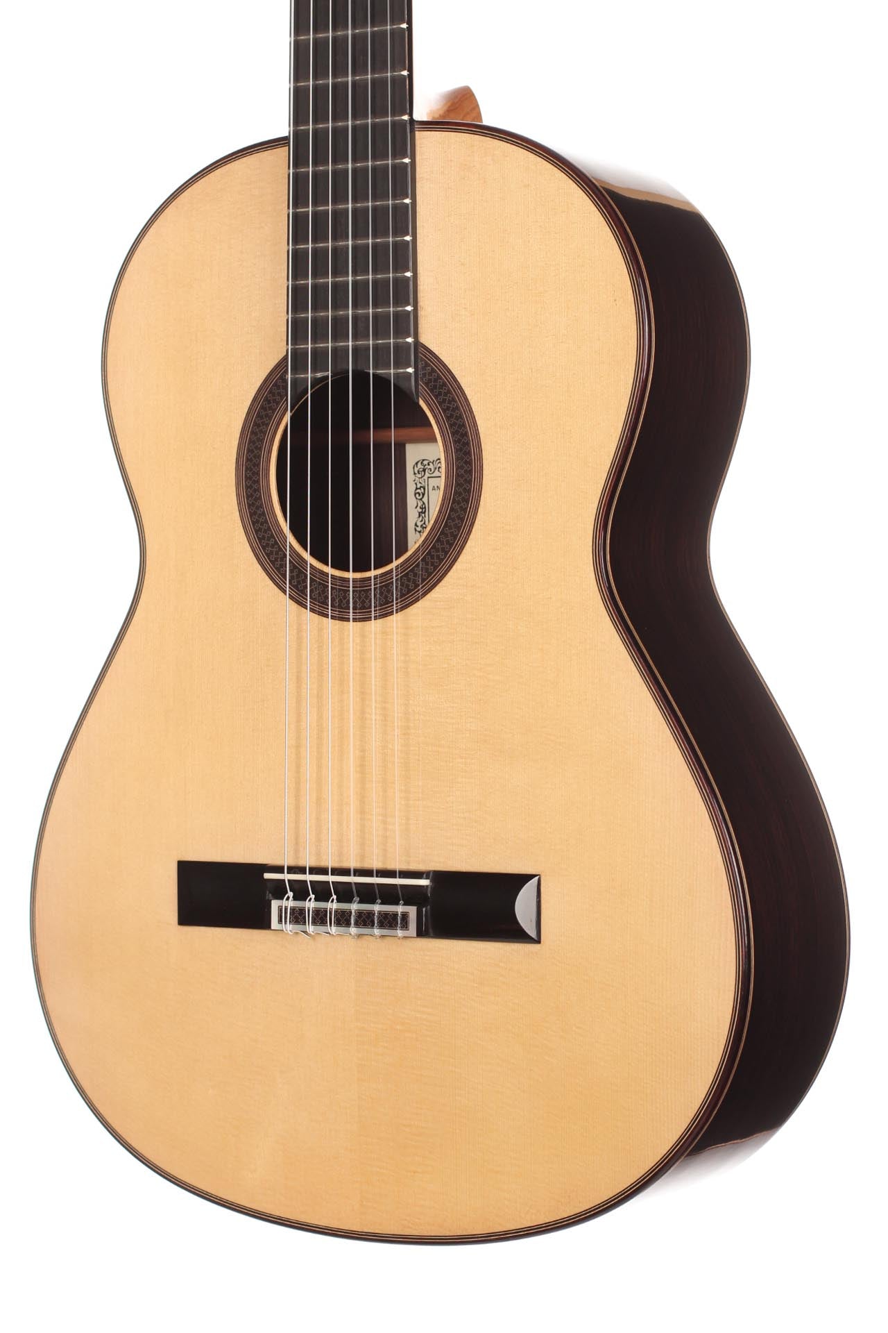 Antonio Marín Montero wurde 1933 in Granada geboren und war der ersten Gitarrenbauer in seiner Familie. Im Jahr 1957 begann er in der Werkstatt des Gitarrenbauers Pérez zu arbeiten. Wiederum zwei Jahre danach begann er eine Ausbildung bei Eduardo Ferrer bis schließlich seine eigene Werkstatt eröffnete. Diese neue Gitarre wurde zwischen den Jahren 2017 und 2018 fertiggestellt. Die Fichtendecke hat eine sehr gleichmäßige Maserung. Boden und Zargen sind aus indischem Palisander gefertigt worden. Klanglich ist dieses Instrument sehr offen und kräftig, die Klarheit ist bestechend mit sehr viel Tiefe, Ausgeglichenheit und Fülle. Veredelt wurde die Gitarre mit einer Schellackpolitur. Die Mechaniken sind von Rubner. Ein Hartschalenkoffer ist inklusive.