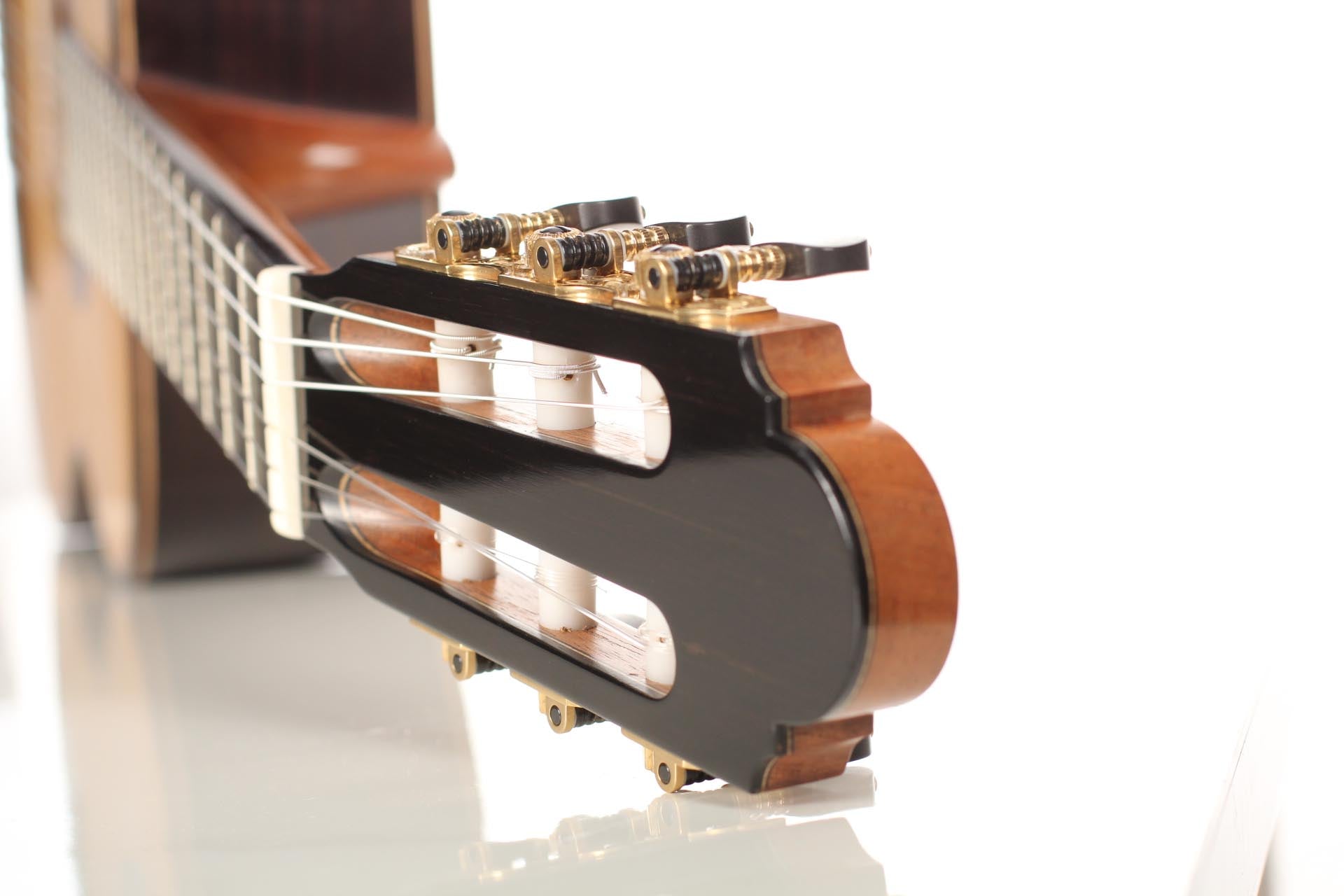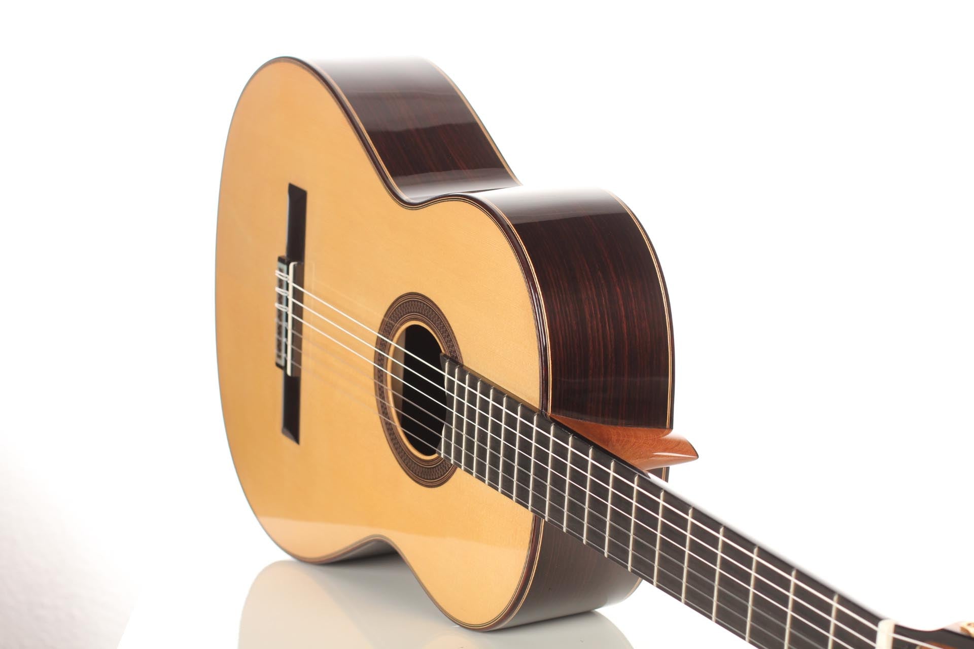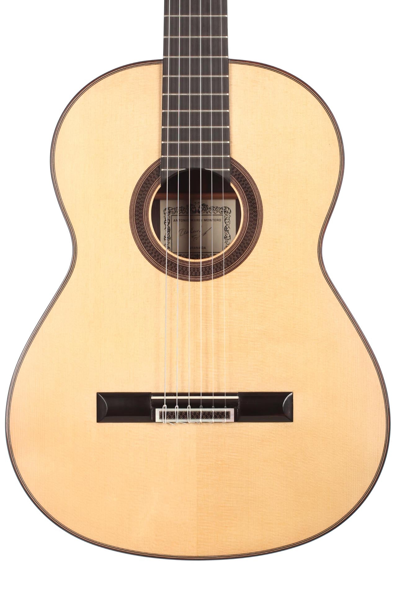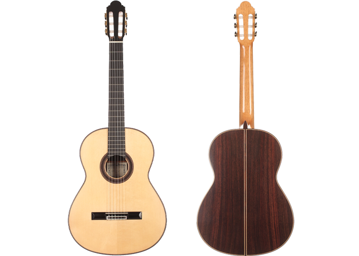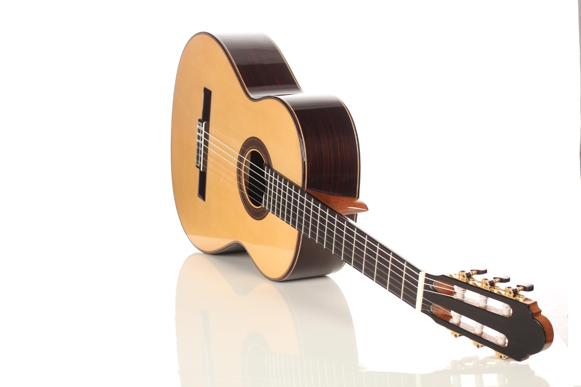 Antonio Marín Montero wurde 1933 in Granada geboren und war der ersten Gitarrenbauer in seiner Familie. Im Jahr 1957 begann er in der Werkstatt des Gitarrenbauers Pérez zu arbeiten. Wiederum zwei Jahre danach begann er eine Ausbildung bei Eduardo Ferrer bis schließlich seine eigene Werkstatt eröffnete. Diese neue Gitarre wurde zwischen den Jahren 2017 und 2018 fertiggestellt. Die Fichtendecke hat eine sehr gleichmäßige Maserung. Boden und Zargen sind aus indischem Palisander gefertigt worden. Klanglich ist dieses Instrument sehr offen und kräftig, die Klarheit ist bestechend mit sehr viel Tiefe, Ausgeglichenheit und Fülle. Veredelt wurde die Gitarre mit einer Schellackpolitur. Die Mechaniken sind von Rubner. Ein Hartschalenkoffer ist inklusive.