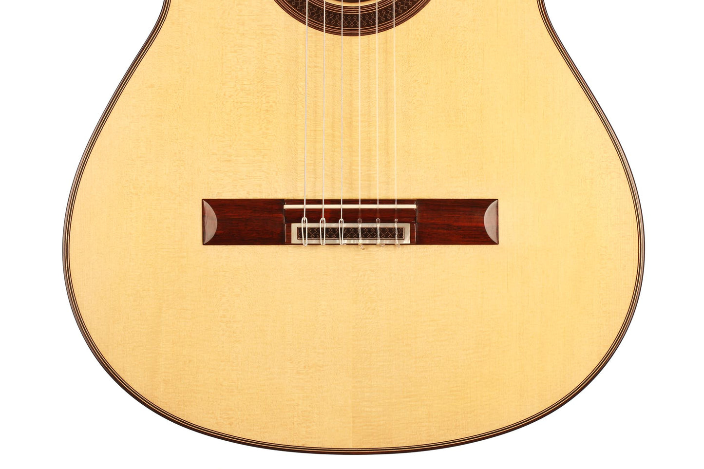 This splendid guitar built by Antonio Marin Montero between 2018 and 2019 is of great beauty. The sound of A. Marin Montero's guitars is well established, and this guitar has all the qualities of the best Montero guitars. It is a traditional guitar with a great volume and projection that has proven itself many times in the world's largest concert halls. It is a serious guitar with a lot of charm and infinite possibilities of timbre, colors and dynamics. This guitar is CITES free.