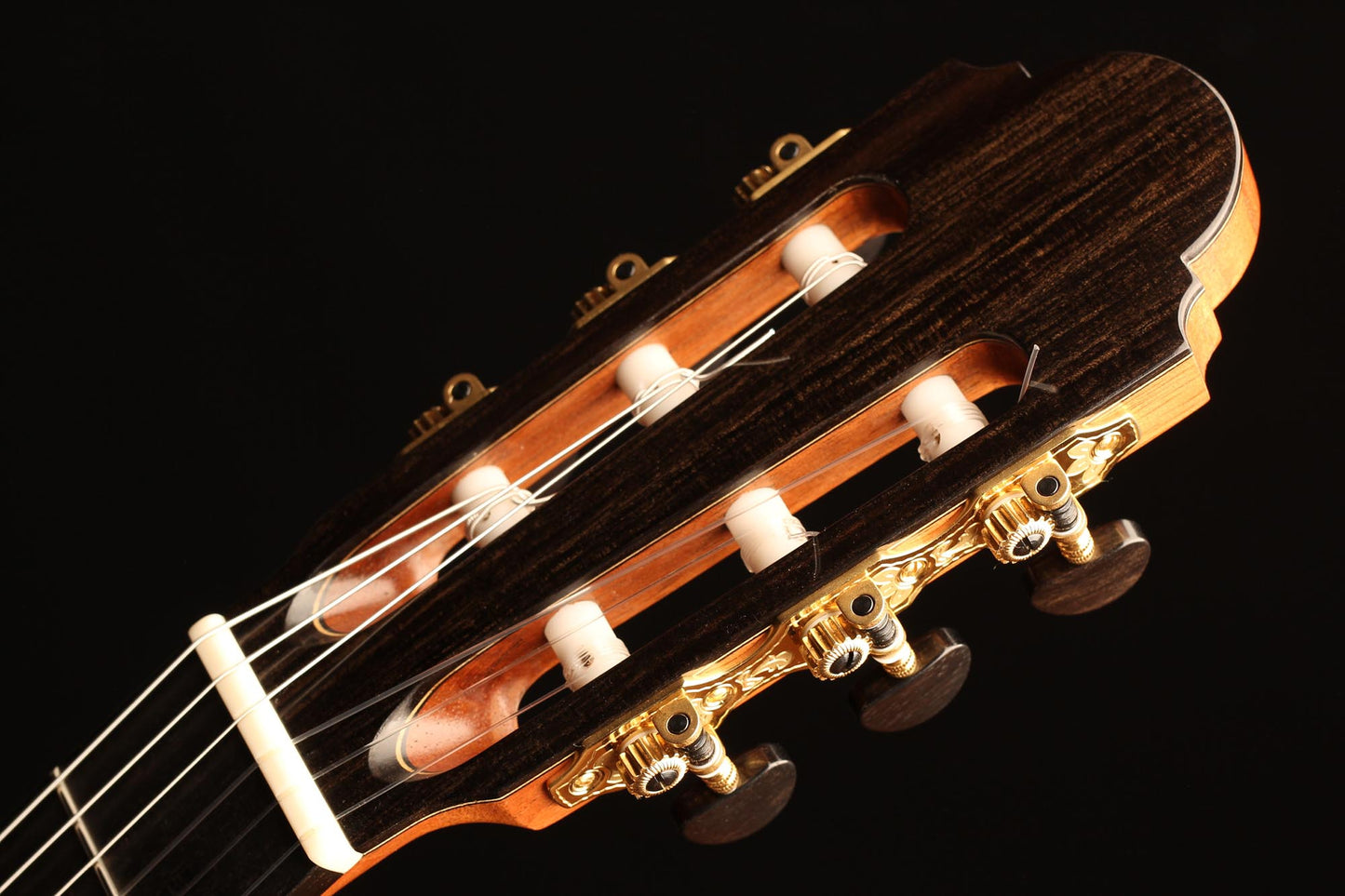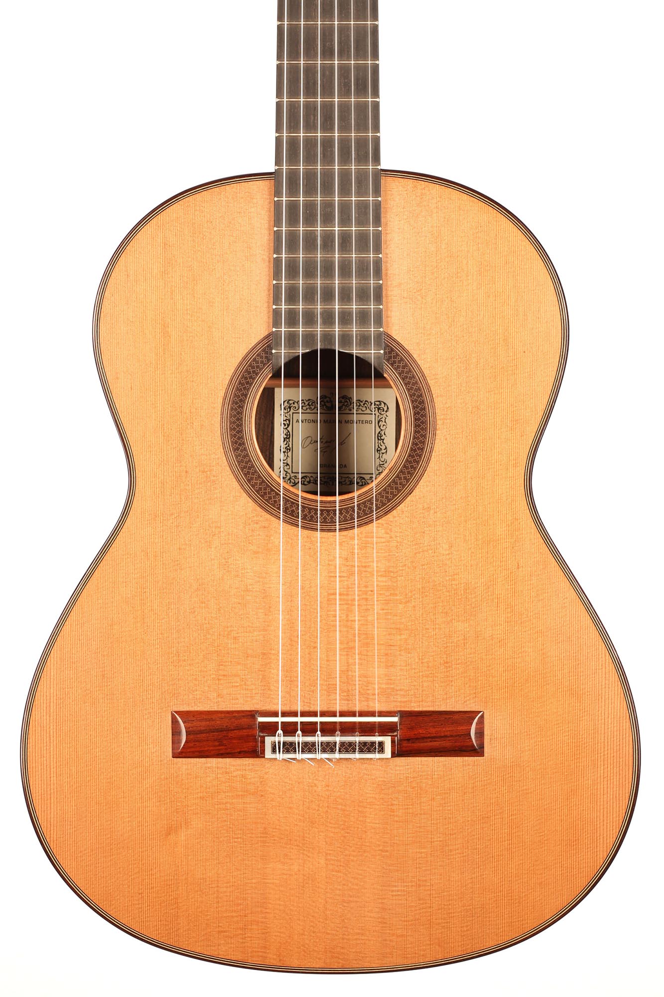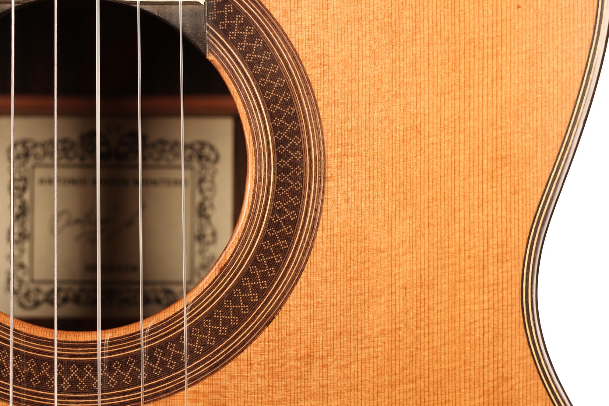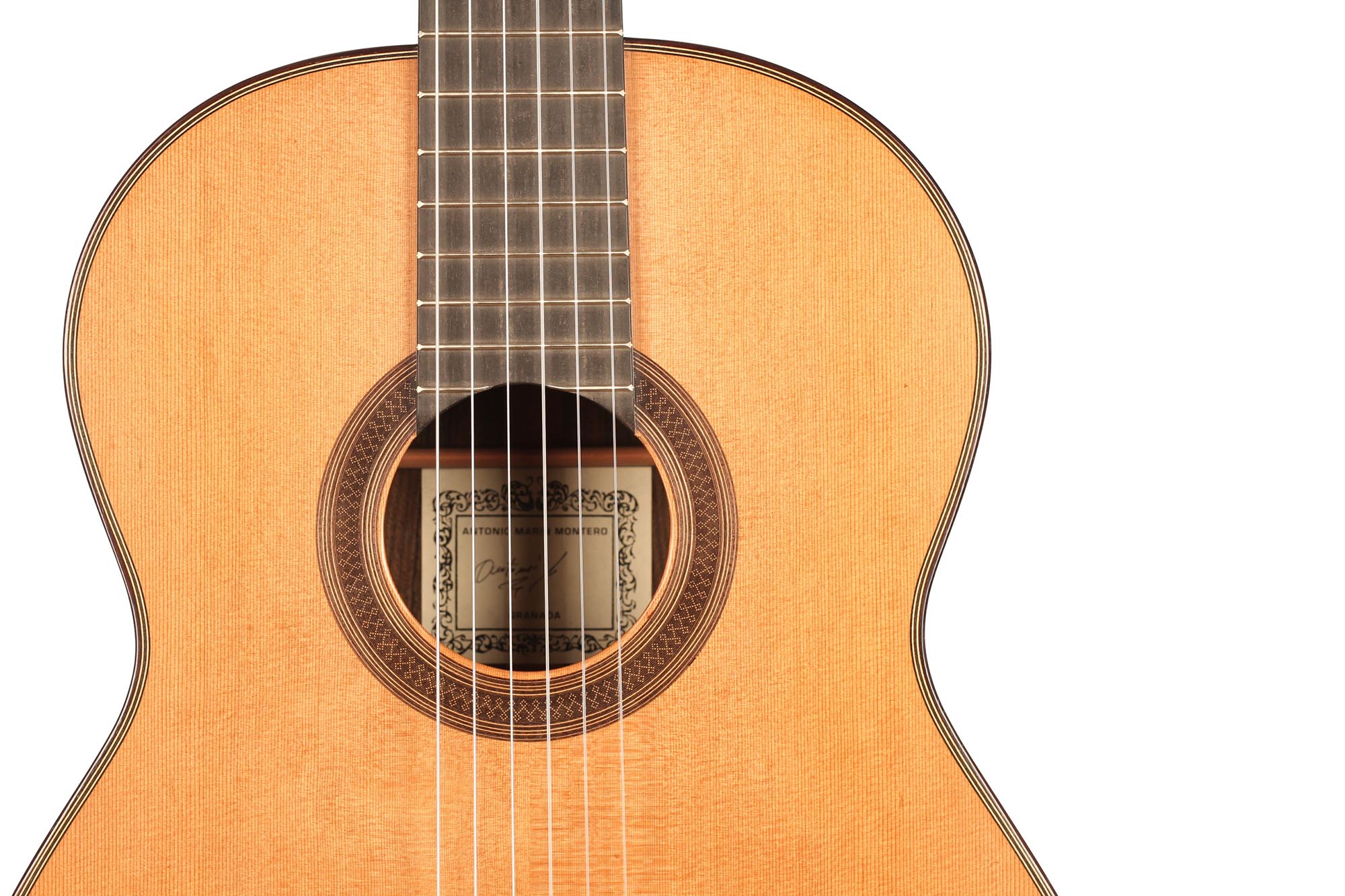 Cedar top guitars built by Antonio Marin Montero are rare and this one is a wonderful example of how to get the best out of a cedar piece of wood. This brand-new guitar has both incredible sound qualities and a very appealing wood selection. The never-ending sustain combined to the myriad of overtones really give a feeling of musical freedom and open unsuspected interpretation possibilities. This Antonio Marin cedar-top is a unique opportunity to get one of the greatest Spanish instruments of our time.
