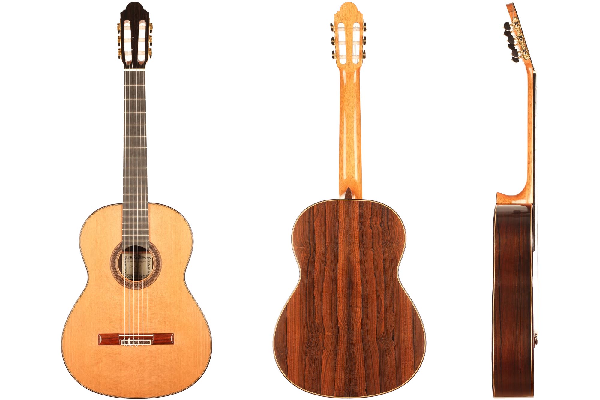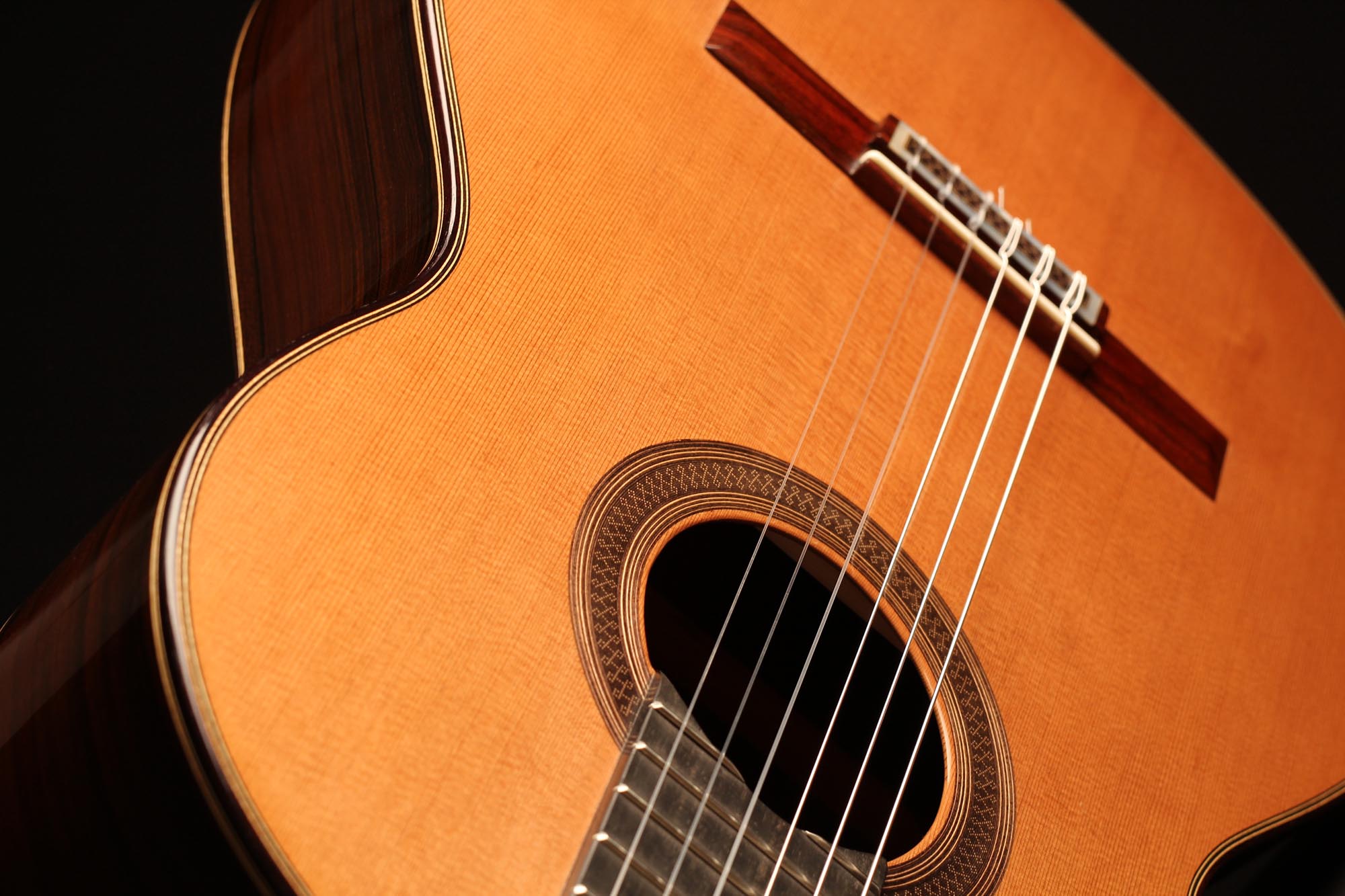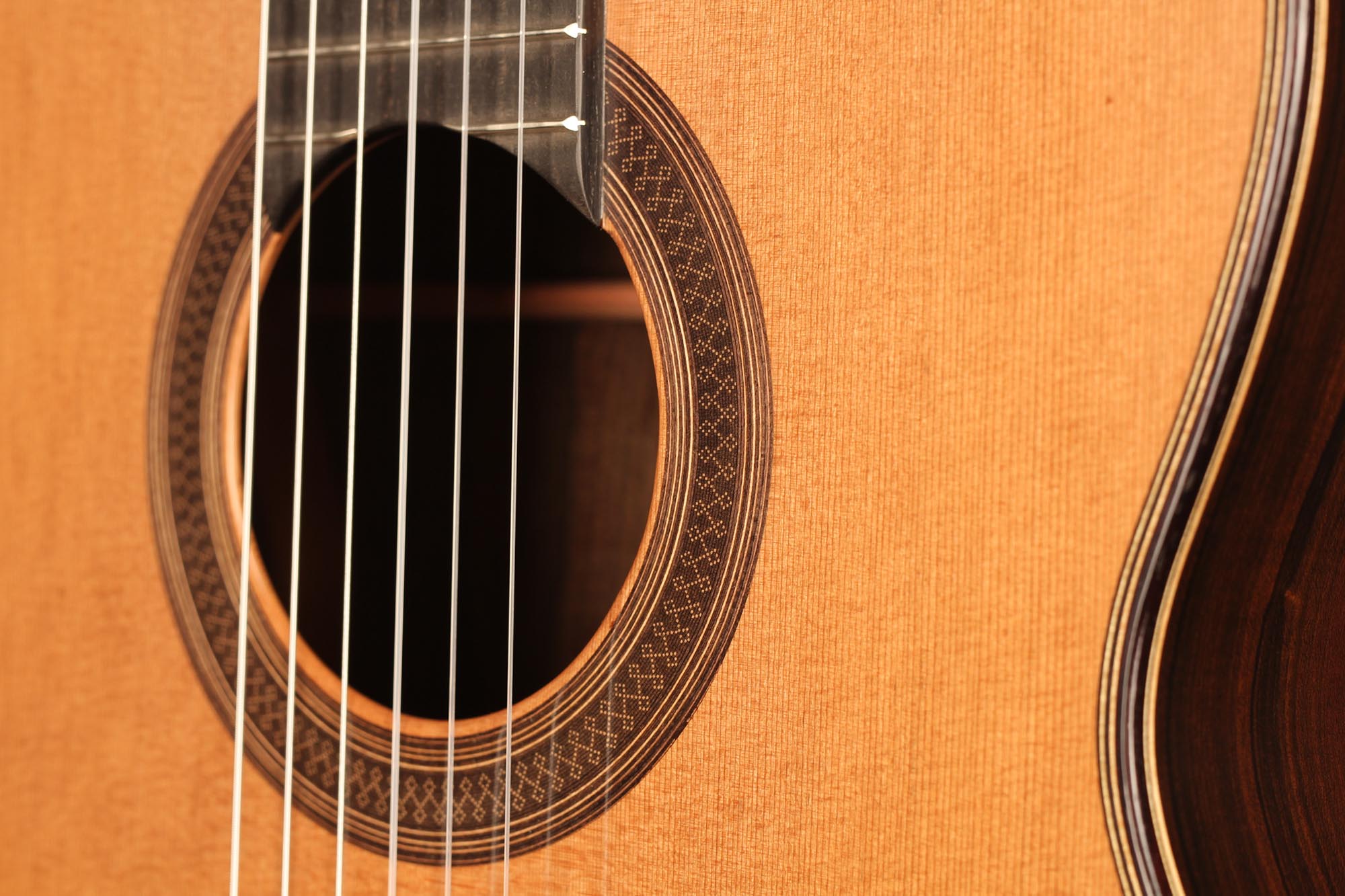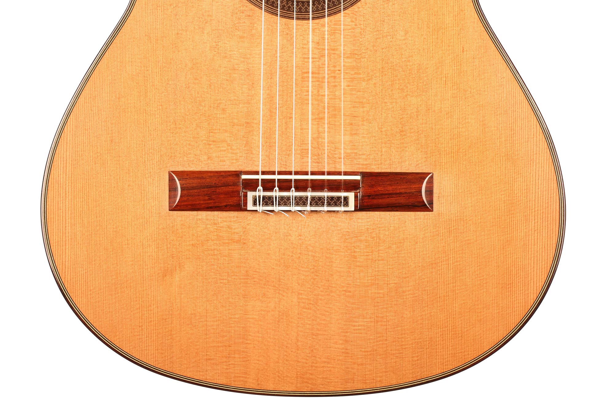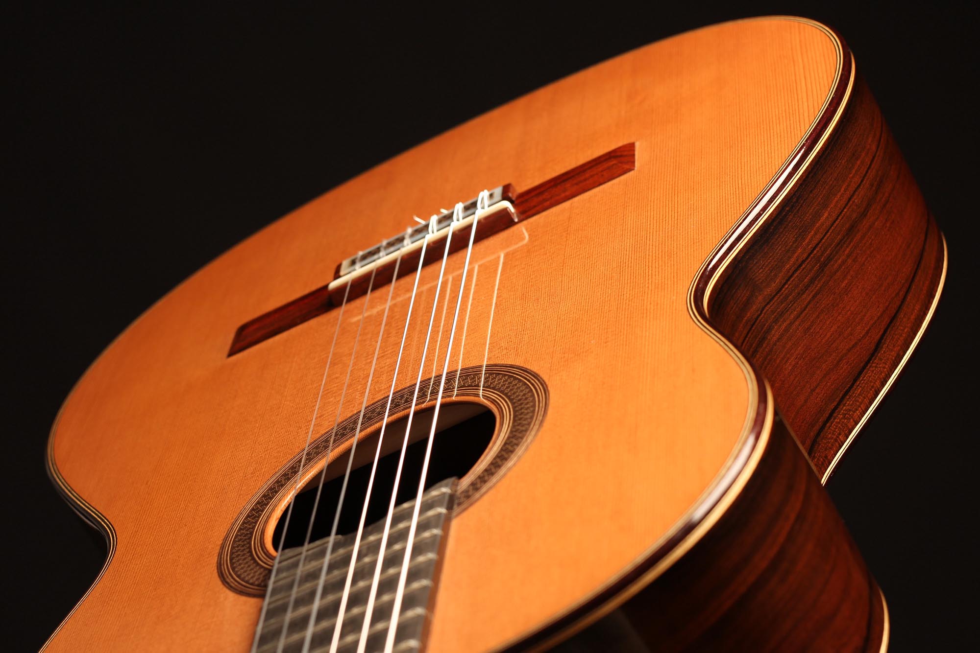 Cedar top guitars built by Antonio Marin Montero are rare and this one is a wonderful example of how to get the best out of a cedar piece of wood. This brand-new guitar has both incredible sound qualities and a very appealing wood selection. The never-ending sustain combined to the myriad of overtones really give a feeling of musical freedom and open unsuspected interpretation possibilities. This Antonio Marin cedar-top is a unique opportunity to get one of the greatest Spanish instruments of our time.