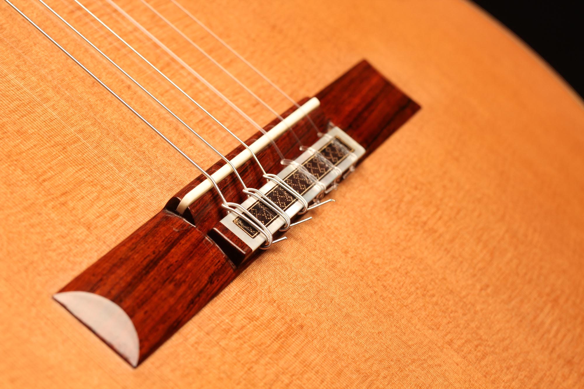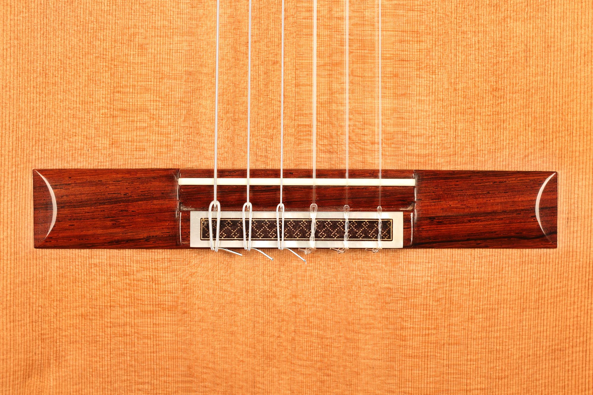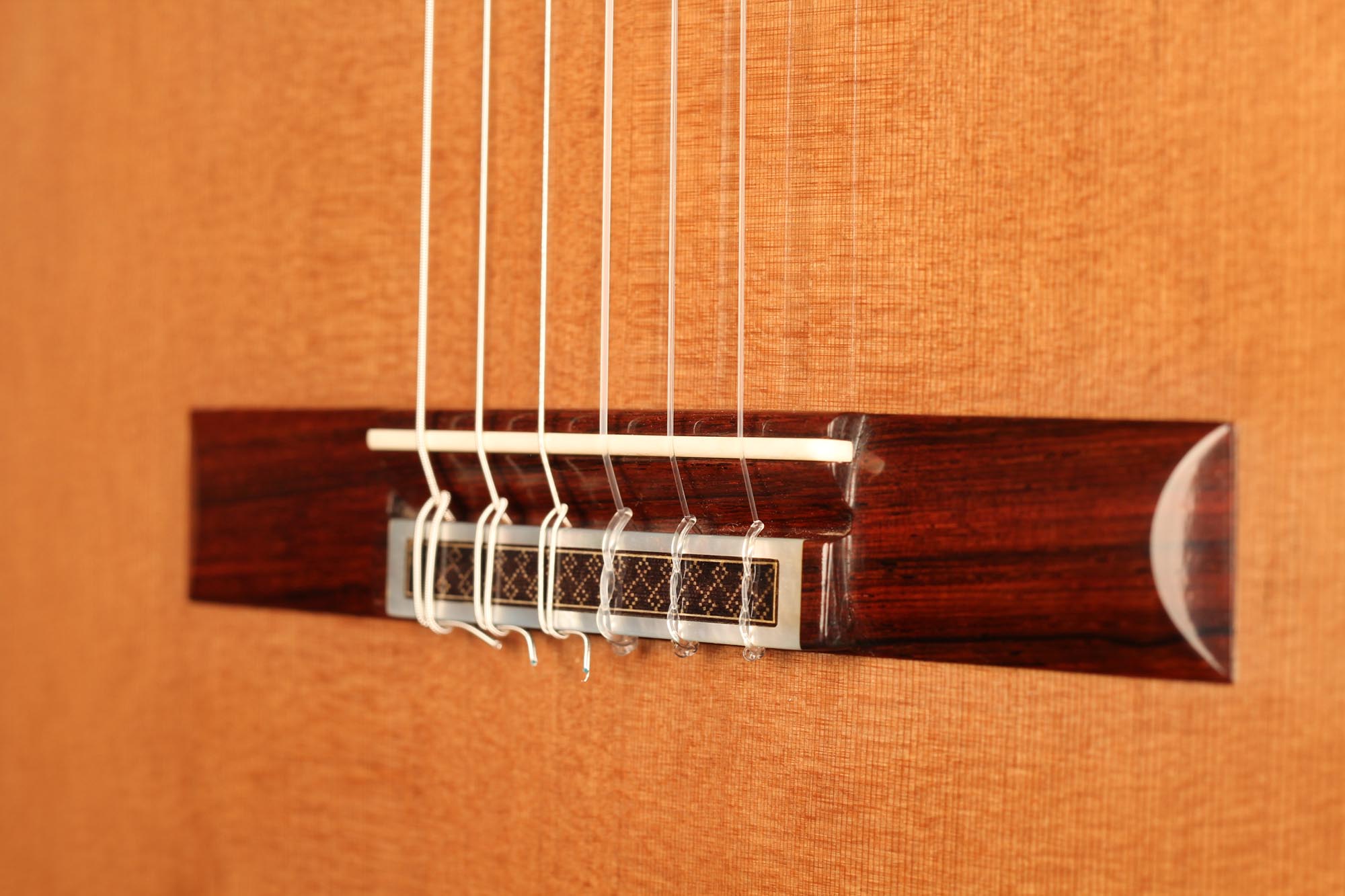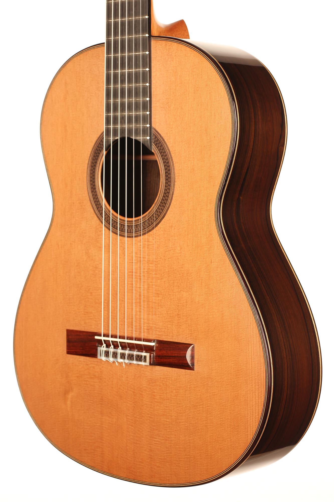 Cedar top guitars built by Antonio Marin Montero are rare and this one is a wonderful example of how to get the best out of a cedar piece of wood. This brand-new guitar has both incredible sound qualities and a very appealing wood selection. The never-ending sustain combined to the myriad of overtones really give a feeling of musical freedom and open unsuspected interpretation possibilities. This Antonio Marin cedar-top is a unique opportunity to get one of the greatest Spanish instruments of our time.
