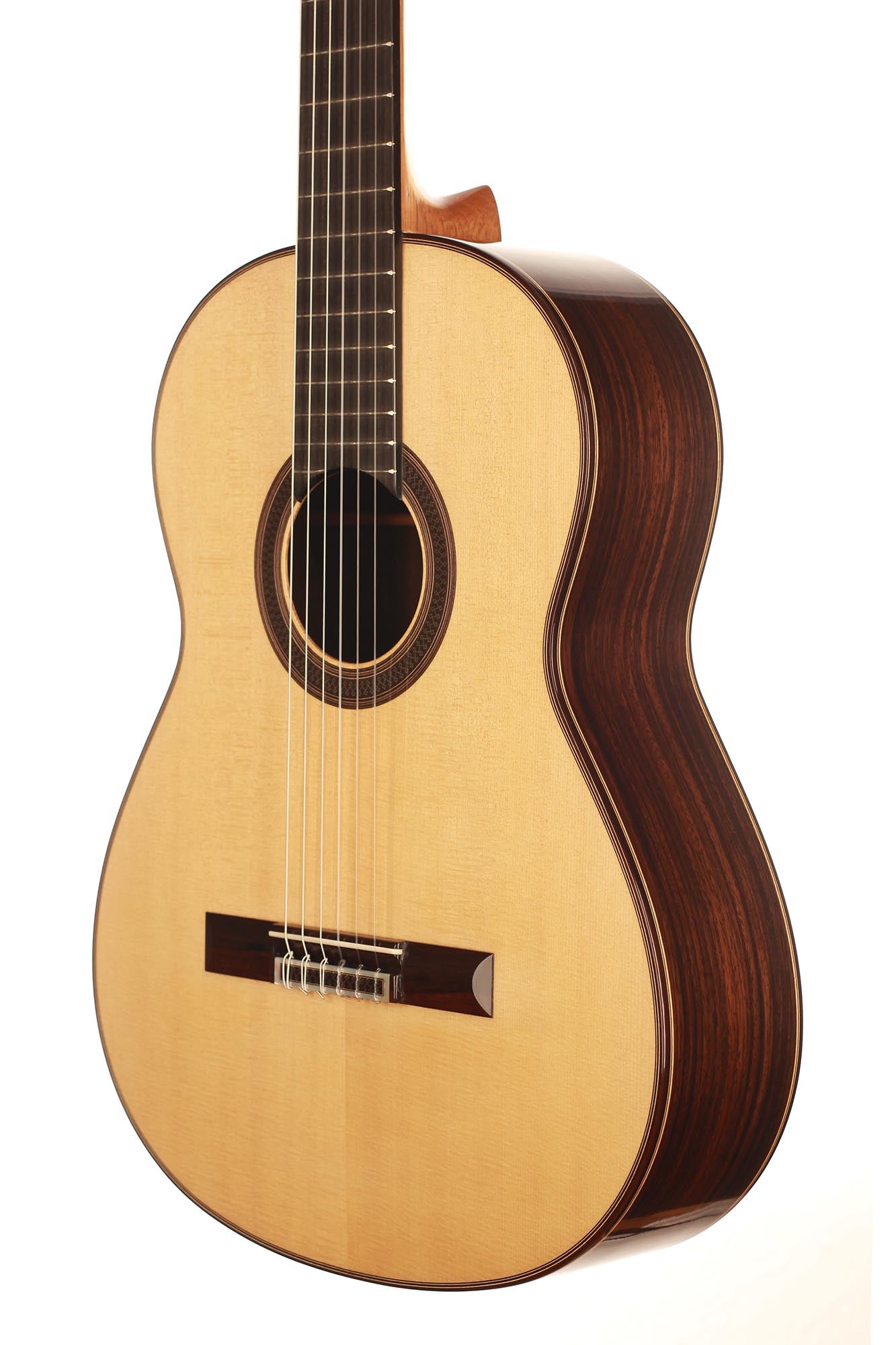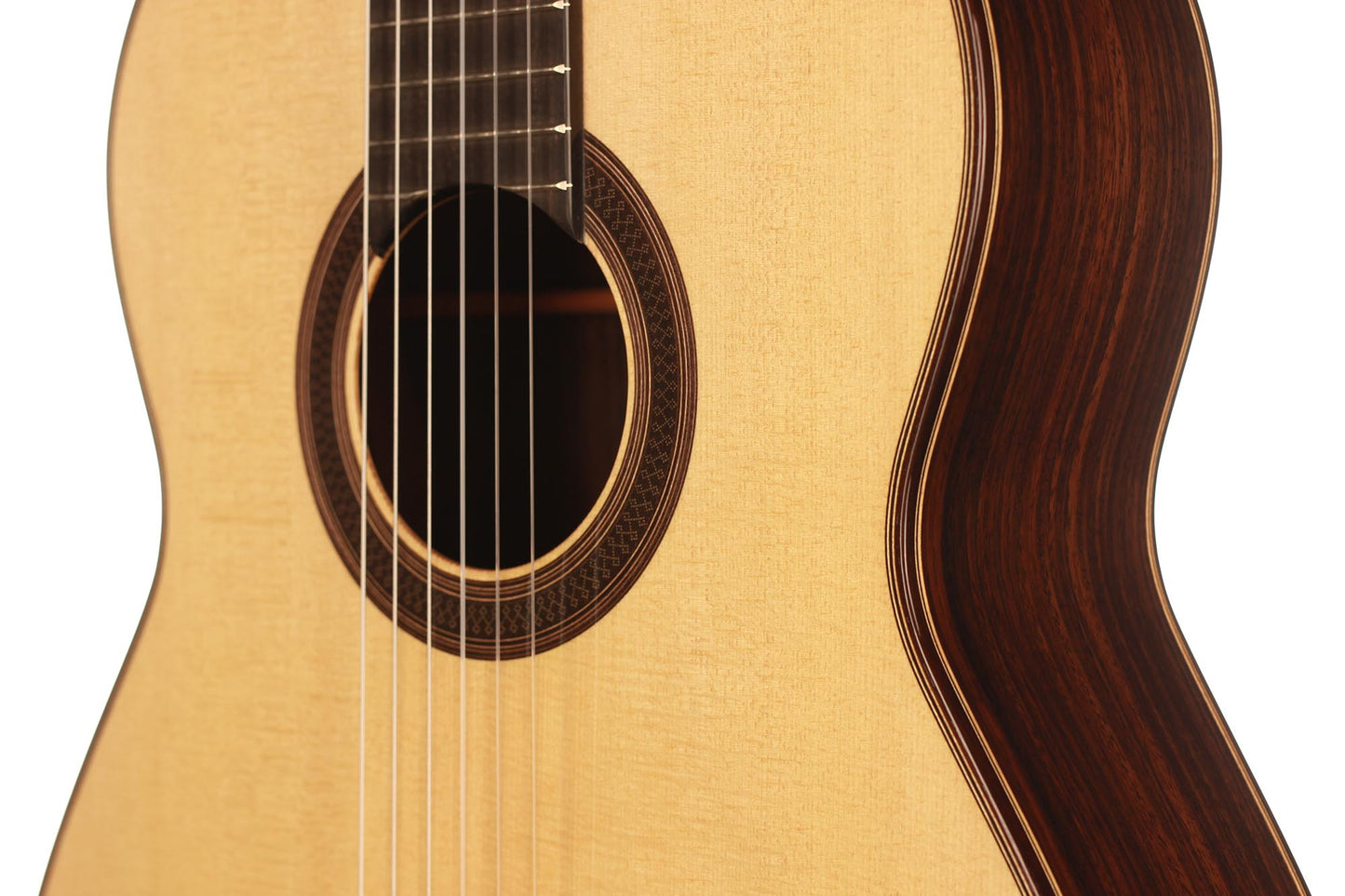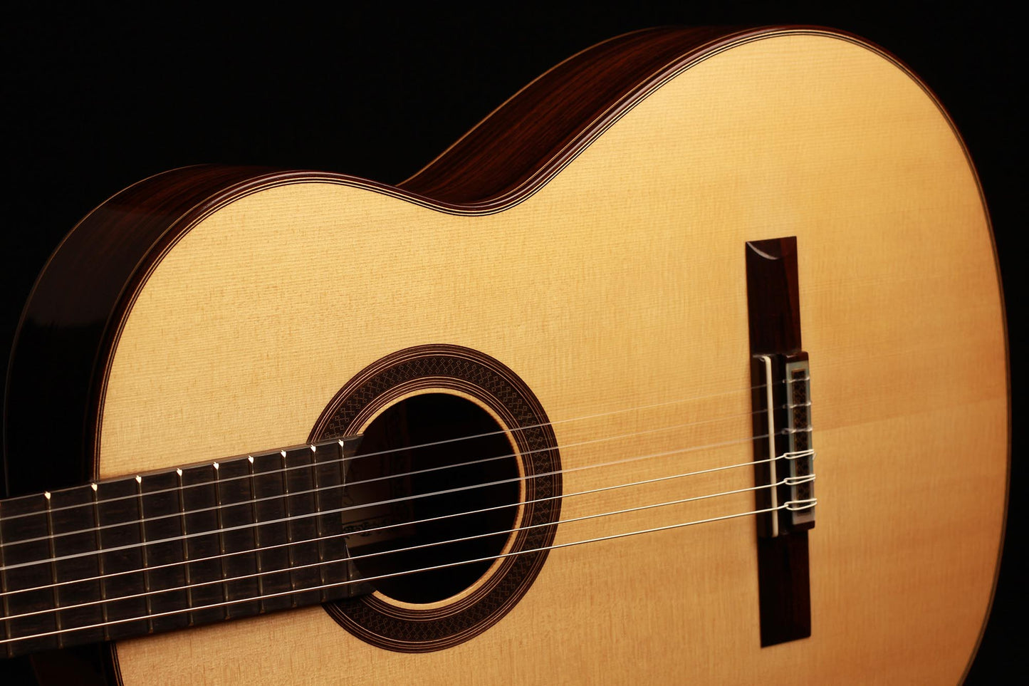 Die klassische Gitarre mit ihren weichen Nylonsaiten und ihrem charakteristischen Timbre ist zum Symbol der Kammermusik, der spanischen Tradition und des Konzertrepertoires geworden. Ihre moderne Form prägte Antonio de Torres im 19. Jahrhundert, indem er den Standard für Korpus, Fächerbeleistung und die 65-Zentimeter-Mensur setzte, die bis heute verwendet werden. Instrumente dieser Kategorie eröffnen eine reiche Palette von den feinen romantischen Miniaturen Tárregas bis zu den majestätischen Konzerten Rodrigos. Hier finden Sie Gitarren, die historische Kontinuität bewahren und zugleich zu neuen Interpretationen anregen.