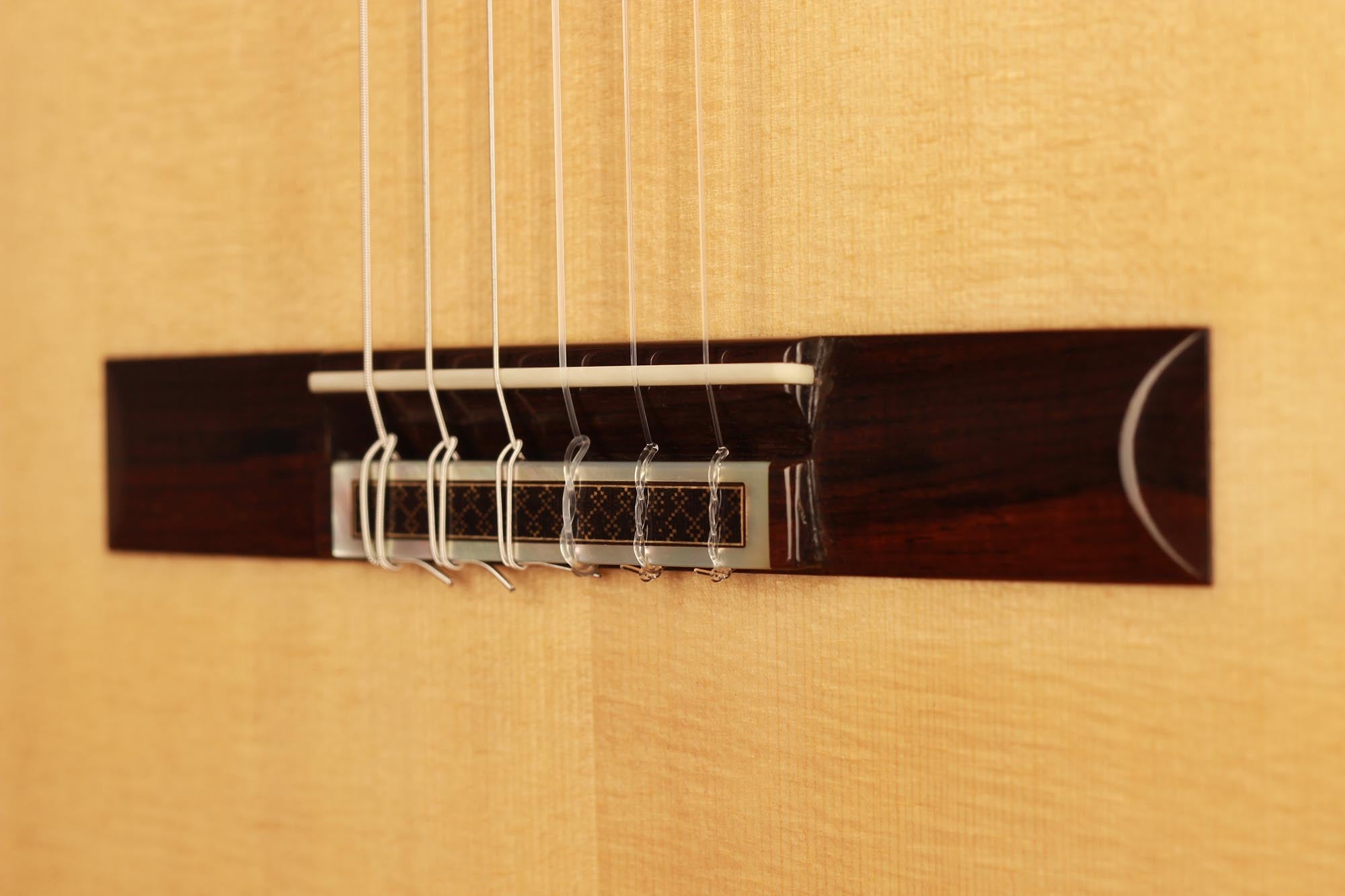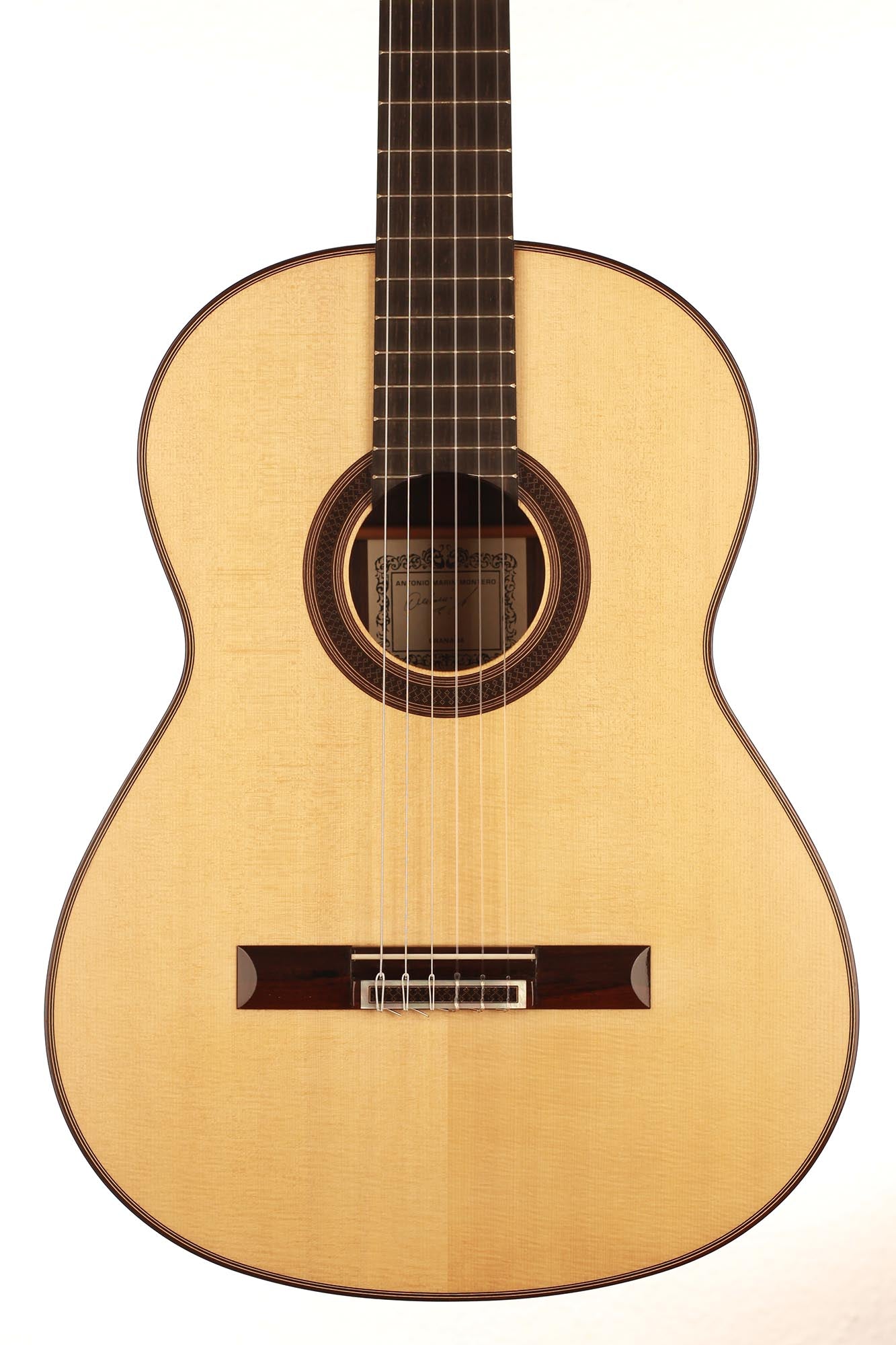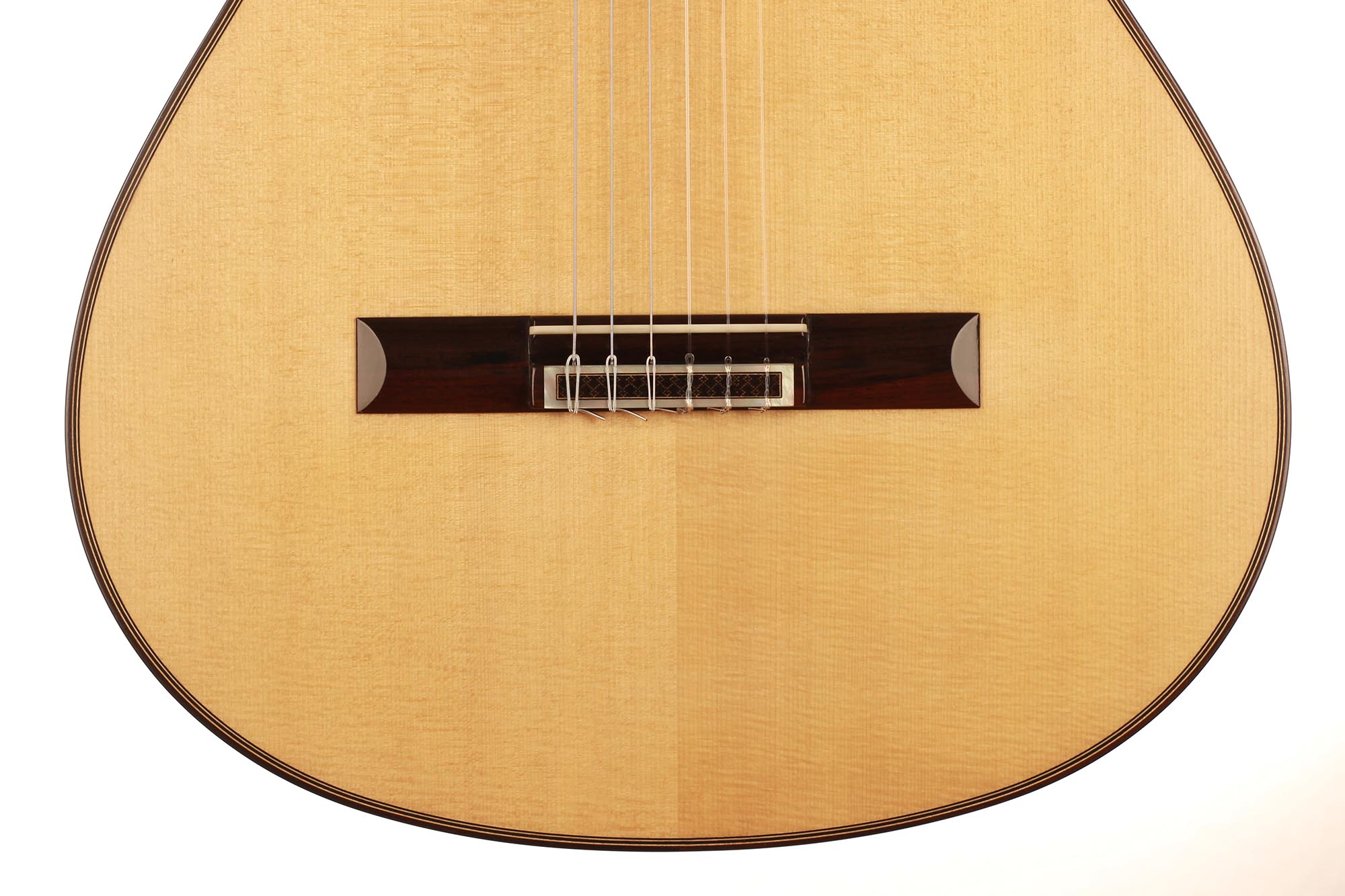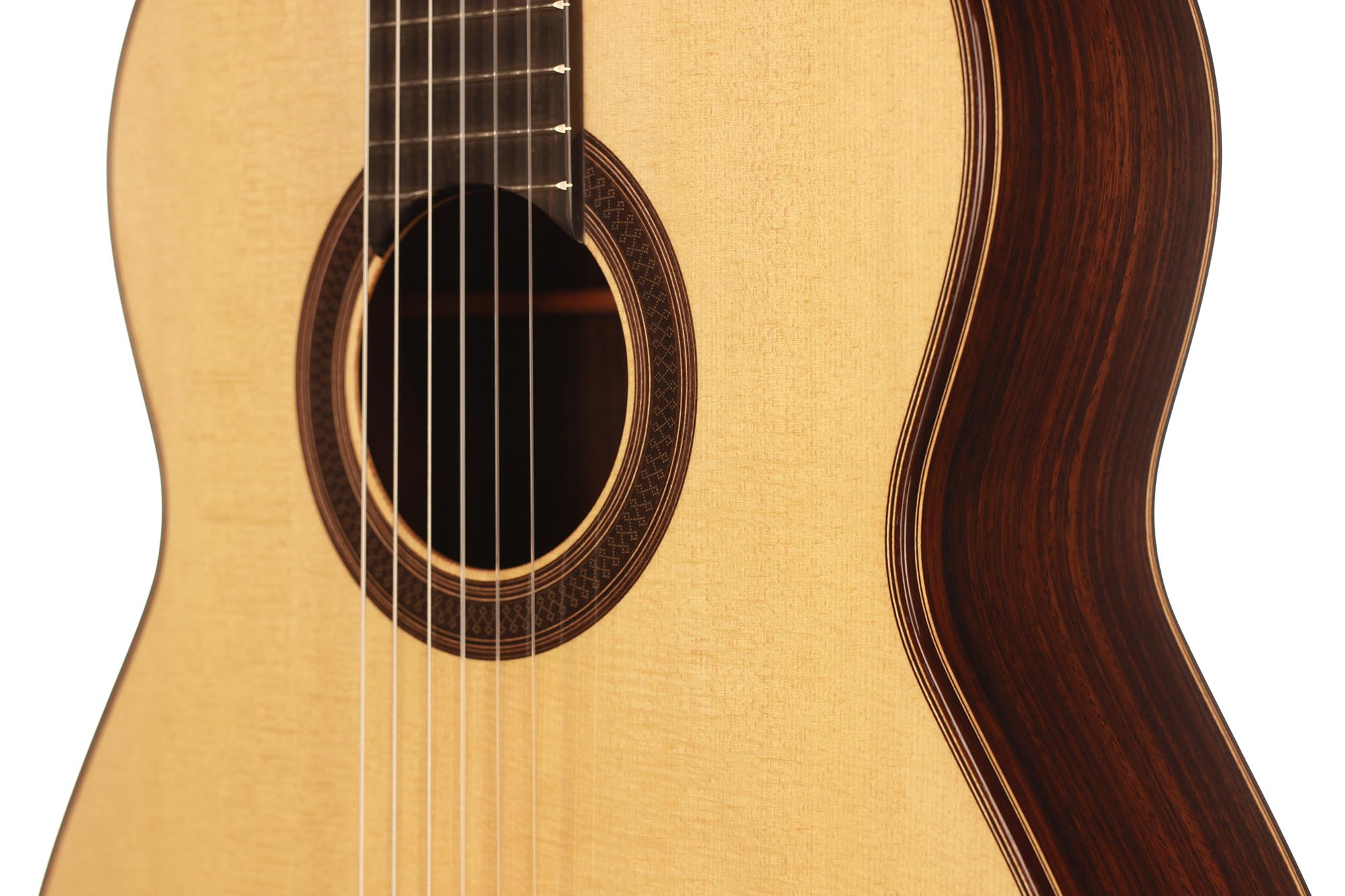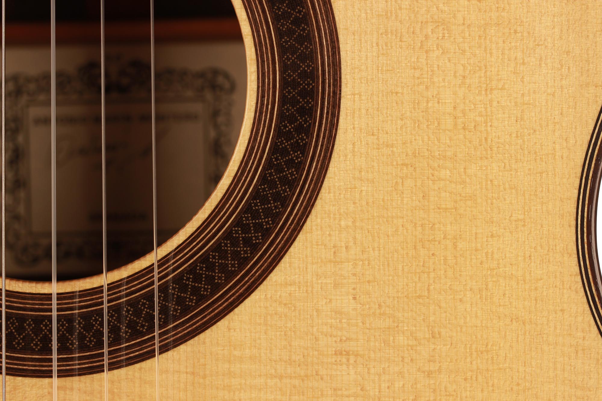 Diese wunderschöne Gitarre hat einen besonders klaren und präzisen Ton. Der obertonreiche Klangcharakter ist auffallend rein, und die Reaktivität der Decke bietet eine außergewöhnliche Spielfluss. Jeder Liebhaber traditioneller spanischer Gitarren wird behaupten, dass das spanische Timbre das charmanteste und poetischste ist, was diese Gitarre definitiv legitimiert.