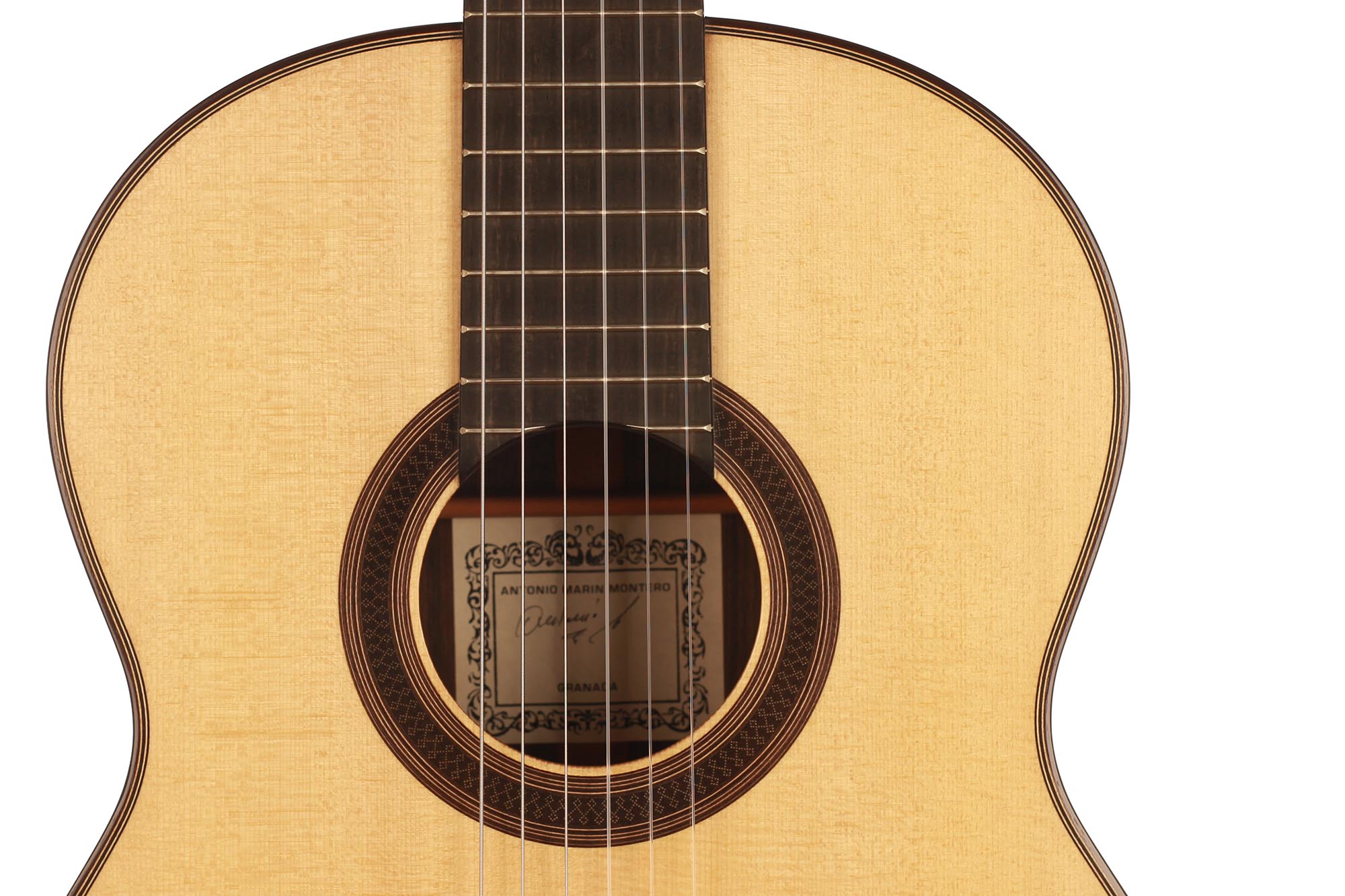 Antonio Marín Montero wurde 1933 in Granada geboren. 1957 begann er in die Werkstatt von Meister Pérez zu arbeiten. Zwei Jahre später, 1959, riet ihm sein Vater, Eduardo Ferrer zu besuchen, für den er bis zur Eröffnung seiner eigenen Werkstatt arbeitete. Heute ist Antonio Marin Montero einer der gefragtesten Gitarrenbauer Granadas. Seine Gitarren werden weltweit in Konzerten gespielt und gehören aus unserer Sicht zu den besten spanischen Gitarren unserer Zeit.