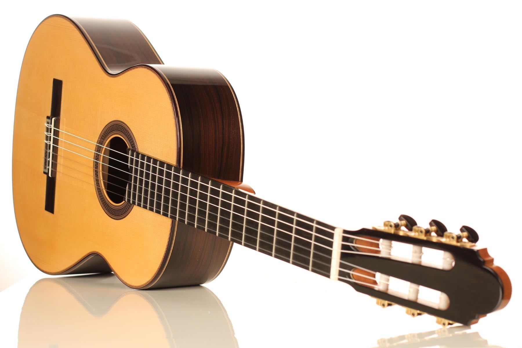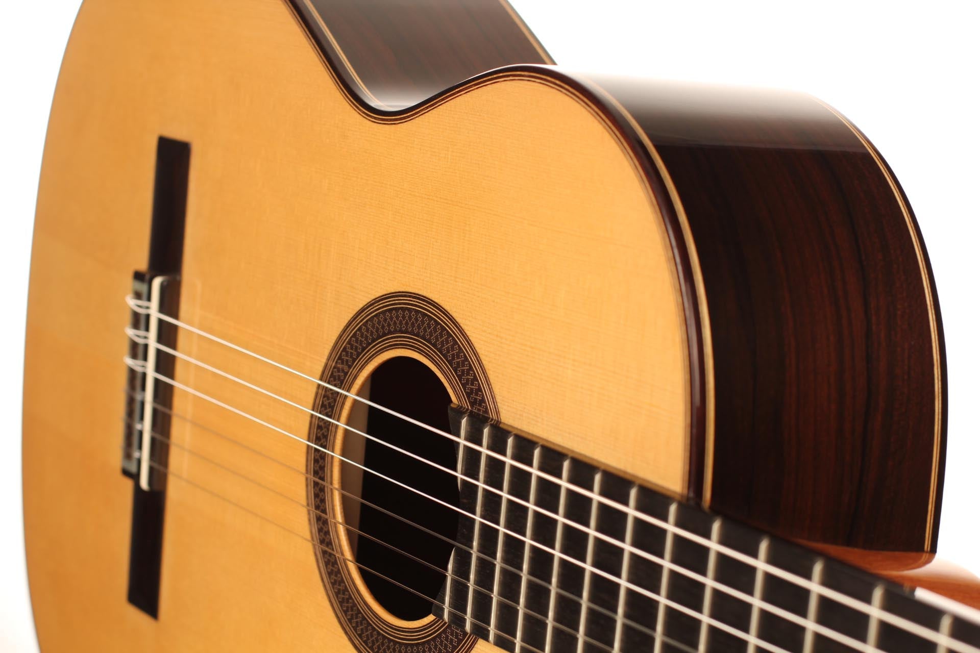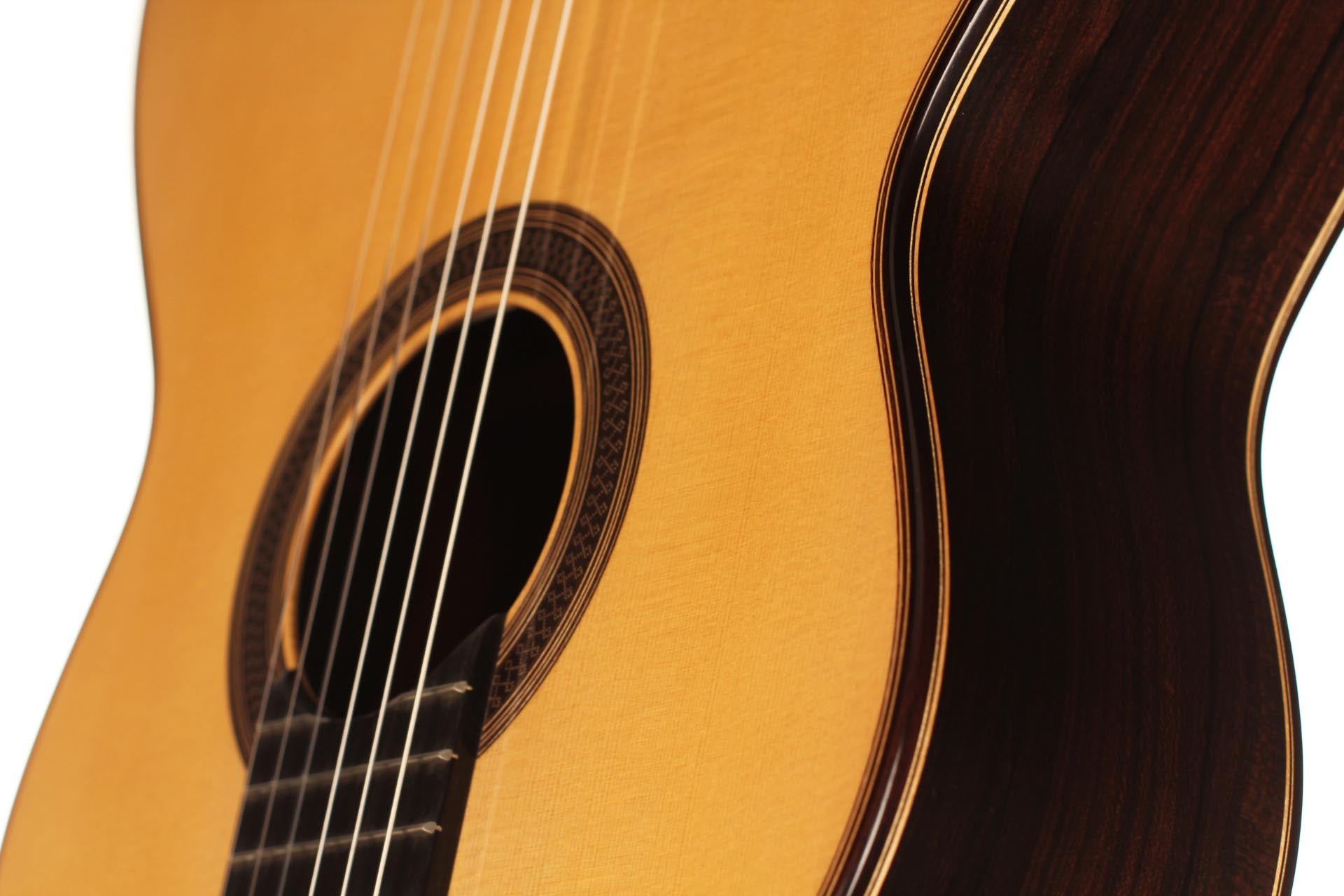 Die klassische Gitarre mit ihren weichen Nylonsaiten und ihrem charakteristischen Timbre ist zum Symbol der Kammermusik, der spanischen Tradition und des Konzertrepertoires geworden. Ihre moderne Form prägte Antonio de Torres im 19. Jahrhundert, indem er den Standard für Korpus, Fächerbeleistung und die 65-Zentimeter-Mensur setzte, die bis heute verwendet werden. Instrumente dieser Kategorie eröffnen eine reiche Palette von den feinen romantischen Miniaturen Tárregas bis zu den majestätischen Konzerten Rodrigos. Hier finden Sie Gitarren, die historische Kontinuität bewahren und zugleich zu neuen Interpretationen anregen.