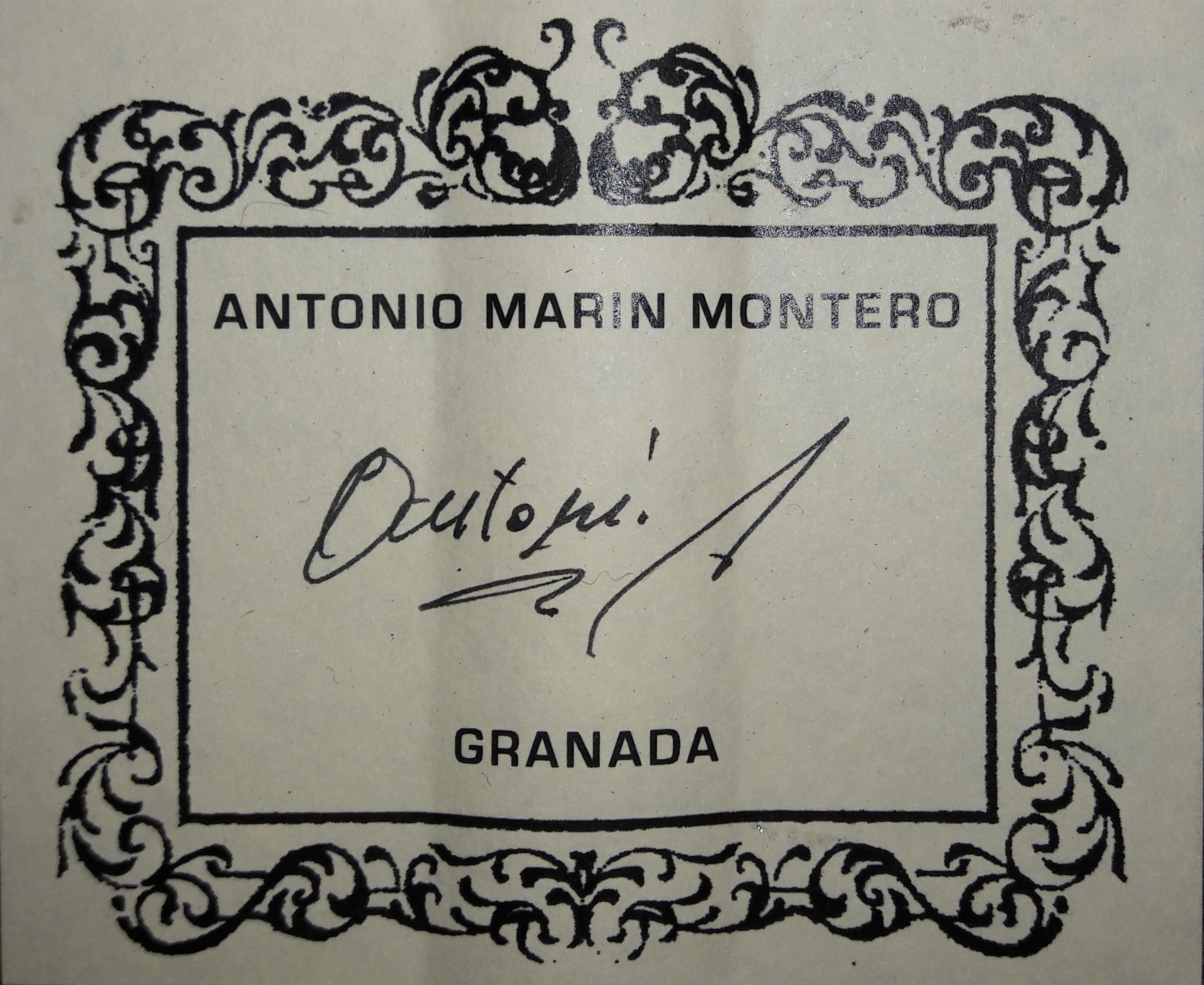 Antonio Marín Montero wurde 1933 in Granada geboren und war der erste Gitarrenbauer in seiner Familie. Im Jahr 1957 begann er in der Werkstatt des Gitarrenbauers Pérez zu arbeiten. Wiederum zwei Jahre danach begann er eine Ausbildung bei Eduardo Ferrer bis er schließlich seine eigene Werkstatt eröffnete. Heute ist er einer der gefragtesten Gitarrenbauer Granadas.