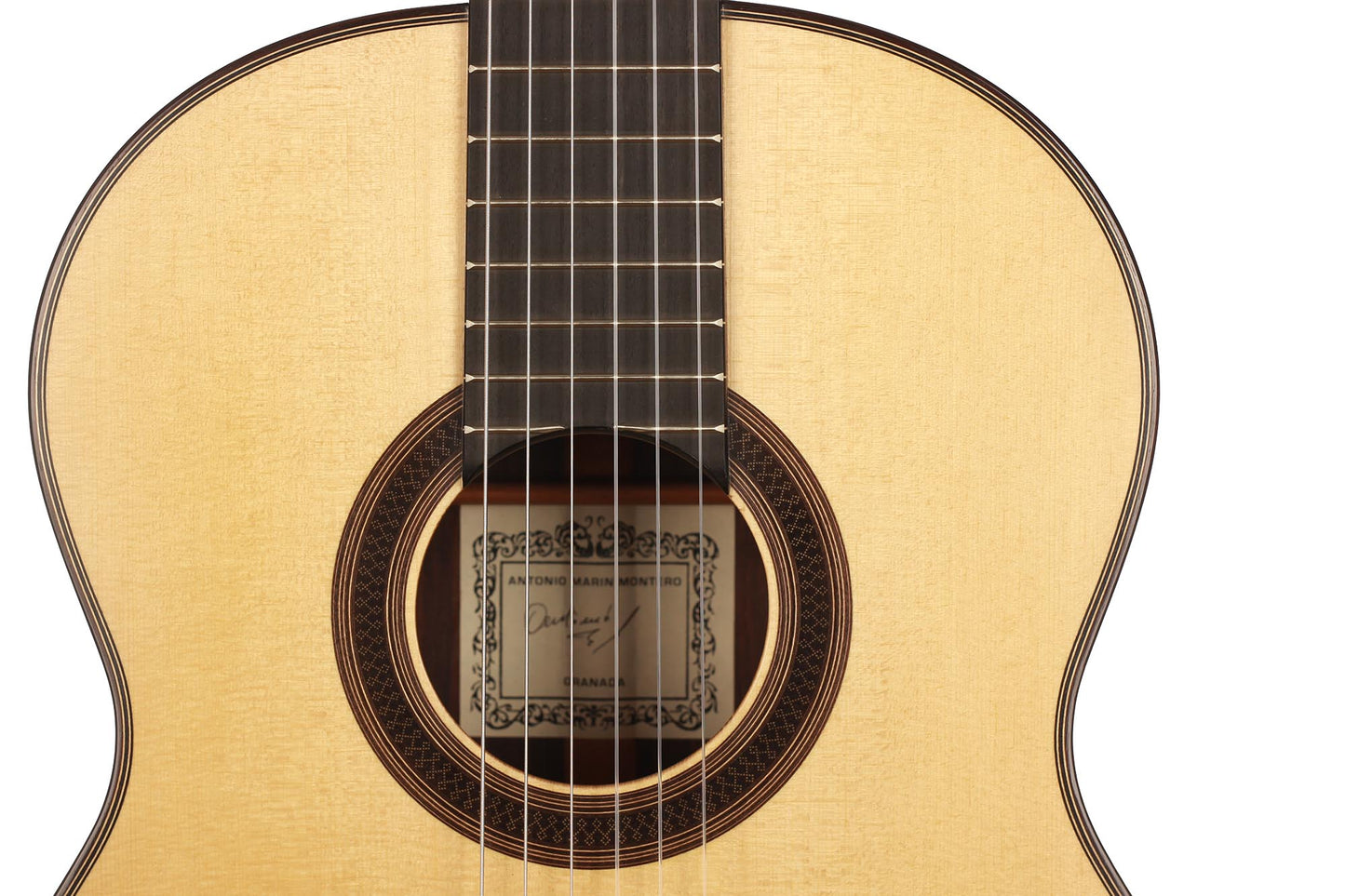 This guitar is brand-new and as always with Antonio Marin Montero's guitars, it is a fantastic concert instrument in the Spanish tradition. It has a remarkable balance and a wide range of sound colours. The deep rounded basses unite perfectly with the overtone-rich trebles and the sound has a great charm and openness. Overall, it is a beautiful guitar that will please the ears and the heart of its lucky owner and his audience.