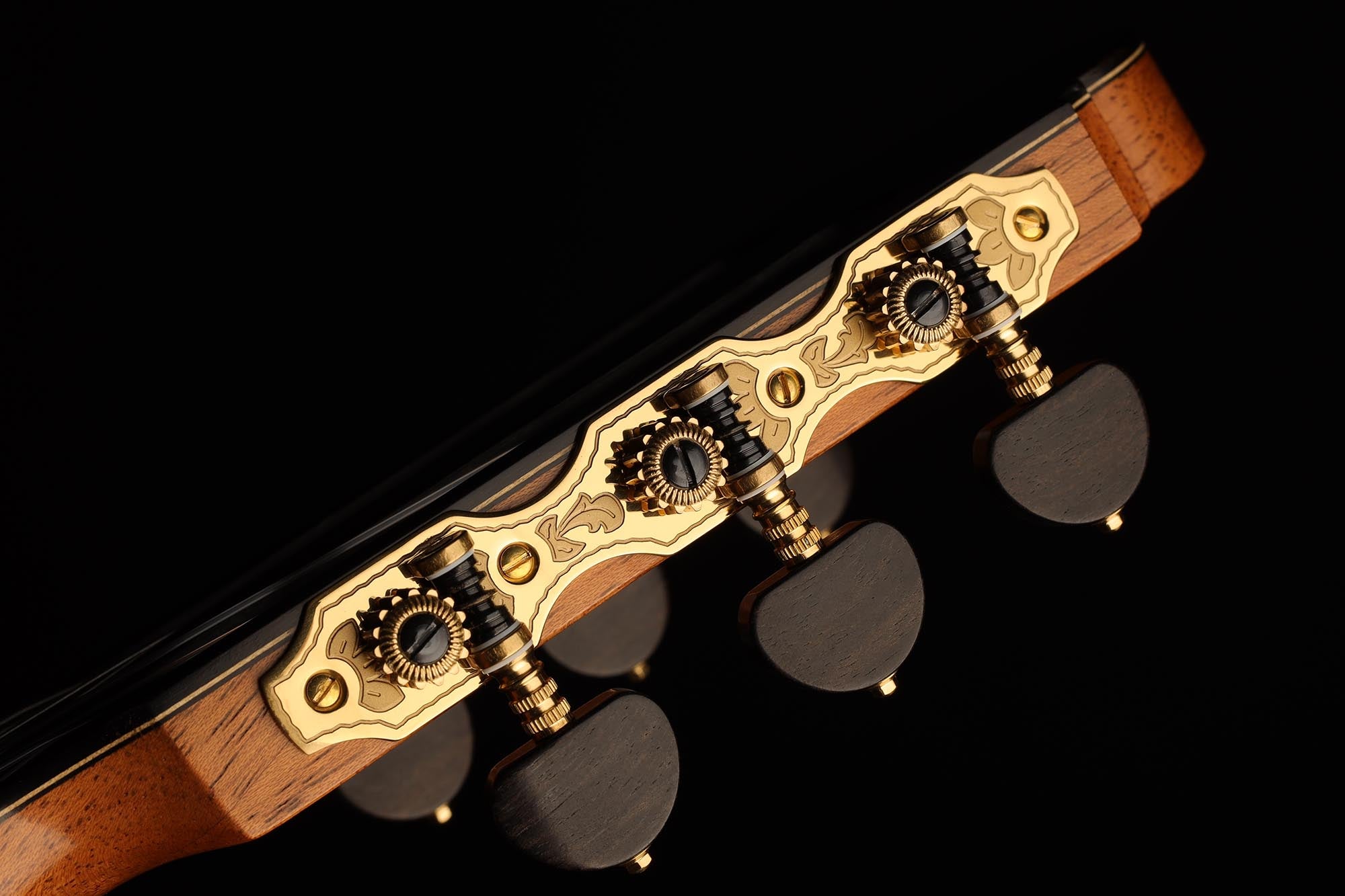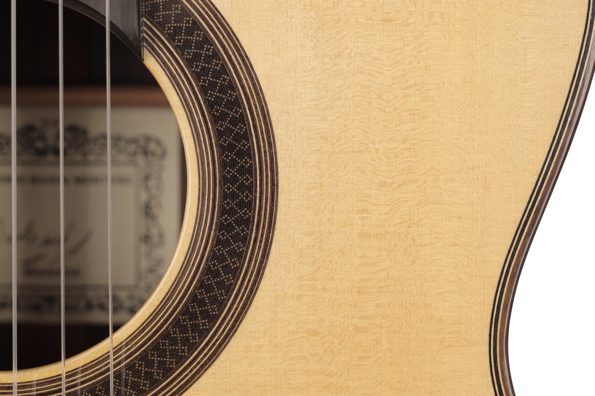 This superb guitar is the archetype of Antonio Marin Montero's guitars, with the exception that it has a scale of only 64 cm. This rare detail, barely noticeable for some guitarists, makes a huge difference for players with small hands or difficulties with large note intervals.