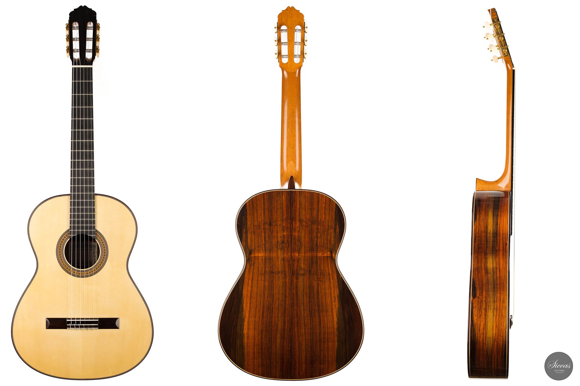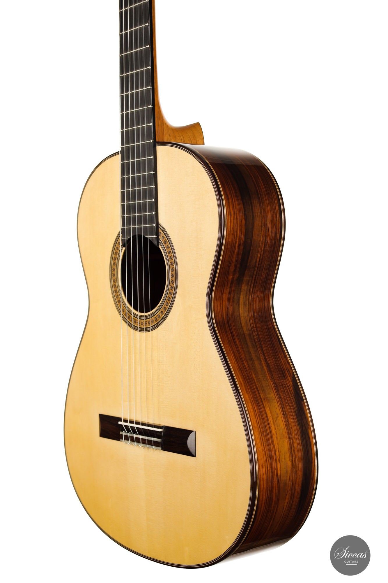 The Premium models are unique instruments that are developed in cooperation with a selection of exceptional luthiers. These models are exclusively available at Siccas Guitars and are built with the finest Cites-certified Brazilian rosewood of premium quality. Due to its outstanding physical and tonal characteristics, this wood has been used in guitar building since the 19th century and is regarded as the most valuable and aesthetically appealing tonewood in guitar building.