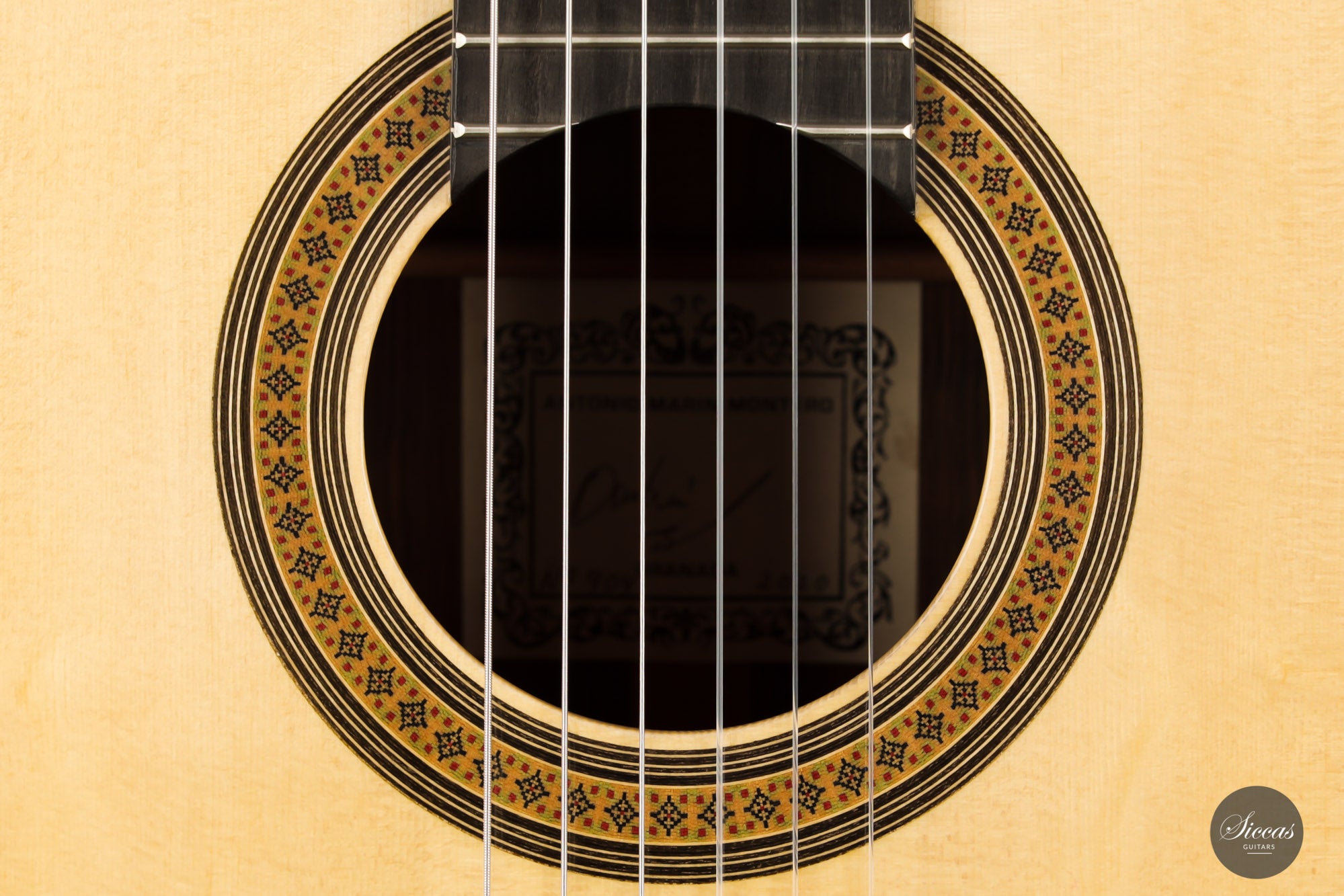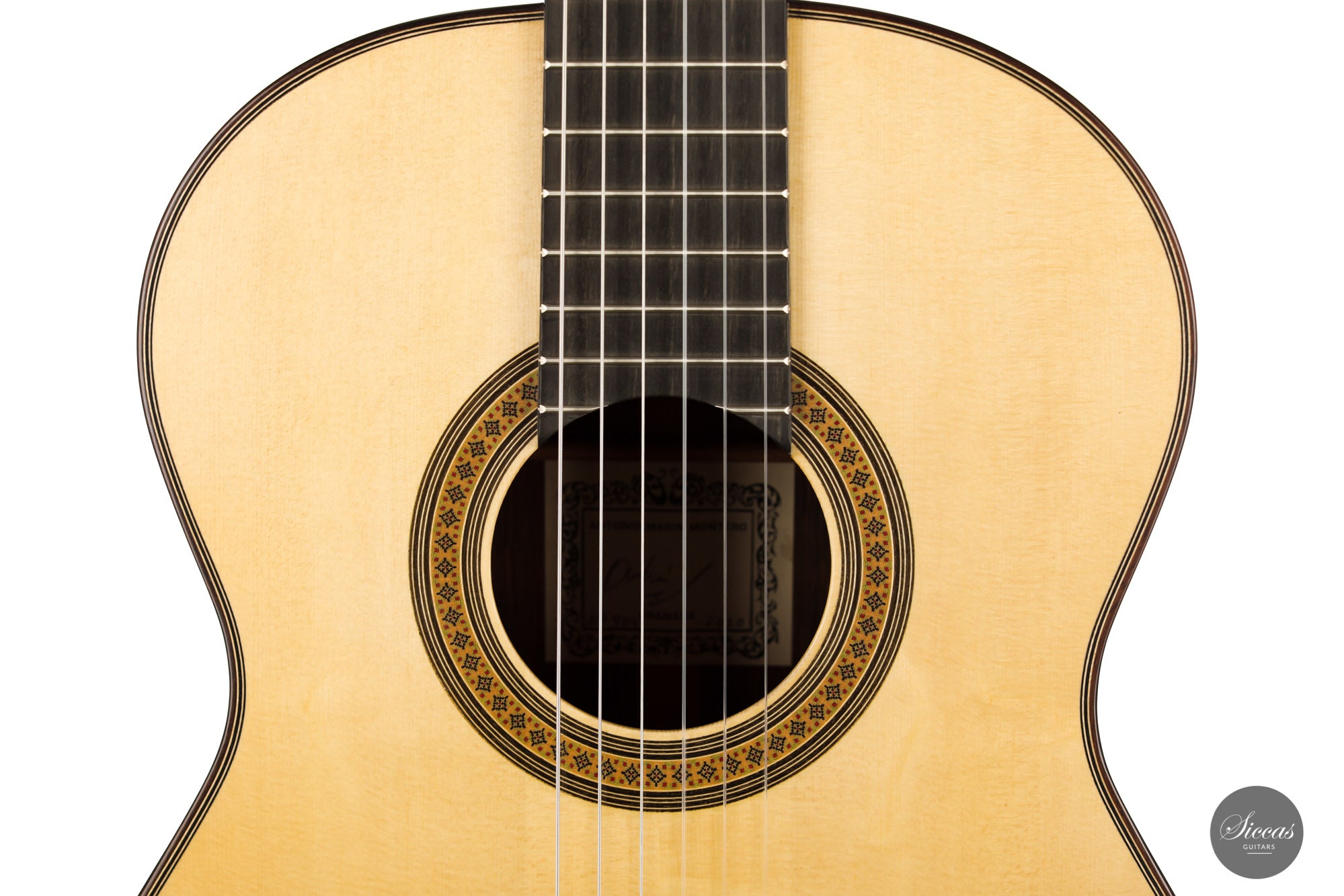 This guitar has a typical and easily recognizable "Antonio Marin Montero" sound, with a wonderfully rich timbre and a very Spanish character deriving from the famous Granada guitar making tradition. This premium model features exceptionally dense trebles with a versatile palette of timbres and exceedingly long sustain. Both visually and sonically, this is a very well-balanced instrument that also has the amazing ability to respond to any type of playing style. Whether played hard or soft, with nails or without, digging deep into the strings or just lightly stroking them, this guitar can produce a sound that is correspondingly powerful, mellow, charming, and also poetic.
