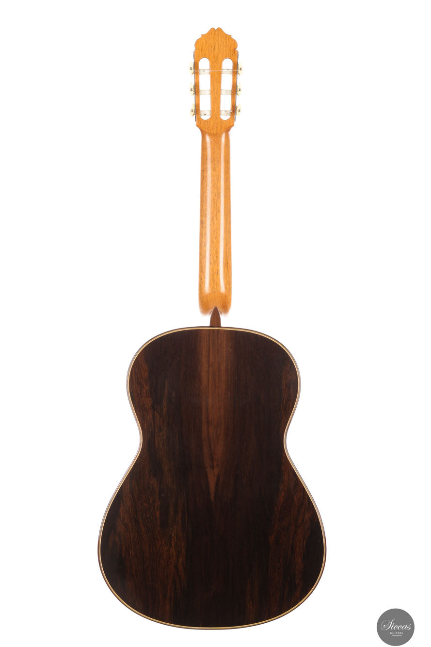 This superb guitar numbered 917 is very light and built with a very responsive soundboard made of first-class spruce. The Brazilian rosewood has a tight and parallel grain, which is very homogeneous and shows some dark and vivid colors. It is important to note that this guitar is one of the few to have its number written on the label.