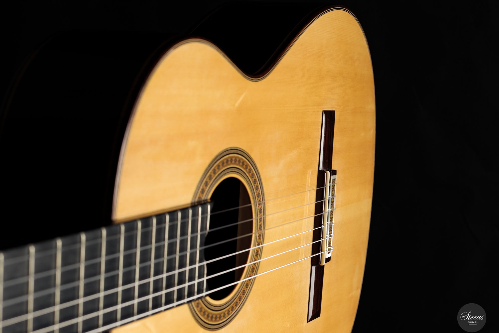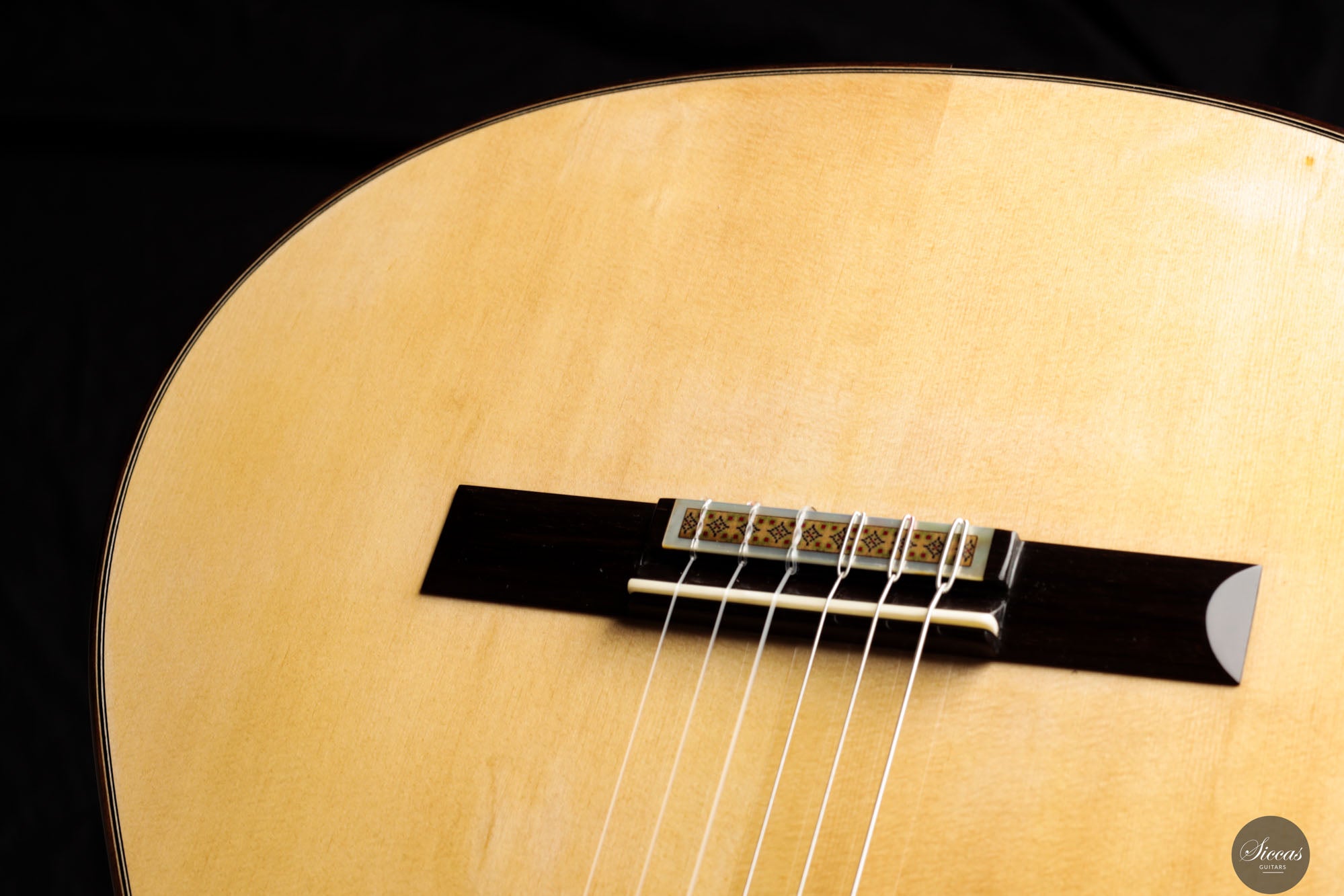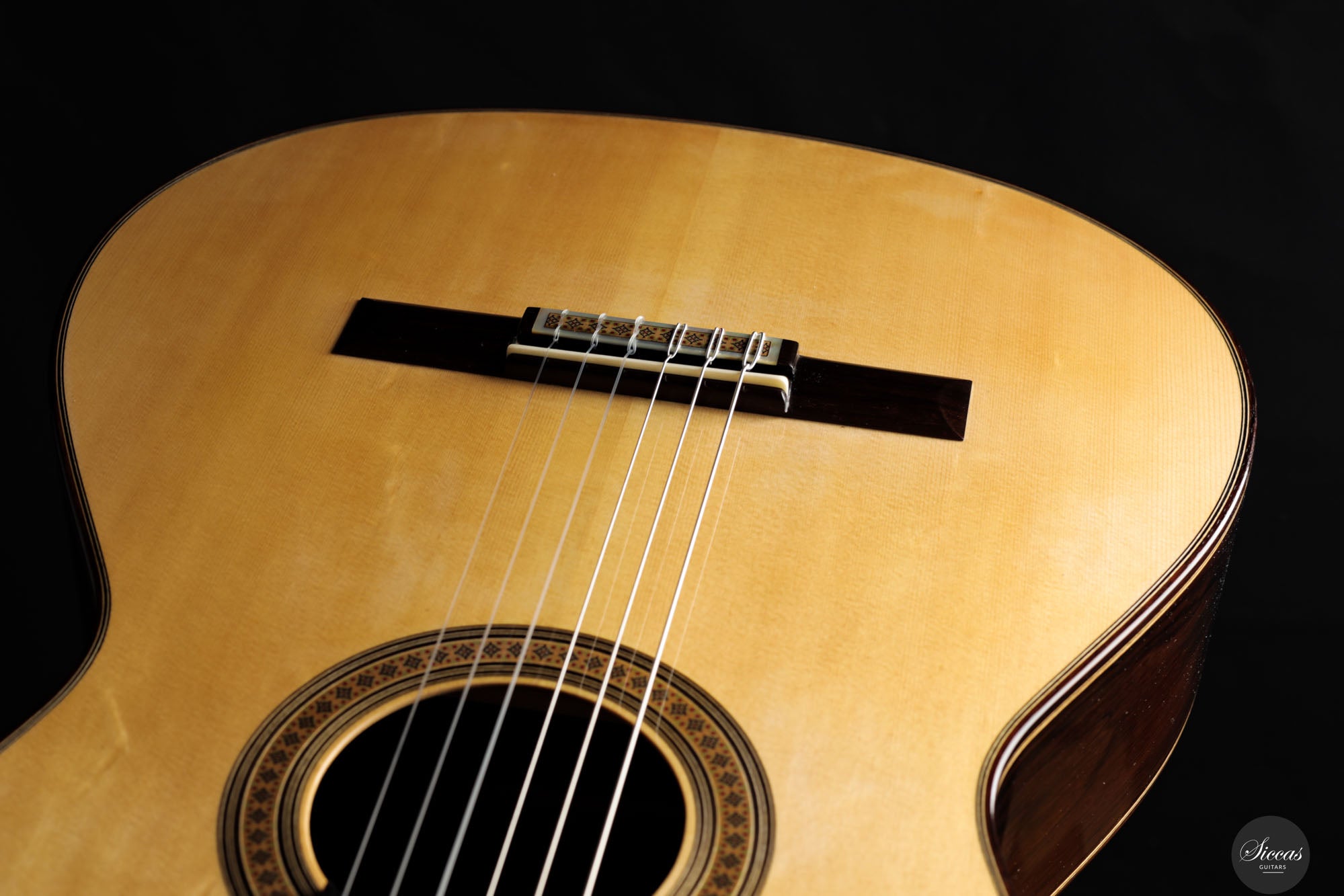 Antonio Marín Montero was born in Granada in 1933. In 1957, he joined master Pérez’s workshop and two years later, in 1959, his father advised him to visit Eduardo Ferrer for whom he worked until opening his own workshop. A milestone in Antonio Marin Montero’s career was his meeting with the French luthier Robert Bouchet in the 1970s. The two artists became friends and built several guitars together. The confrontation between Marin Montero’s Spanish building system and Robert Bouchet’s very particular bracing construction was a great source of inspiration for Antonio Marin Montero, and he continued to build a model with the ” Robert Bouchet ” bracing throughout his career. Today Antonio Marin Montero is one of the most sought-after Spanish guitar makers.