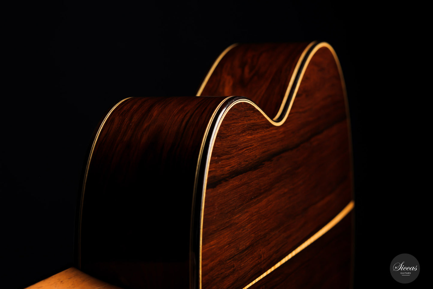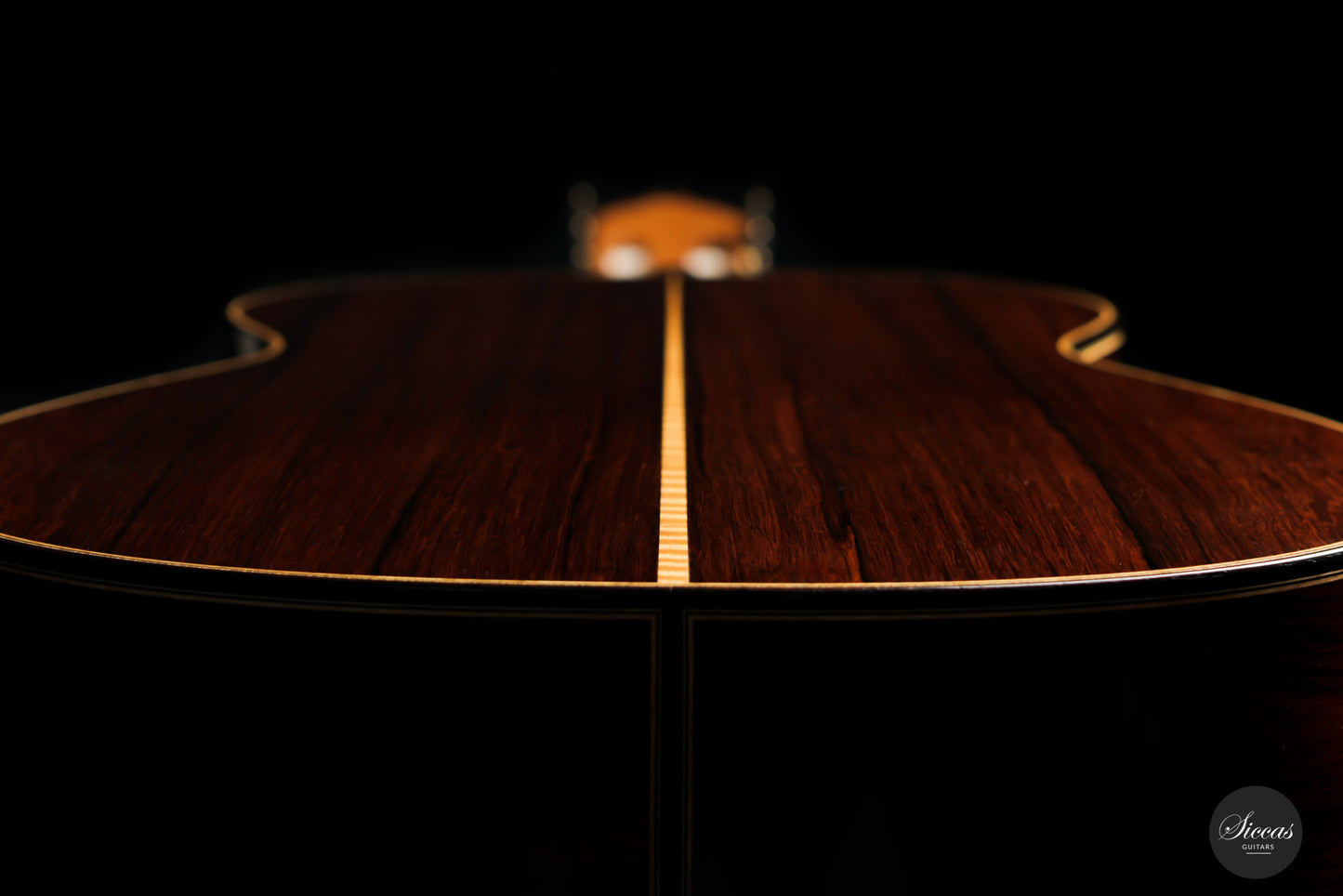 Antonio Marin Montero built this lovely "Special" model with exquisite Amazonas rosewood, which adds an exotic touch to the overall look and makes this guitar visually stand out from other Marin Monteros that are often built with Indian rosewood.
