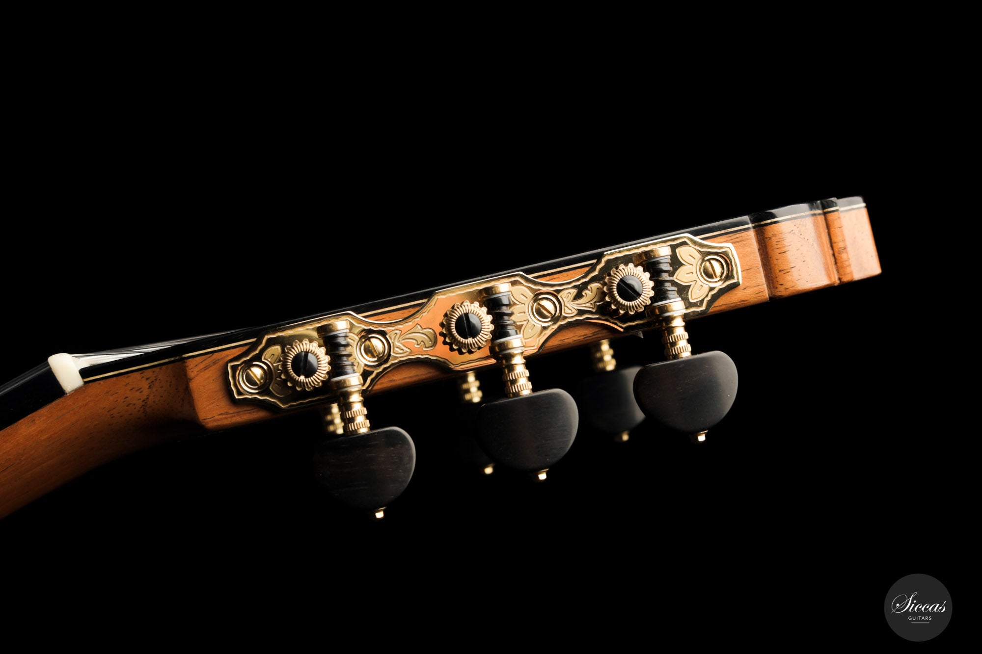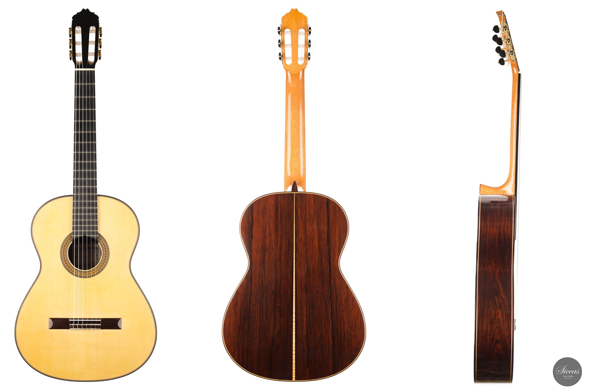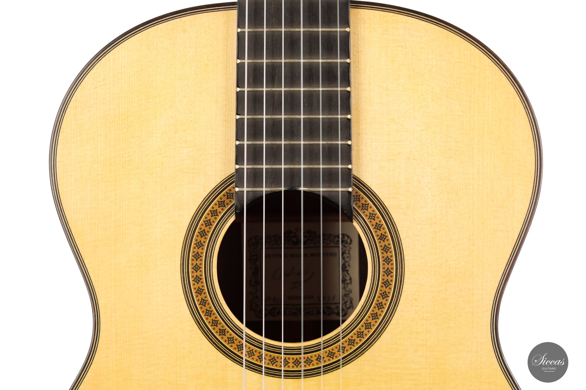 Antonio Marín Montero was born in Granada in 1933. In 1957, he joined master Pérez’s workshop and two years later, in 1959, his father advised him to visit Eduardo Ferrer for whom he worked until opening his own workshop. A milestone in Antonio Marin Montero’s career was his meeting with the French luthier Robert Bouchet in the 1970s. The two artists became friends and built several guitars together. The confrontation between Marin Montero’s Spanish building system and Robert Bouchet’s very particular bracing construction was a great source of inspiration for Antonio Marin Montero, and he continued to build a model with the ” Robert Bouchet ” bracing throughout his career. Today Antonio Marin Montero is one of the most sought-after Spanish guitar makers.