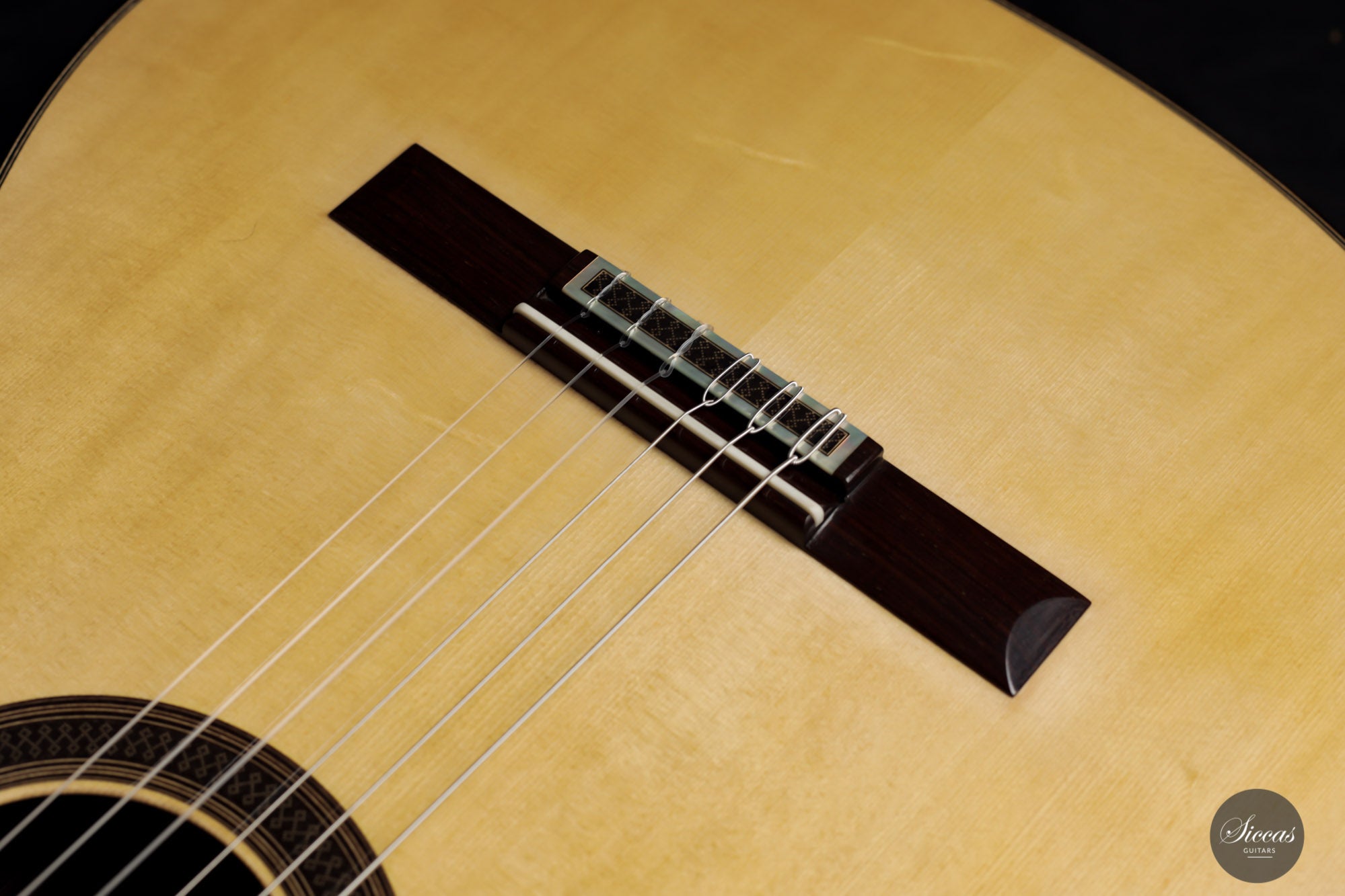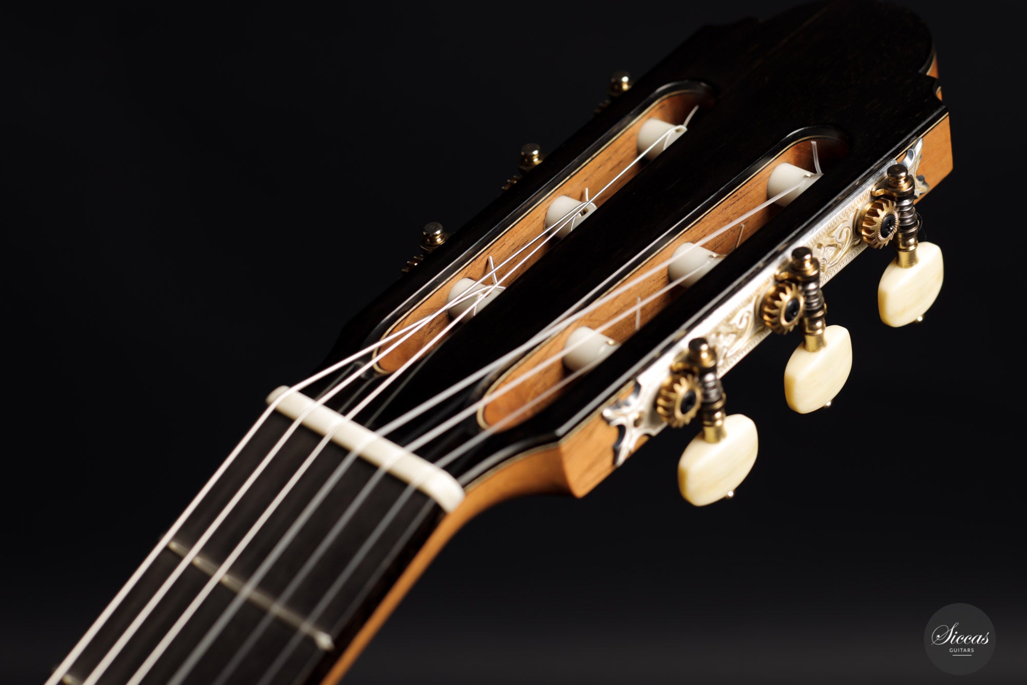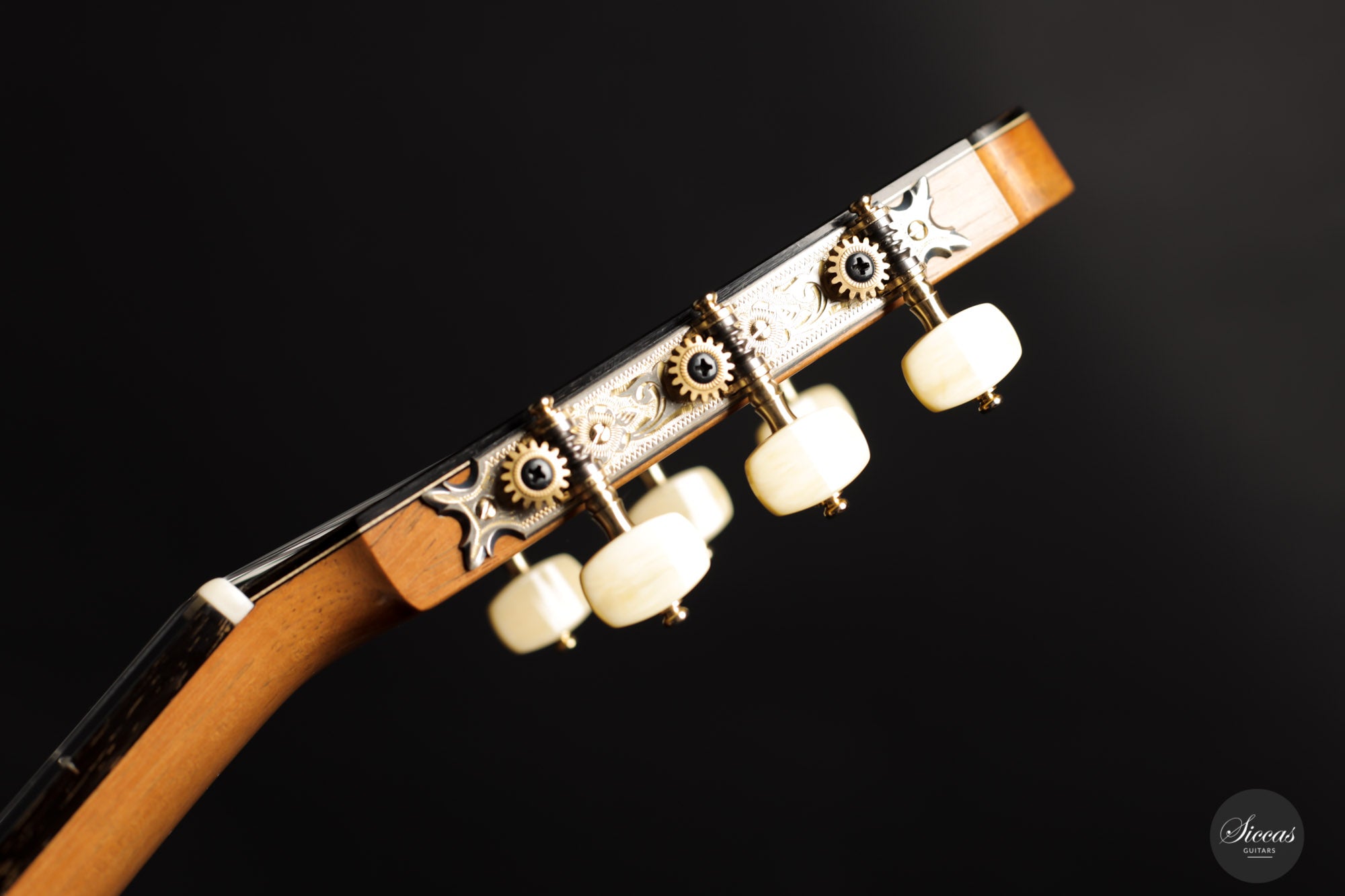 Antonio Marín Montero was born in Granada in 1933. In 1957, he joined master Pérez’s workshop and two years later, in 1959, his father advised him to visit Eduardo Ferrer for whom he worked until opening his own workshop. A milestone in Antonio Marin Montero’s career was his meeting with the French luthier Robert Bouchet in the 1970s. The two artists became friends and built several guitars together. The confrontation between Marin Montero’s Spanish building system and Robert Bouchet’s very particular bracing construction was a great source of inspiration for Antonio Marin Montero, and he continued to build a model with the ” Robert Bouchet ” bracing throughout his career. Today Antonio Marin Montero is one of the most sought-after Spanish guitar makers.