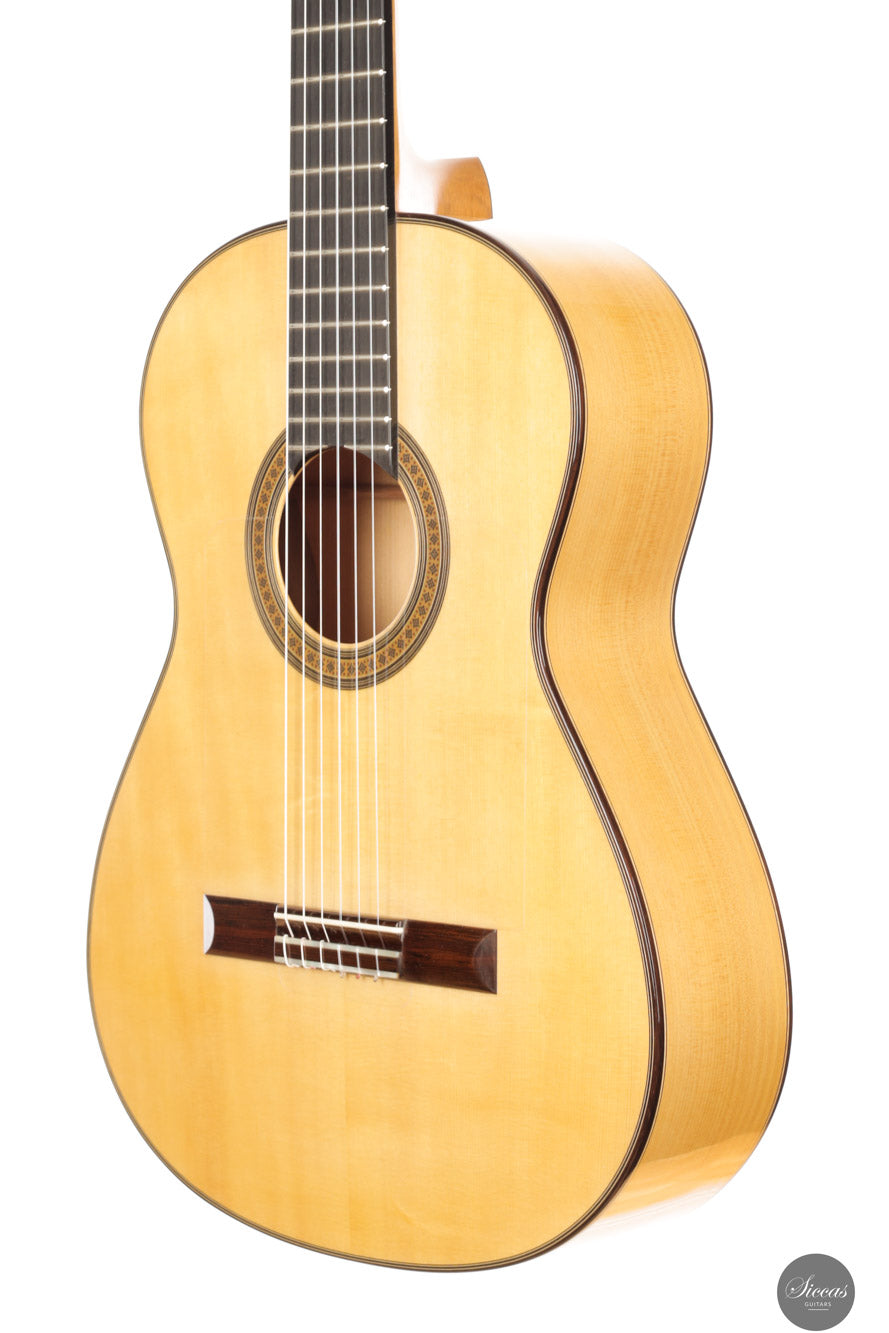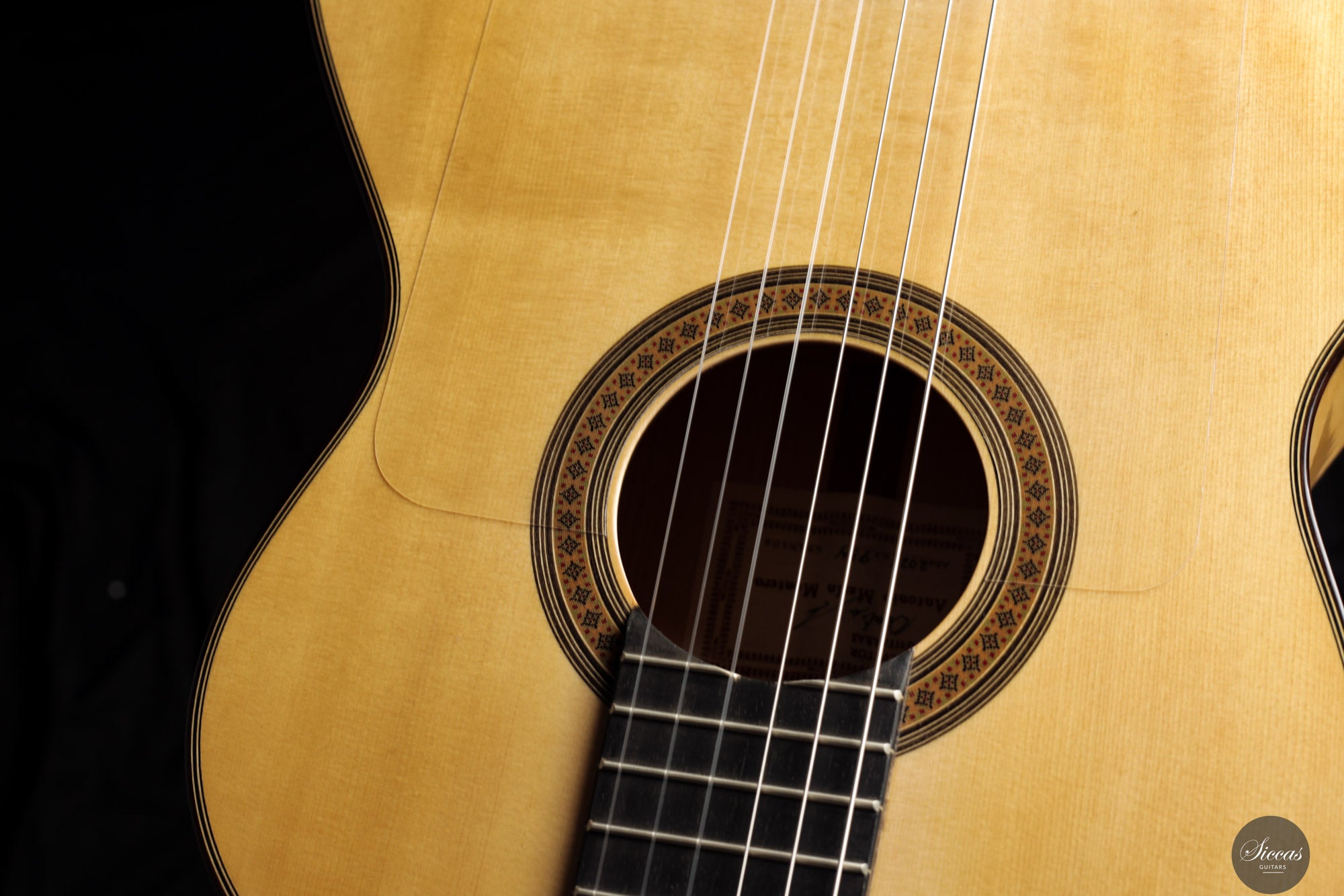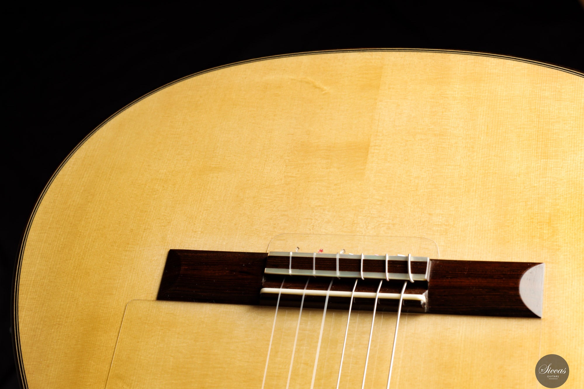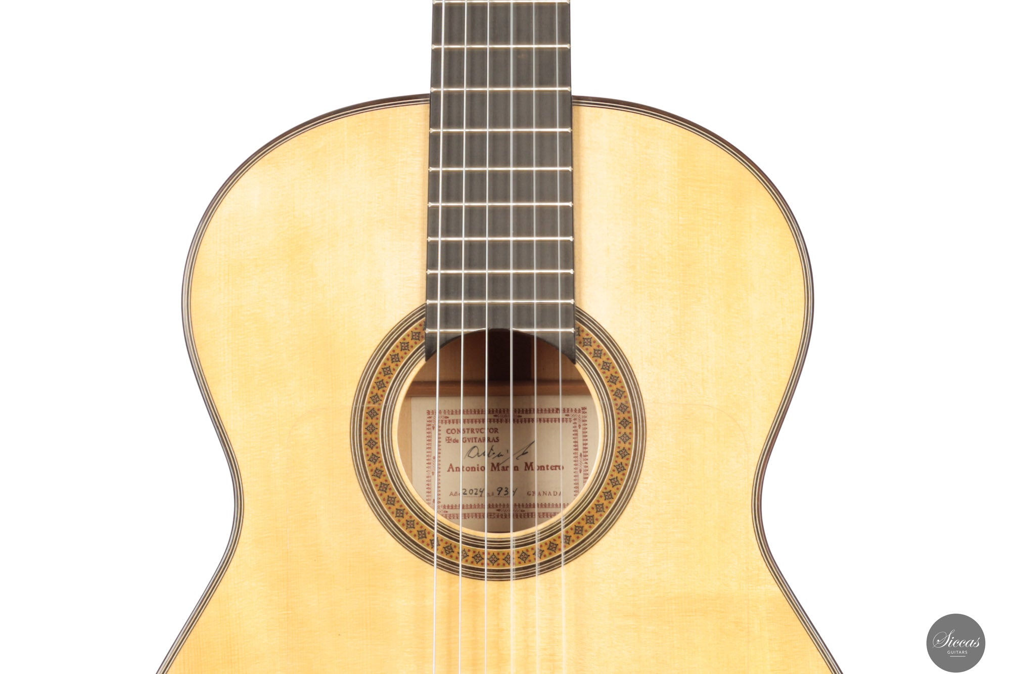 Antonio Marín Montero (geb. 1933 in Granada) gilt als einer der einflussreichsten spanischen Gitarrenbauer des 20. und 21. Jahrhunderts. Er ist eng mit der Granadiner Schule verbunden und wird zugleich für seine Zusammenarbeit mit dem französischen Gitarrenbauer Robert Bouchet erinnert, dessen Ideen er studierte und weiterentwickelte. Im Laufe seiner Karriere schuf Marín Instrumente, die spanische und französische Traditionen miteinander verbanden und für ihre Klarheit, Projektion und klangliche Raffinesse bekannt wurden. Sein Werk setzte Maßstäbe für Konzert- und Flamencogitarren und inspirierte Generationen von Gitarrenbauern. Als einer der letzten lebenden Meister der goldenen Ära des Granadiner Gitarrenbaus gelten seine Instrumente heute als moderne Referenzen von höchster Handwerkskunst und Musikalität.Über die Gitarre: