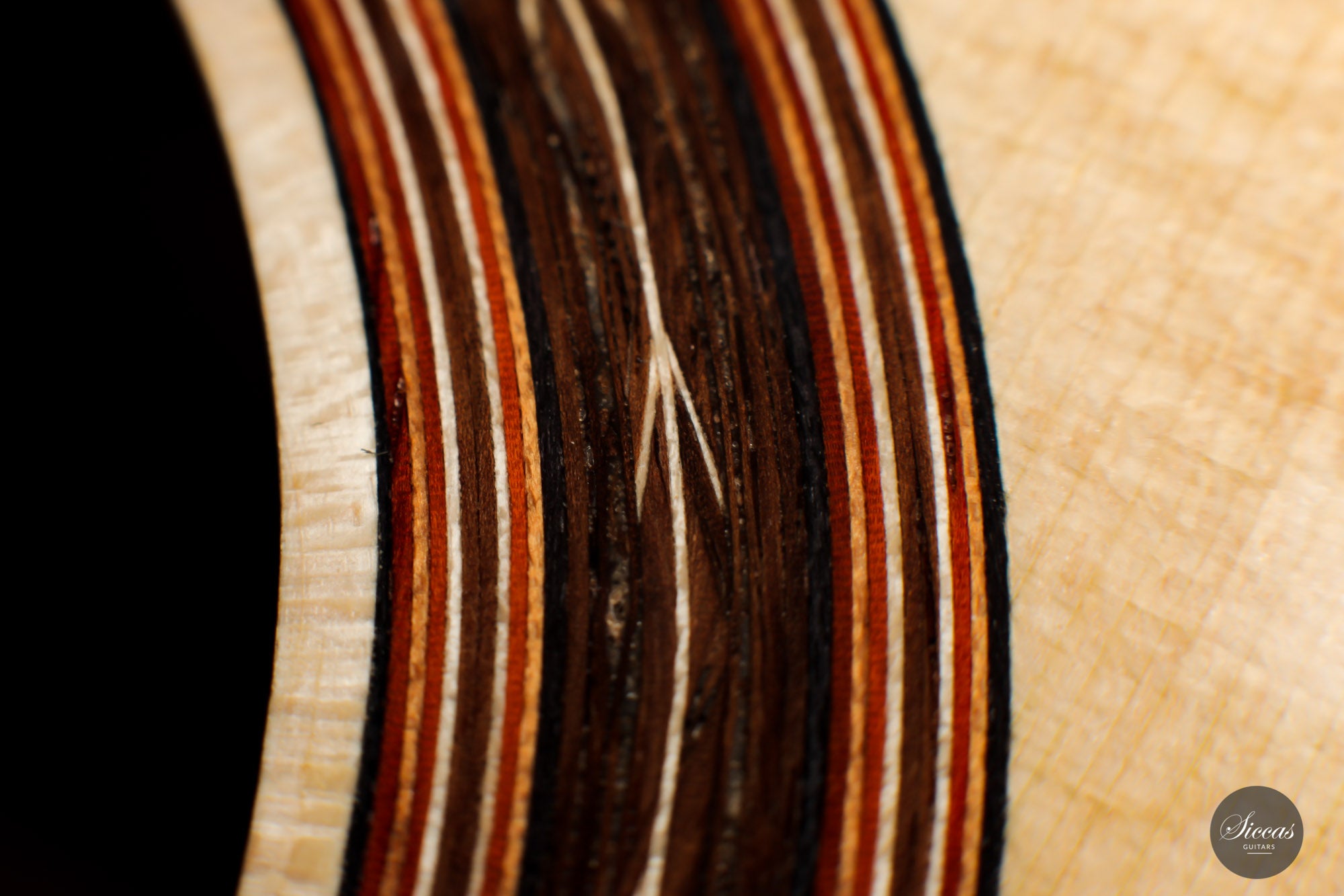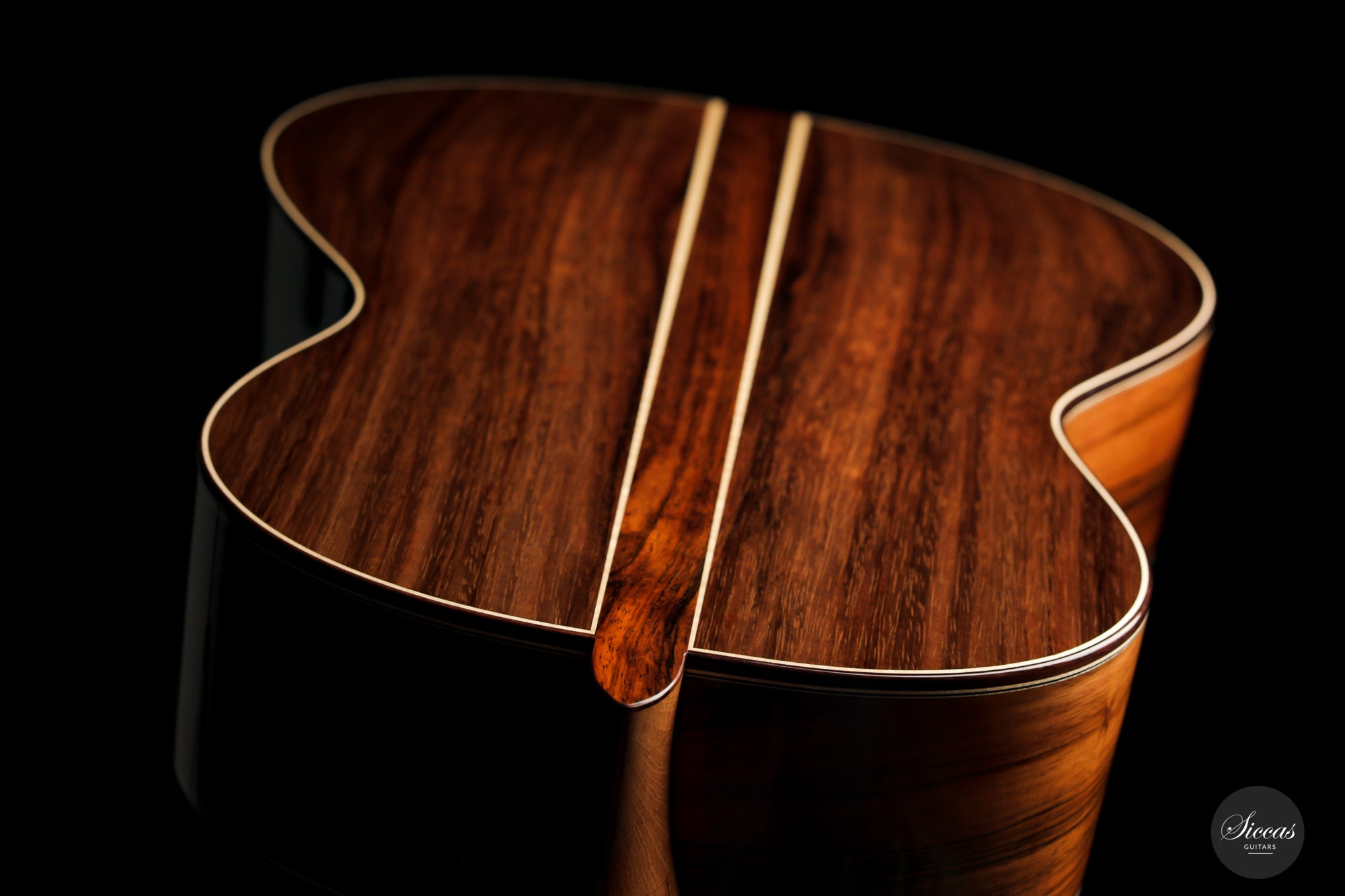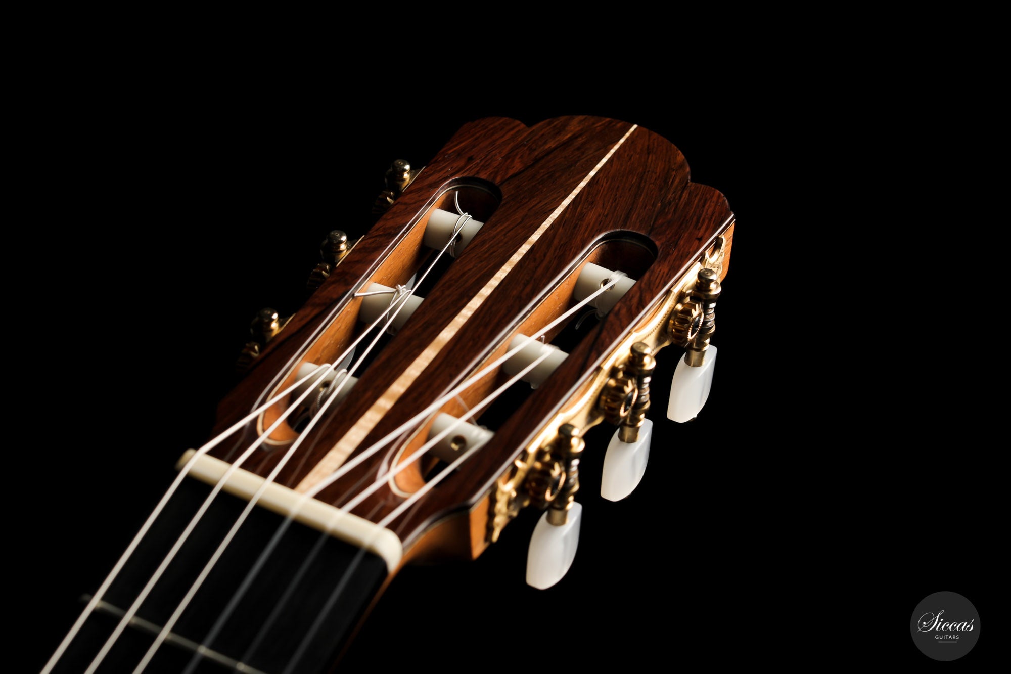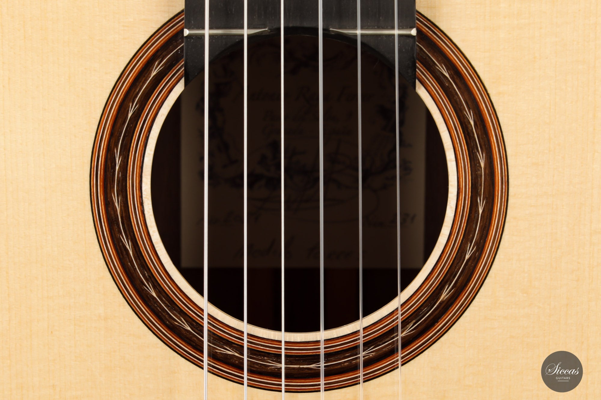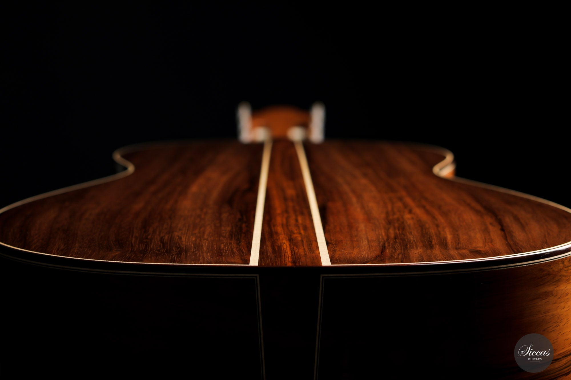 This beautiful Torres model has a slightly smaller body and is made with a gorgeous set of Pau Ferro for back and sides. This wood shows stunning orange colors with wonderful green and dark veins. The sound of this guitar is very appealing with rich timbres and clarity in the treble. A wonderful guitar that is suitable not only for a wide repertoire but also especially for guitarists who prefer an instrument with a slightly smaller body and expressive character.