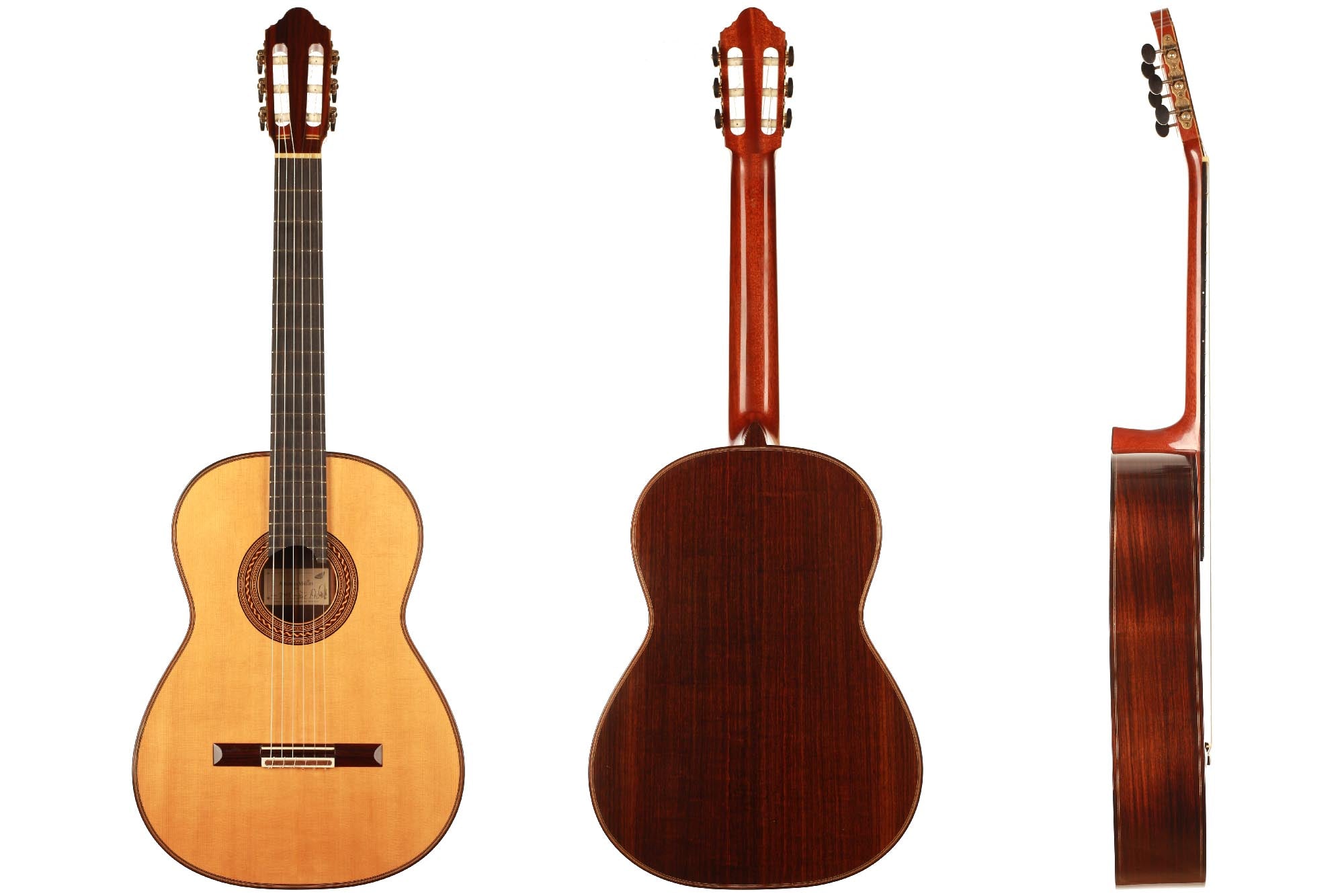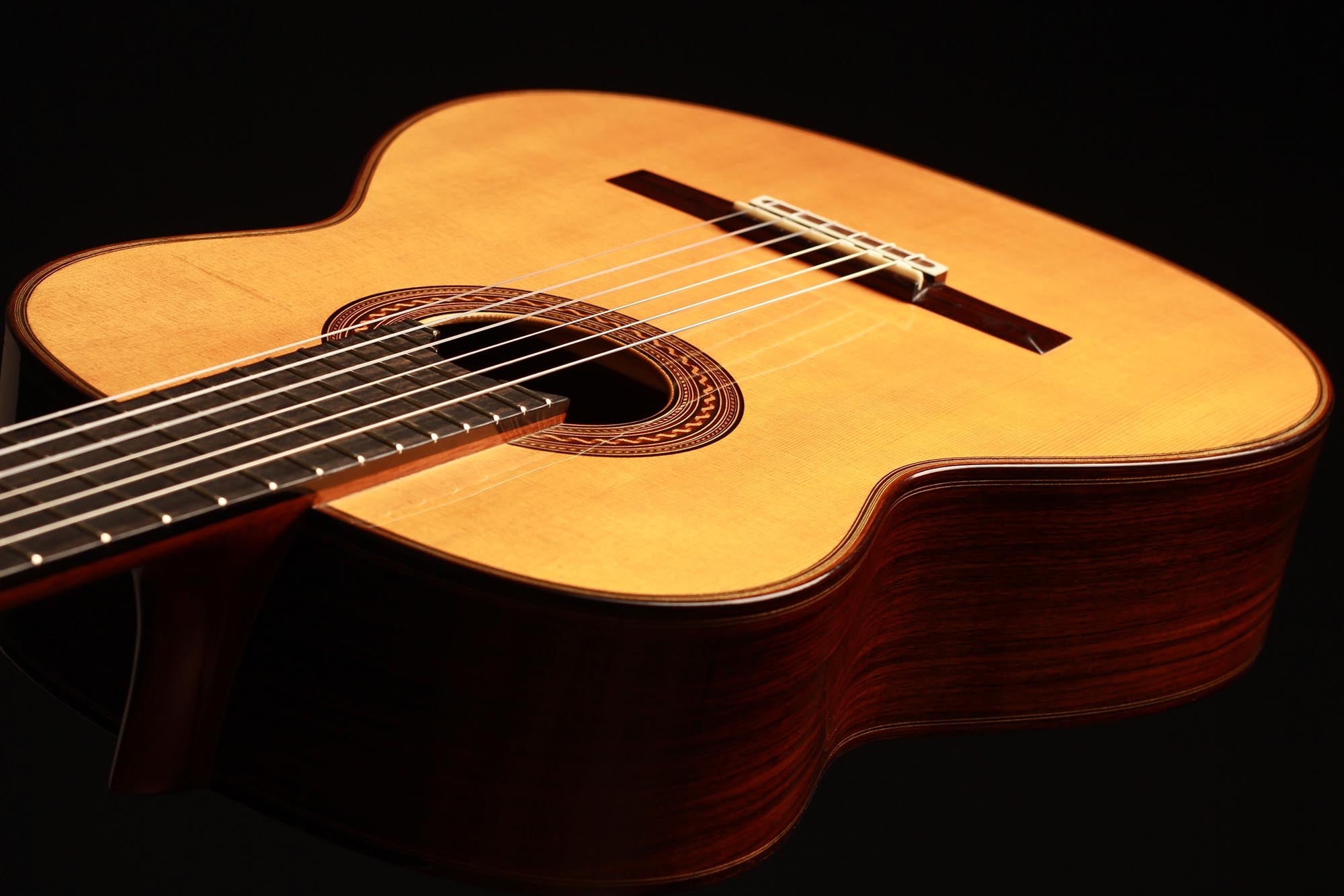 Die klassische Gitarre mit ihren weichen Nylonsaiten und ihrem charakteristischen Timbre ist zum Symbol der Kammermusik, der spanischen Tradition und des Konzertrepertoires geworden. Ihre moderne Form prägte Antonio de Torres im 19. Jahrhundert, indem er den Standard für Korpus, Fächerbeleistung und die 65-Zentimeter-Mensur setzte, die bis heute verwendet werden. Instrumente dieser Kategorie eröffnen eine reiche Palette von den feinen romantischen Miniaturen Tárregas bis zu den majestätischen Konzerten Rodrigos. Hier finden Sie Gitarren, die historische Kontinuität bewahren und zugleich zu neuen Interpretationen anregen.