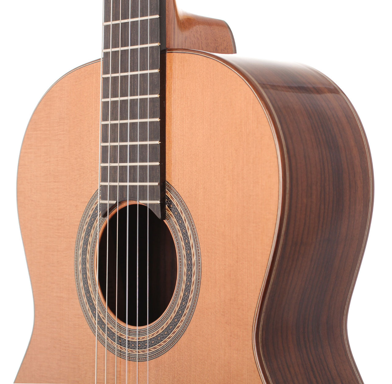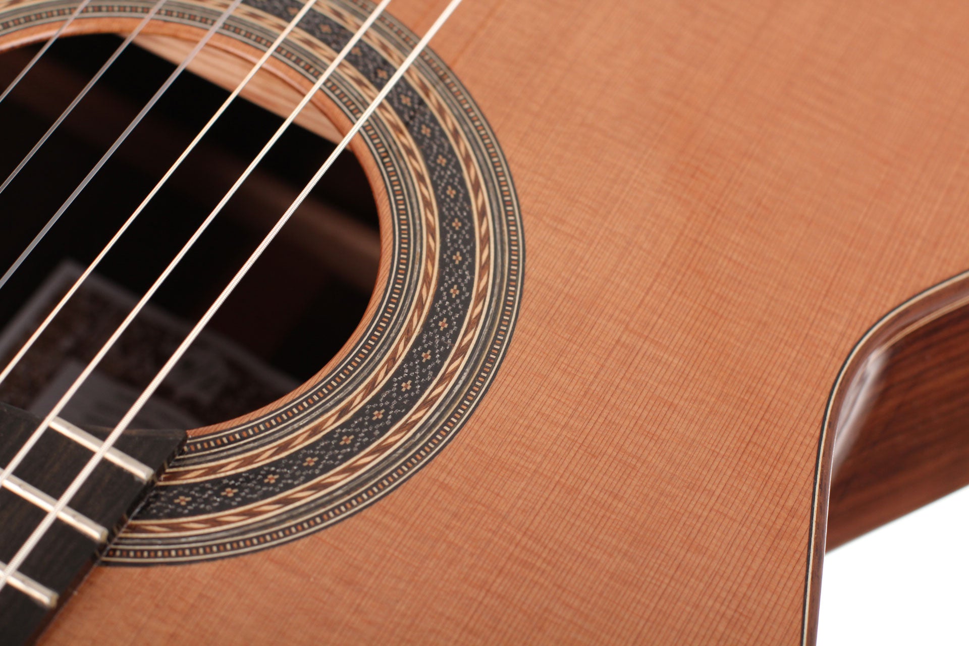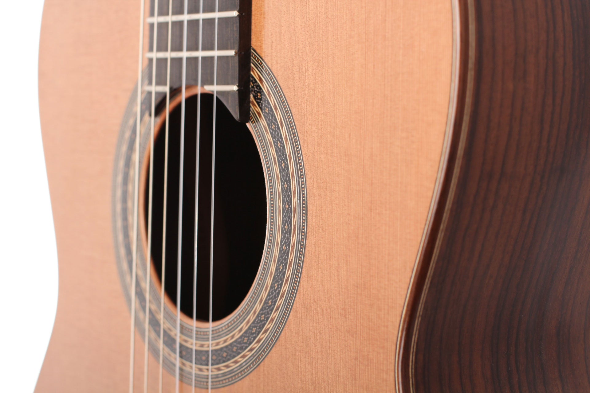 Die klassische Gitarre mit ihren weichen Nylonsaiten und ihrem charakteristischen Timbre ist zum Symbol der Kammermusik, der spanischen Tradition und des Konzertrepertoires geworden. Ihre moderne Form prägte Antonio de Torres im 19. Jahrhundert, indem er den Standard für Korpus, Fächerbeleistung und die 65-Zentimeter-Mensur setzte, die bis heute verwendet werden. Instrumente dieser Kategorie eröffnen eine reiche Palette von den feinen romantischen Miniaturen Tárregas bis zu den majestätischen Konzerten Rodrigos. Hier finden Sie Gitarren, die historische Kontinuität bewahren und zugleich zu neuen Interpretationen anregen.Alle Produkte der Kollektion ansehen -