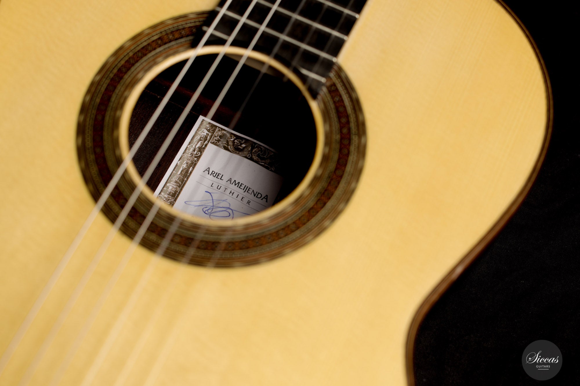 Ariel Ameijenda wurde 1963 in Montevideo (Uruguay) als Sohn von Manuel Ameijenda, einer der bekanntesten Gitarrenbauers des Landes, geboren. Sein Vater Manuel war Schüler von Juan Carlos Santurion, und dieser wiederum Schüler von Ignacio Fleta.